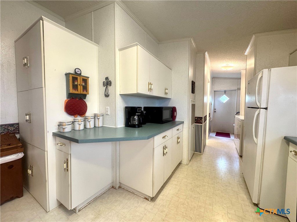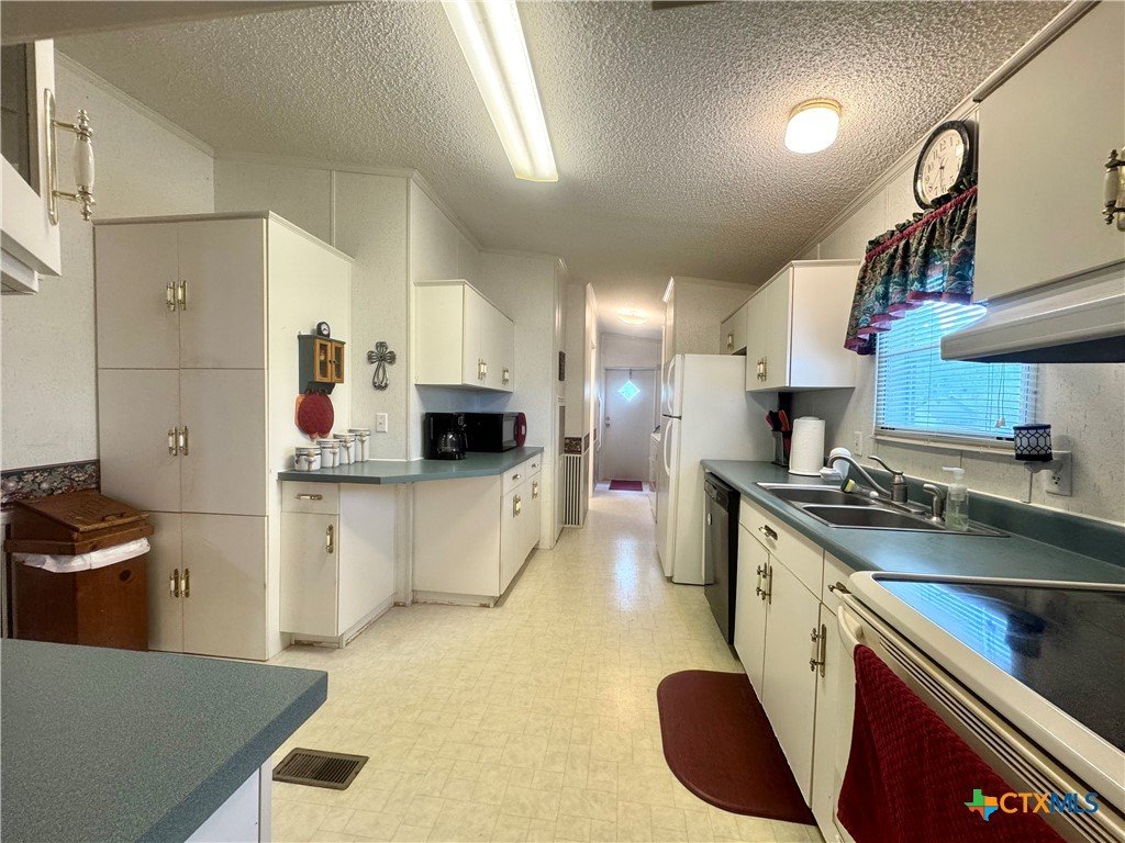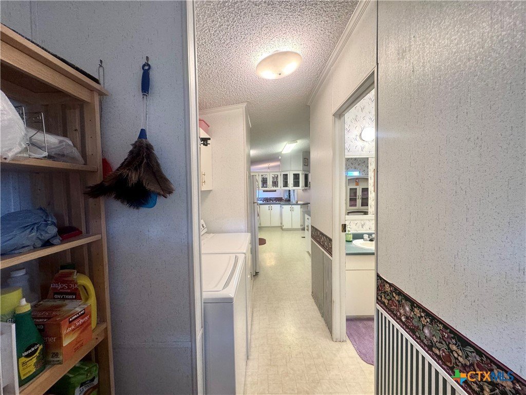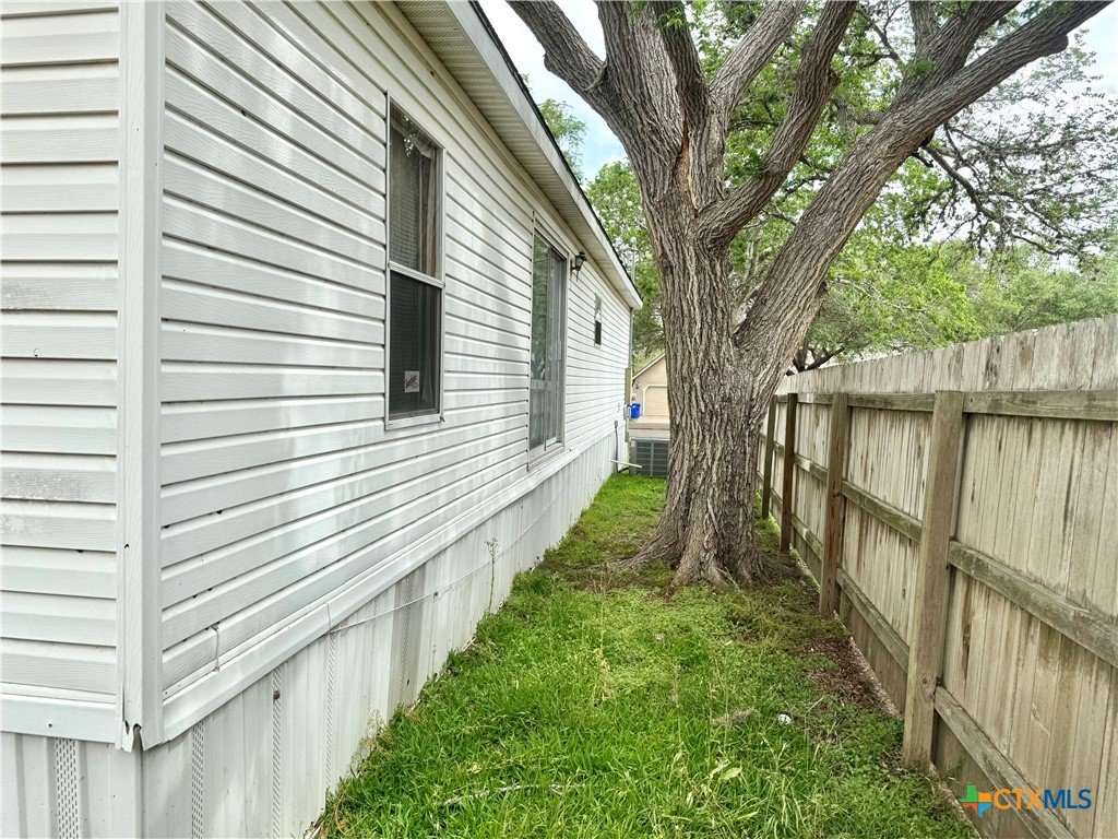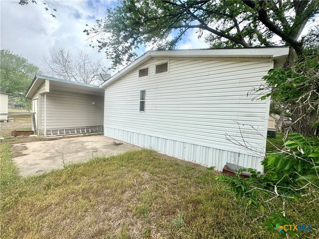 This 1,300 sq ft manufactured home with 3 bedrooms, 2 baths has a large carport, shade trees, and an 8 x 30 storage building and garden shed. The home features a nice kitchen, range stove, vent hood, dishwasher, breakfast bar and dining area, ample cabinets. The split floor plan has the Primary bedroom with separate garden tub and shower, inside laundry. Nice space in the backyard fenced on 2 sides, it is a great place to raise a family. It is near the city park to take the kids to playgrounds, etc. The home has been well maintained.