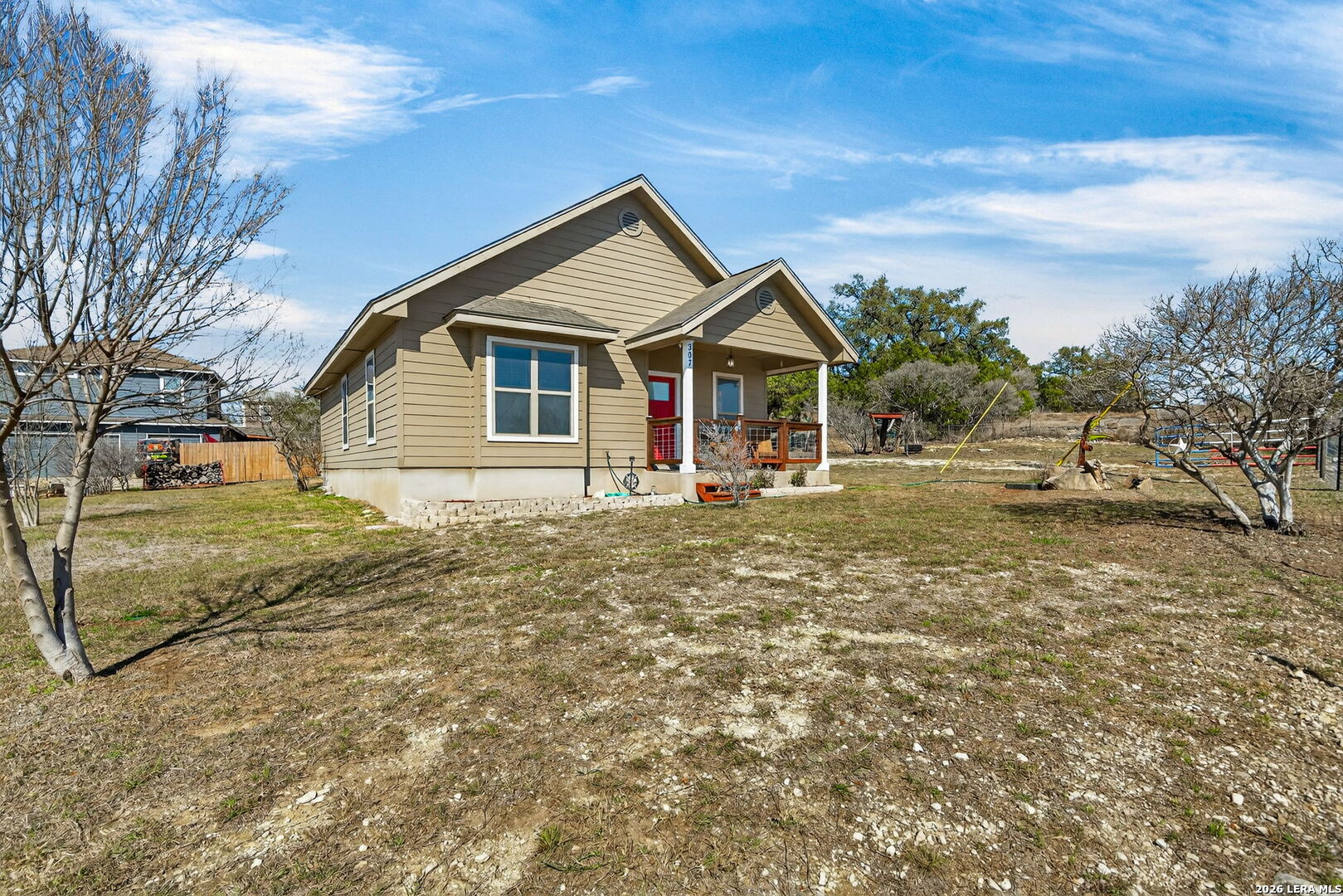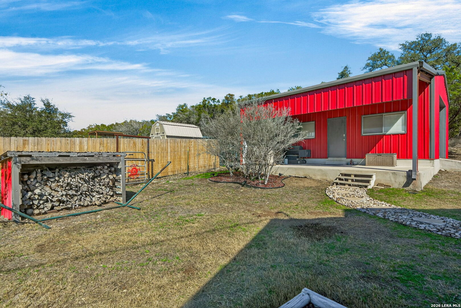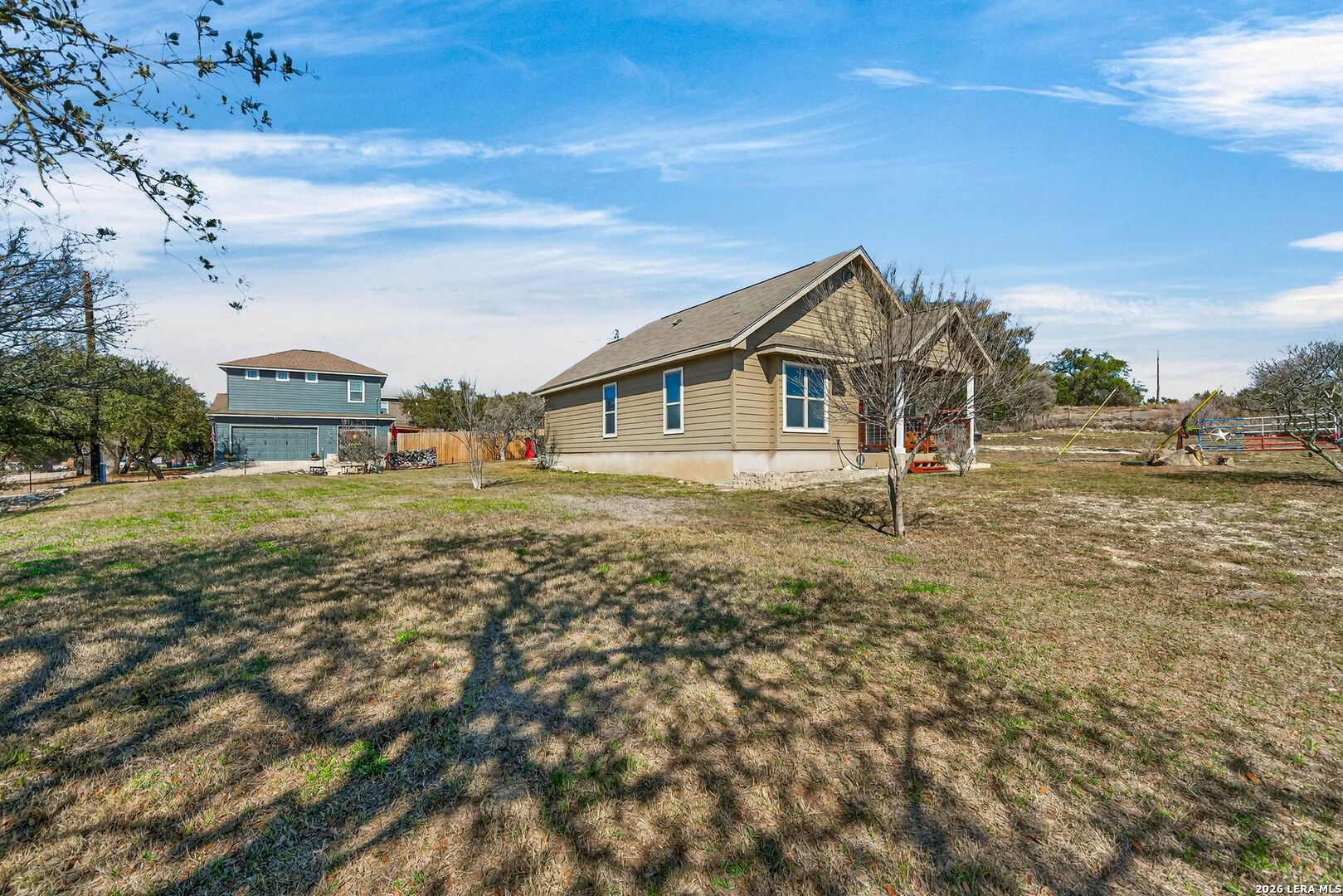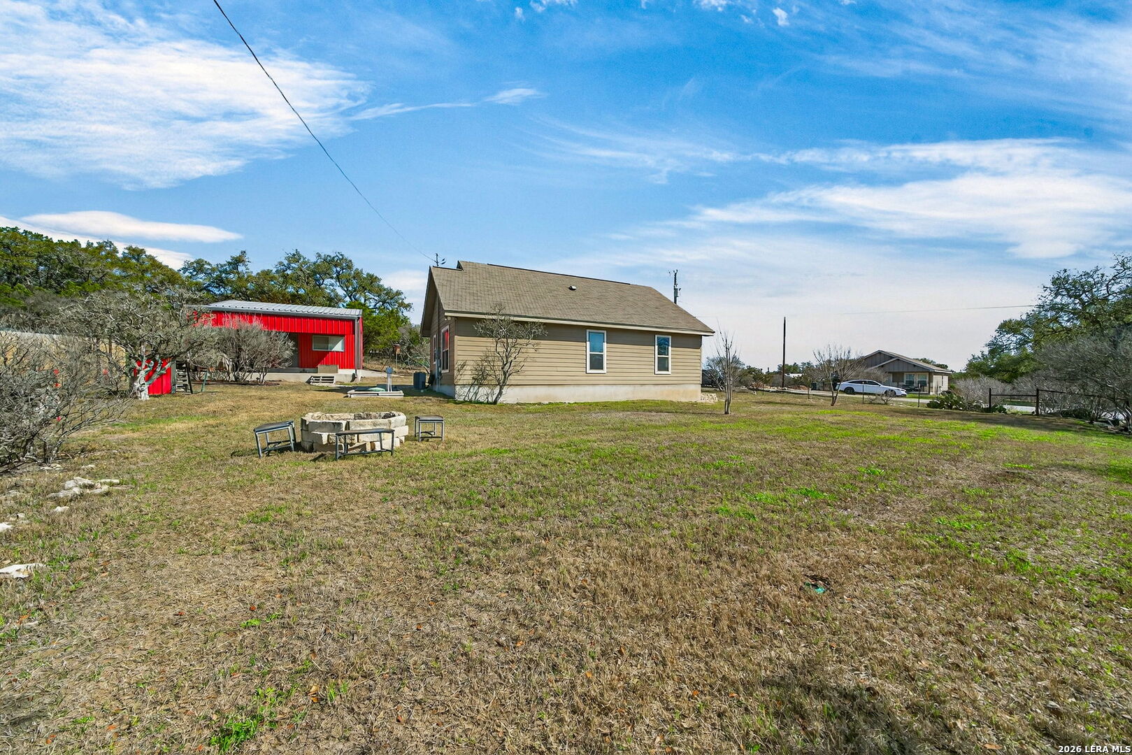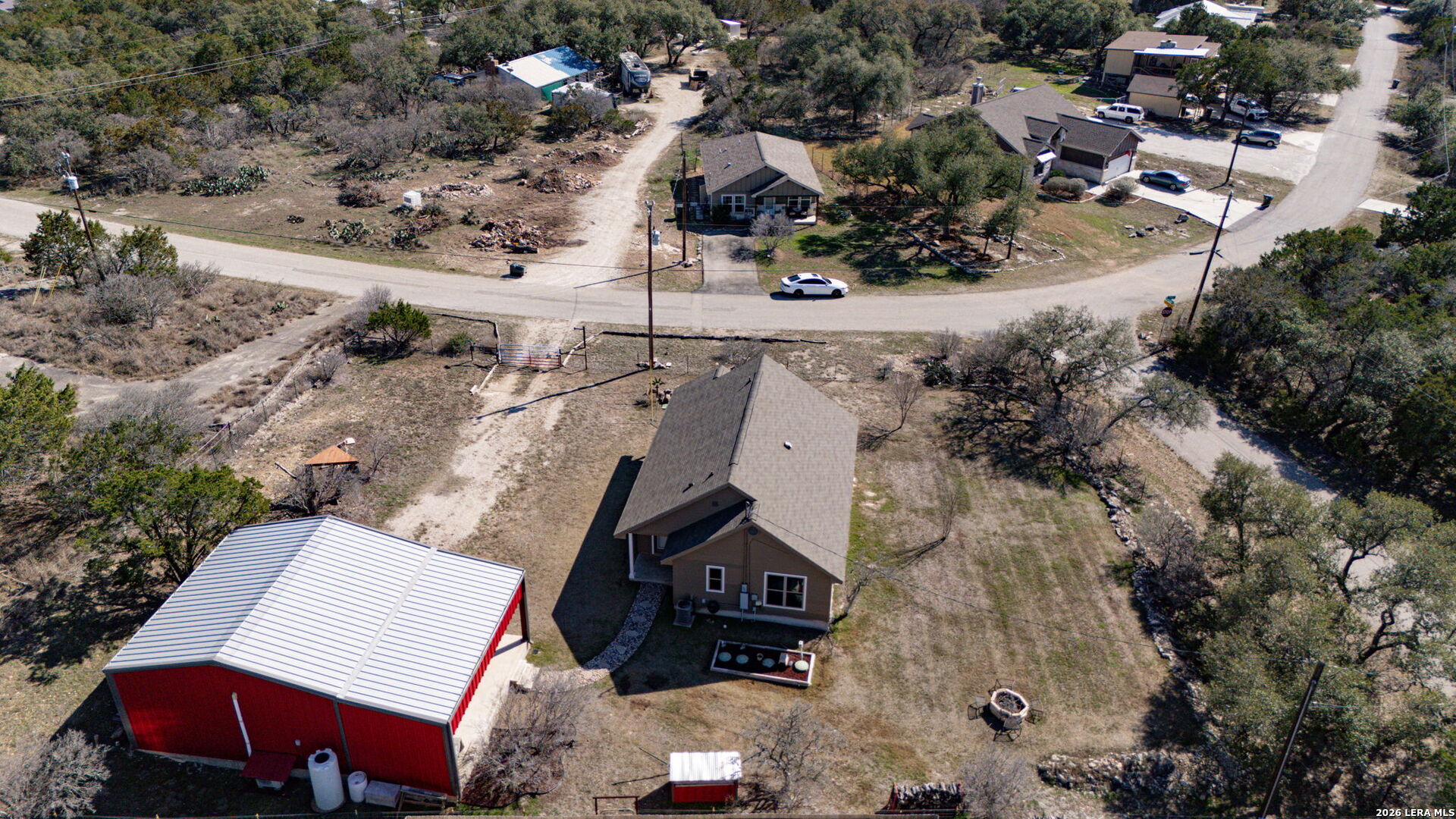 Welcome Home to this one-story gem perched high in the scenic Spring Branch/Canyon Lake community of Cypress Cove. This 3-bedroom, 2 full bath property is situated on an oversized corner "Double Lot" with a detached garage/workshop that provides ample space for 2 plus vehicles, workshop and/or storage space. This efficient home features a multitude of amenities for your full comfort and functionality. You are welcomed in by an automated gate that secures the fully fenced property and leads to the inviting front porch into this charming home setting featuring an Open Living Area. You'll find an easy flow from a combination living/dining area to the kitchen with a large breakfast bar that can seat six. The primary suite is private with double closets and space for large furniture and complete with a well-designed ensuite bathroom with a combination shower/tub. Special features include the detached garage/workshop with a covered patio wired for Audio and Video and that can also double as an addition covered parking area, fully fenced backyard, irrigation system, water containment tank, and native plants/landscape. Bonus features include a Water Softener and April Air Filtration System. Architectural and Design Details include neutral modern color schemes, large double-pane windows, ceramic tile flooring, tasteful lighting fixtures, and high ceilings. Cypress Cove community provides access to a tranquil neighborhood park, picnic and play area, swimming pool, walking and jogging trails, boat ramp #11 access, sports court, and other community amenities. Come see what this exceptional property has to offer in the beautiful Texas Hill Country within minutes from Canyon Lake. Come make this incredible property yours. Make your appointment for a private showing today!