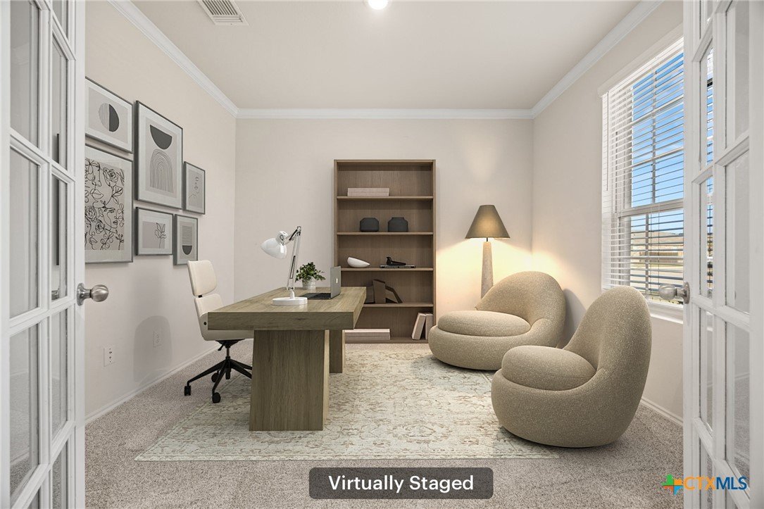 Welcome to this beautifully maintained single-story home built in 2021, ideally located in the heart of the Sonterra community in Jarrell, Texas. Offering 3 bedrooms, 2 full bathrooms, and a dedicated office, this home is perfectly suited as a starter home, downsizing option, or investment property. The open-concept living layout is both functional and inviting, featuring durable tile flooring throughout the main living areas and abundant natural light. The well-appointed kitchen serves as the heart of the home and includes granite countertops, a center island, ample cabinetry, and seamless flow into the dining and living spaces—ideal for everyday living and entertaining. The single-level floorplan provides convenience and accessibility, while the thoughtful design ensures comfort throughout. Enjoy outdoor living with a spacious front yard and a sunny backyard that’s perfect for green thumbs. The raised covered porch overlooks the yard and provides peaceful views of the open field behind the home, offering added privacy with no rear neighbors. A front-facing two-car garage adds both curb appeal and practicality. Residents of Sonterra enjoy access to outstanding amenities, including a clubhouse, pool, playground, and pump track, all just minutes away. With its clean condition, modern finishes, and prime location near community amenities, this newer home is truly a must-see. Don’t miss your opportunity to view this exceptional property—it won’t last long.