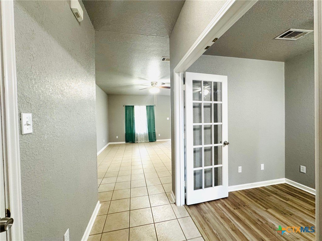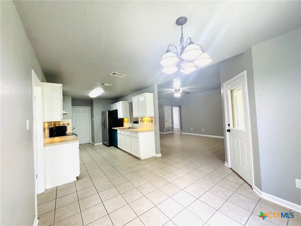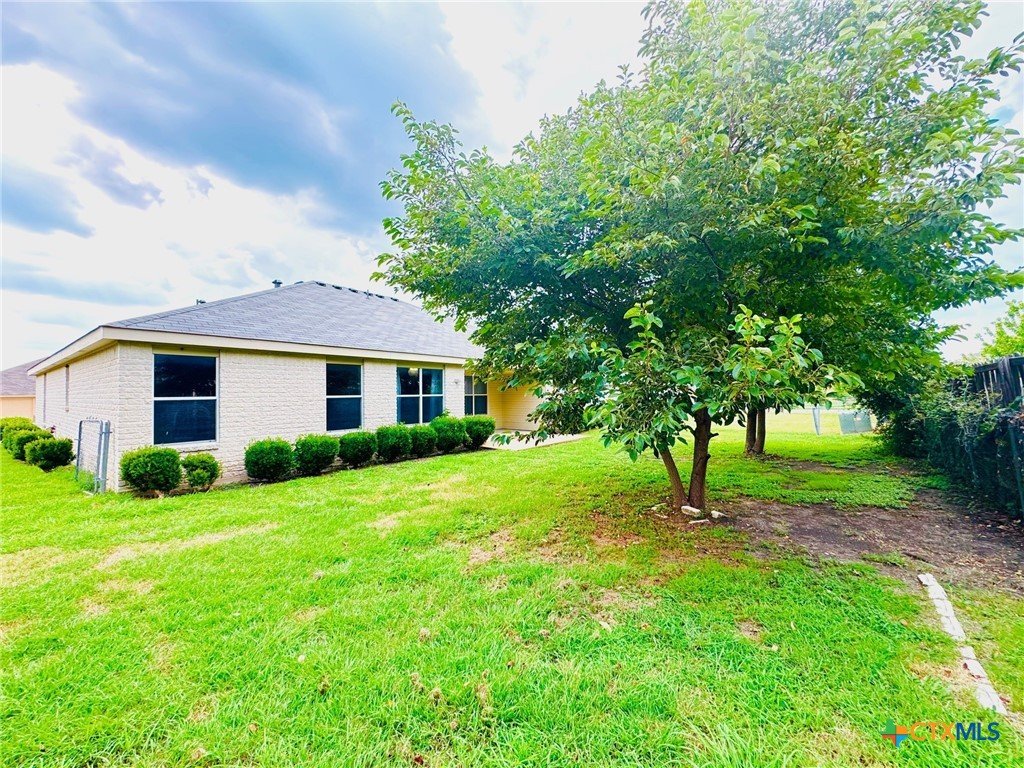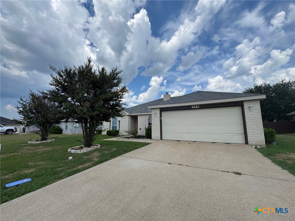 Welcome to this inviting 3 bedroom, 2 bath brick home with a versatile flex room and a split floorplan. The property also includes a two-car garage and convenient access to everything Gatesville has to offer. Step through the front door into a spacious, tiled den featuring a cozy wood-burning fireplace—perfect for cold winter nights. The flex room is ideal for a home office, playroom, or craft space, highlighted by beautiful French doors and a large front window. The kitchen boasts a tiled backsplash, generous cabinet space, pantry, stainless steel appliances, and a double sink for easy cleanup. A charming opening above the sink offers a view into the den, while the breakfast nook overlooks the backyard. The primary suite features crown molding, a tray ceiling, and an en-suite bath with double closets, dual sinks, great storage, and a shower/tub. The additional bedrooms are privately located on the opposite side of the home, offering space and comfort for everyone. Outside, the backyard showcases a beautiful shade trees and a covered porch—the perfect spot to relax after a long day. For those who enjoy staying active, the Gatesville Fitness Center is just steps away, and the neighborhood’s paved roads make walking easy. Nearby conveniences include a bank, car wash, Gatesville ISD schools, shopping, and quick access to Highways 84 and 36, making travel to Waco or Temple a breeze. This home truly has it all—function, charm, and a great location. A must-see!