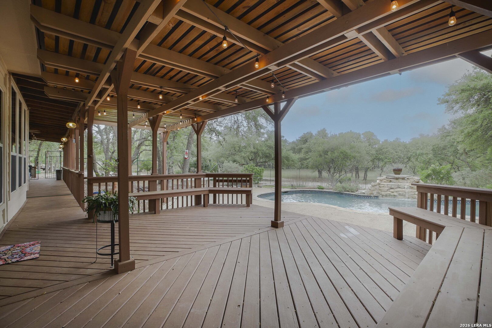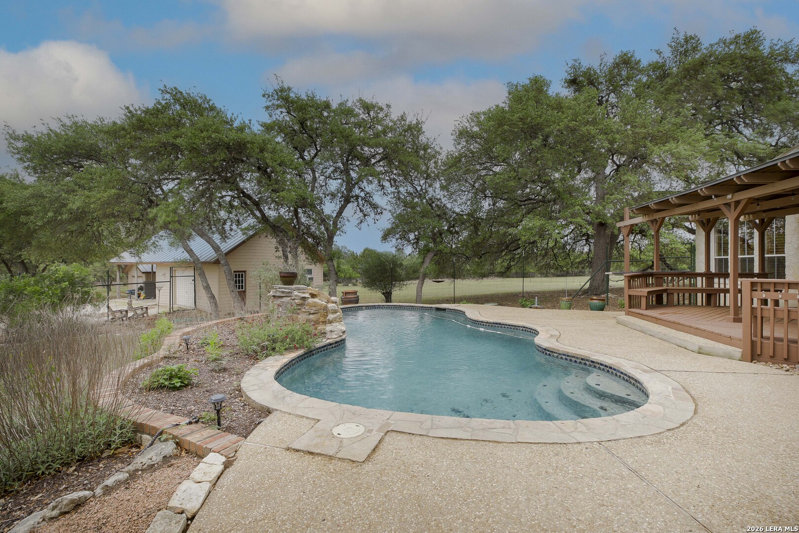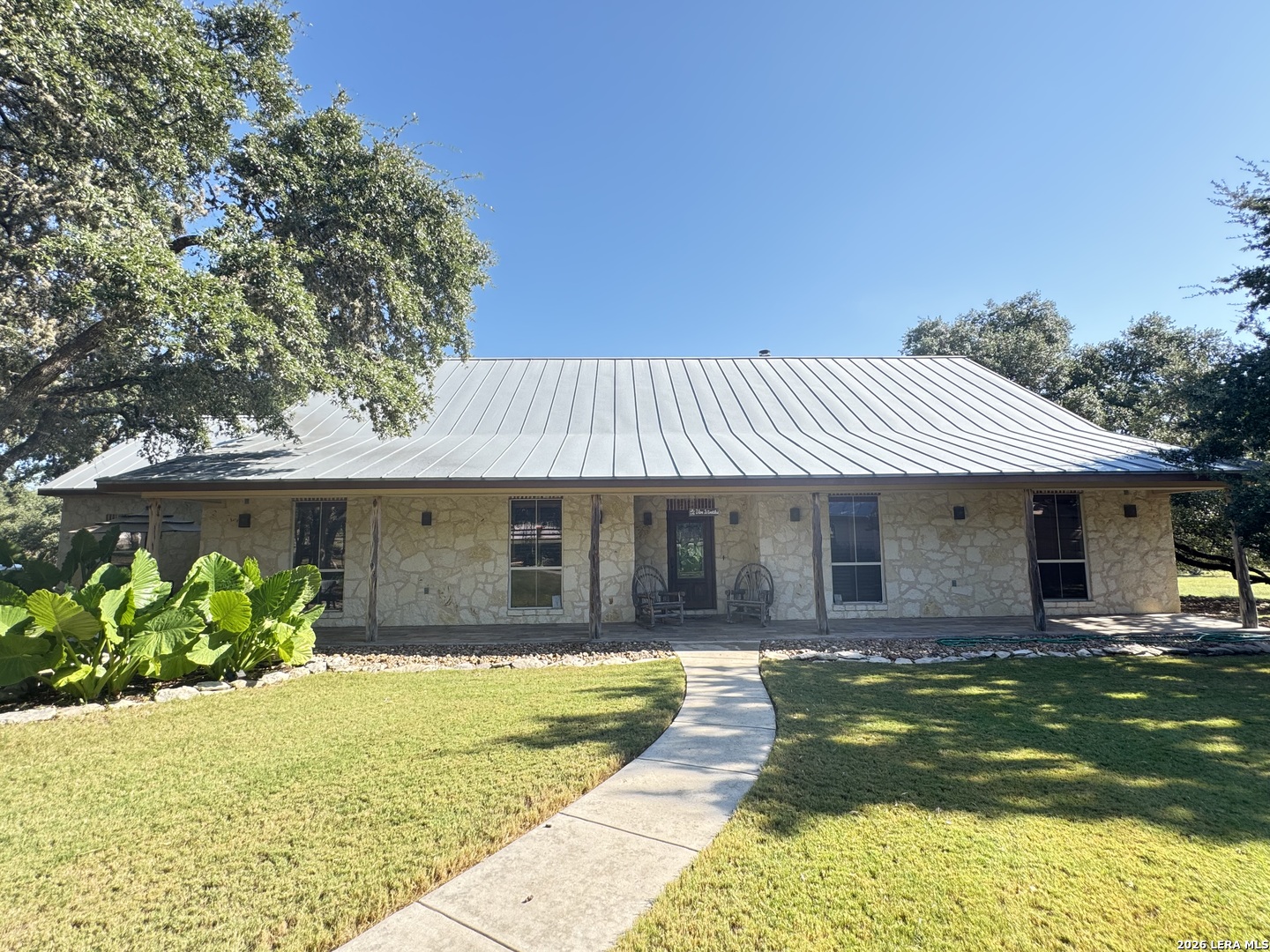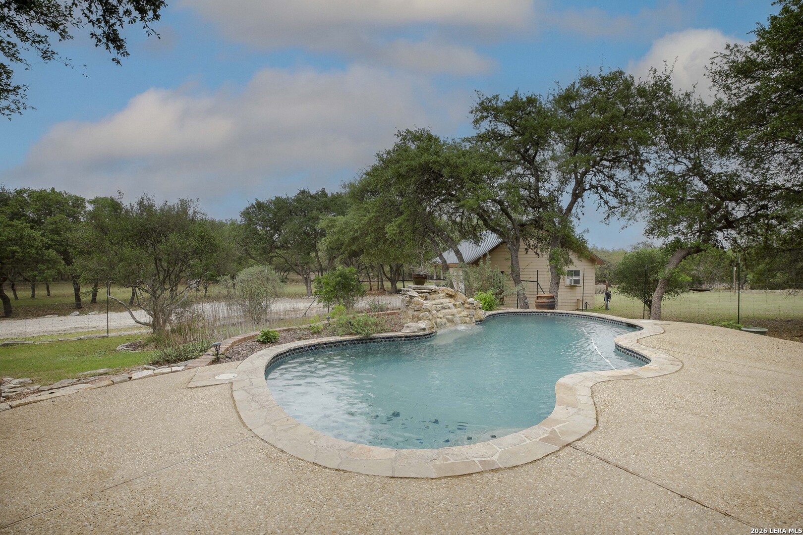 Welcome to your private Texas retreat on over 4 fully fenced acres, where space, versatility, and charm come together seamlessly. This expansive 4-bedroom, 3-bath home offers a flexible layout designed to fit a variety of lifestyles, featuring a dedicated office, loft, flex space, two dining areas, and multiple living spaces-including a cozy main living room with a fireplace. The main floor includes 3 full bedrooms and 2 bathrooms, providing convenience and functionality for everyday living. An inviting, full-length front porch sets the tone; inside, you'll find thoughtful details like custom door handles in the office and generous natural light throughout. The kitchen and living areas flow effortlessly, creating an ideal environment for both everyday living and entertaining. Step outside to your own fully fenced backyard oasis-complete with a beautifully landscaped, fenced pool area featuring an in-ground pool with a striking rock waterfall, surrounding flatwork, and multiple access points. The covered back deck and enclosed patio provide the perfect spaces to relax or host gatherings year-round under the shade of mature oak trees. Car enthusiasts, hobbyists, or those needing extra storage will appreciate the abundance of parking and workspace options: a 2-car attached garage, additional detached garage buildings that can serve as parking, workshops or storage, a two-car carport, and multiple outdoor parking pads. Constructed with durable stone and siding and topped with a metal roof, this property blends quality craftsmanship with the tranquility of wide-open space-all while offering the functionality today's buyers are looking for.