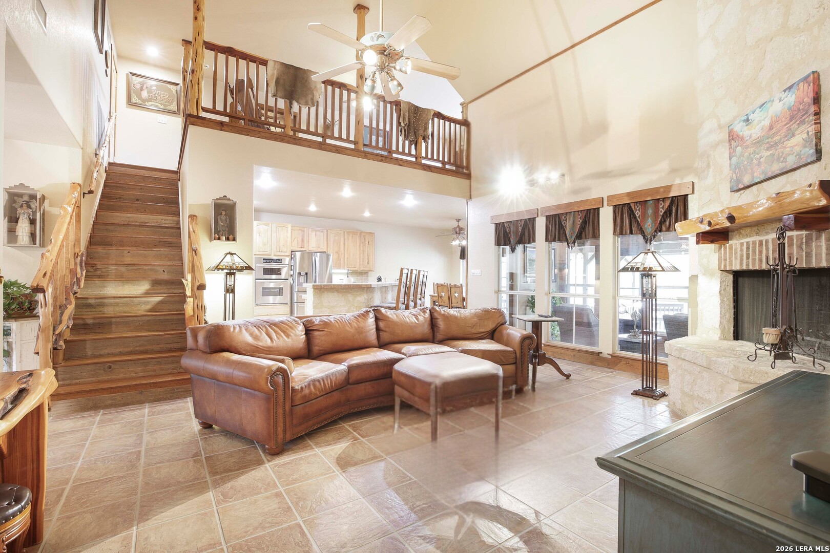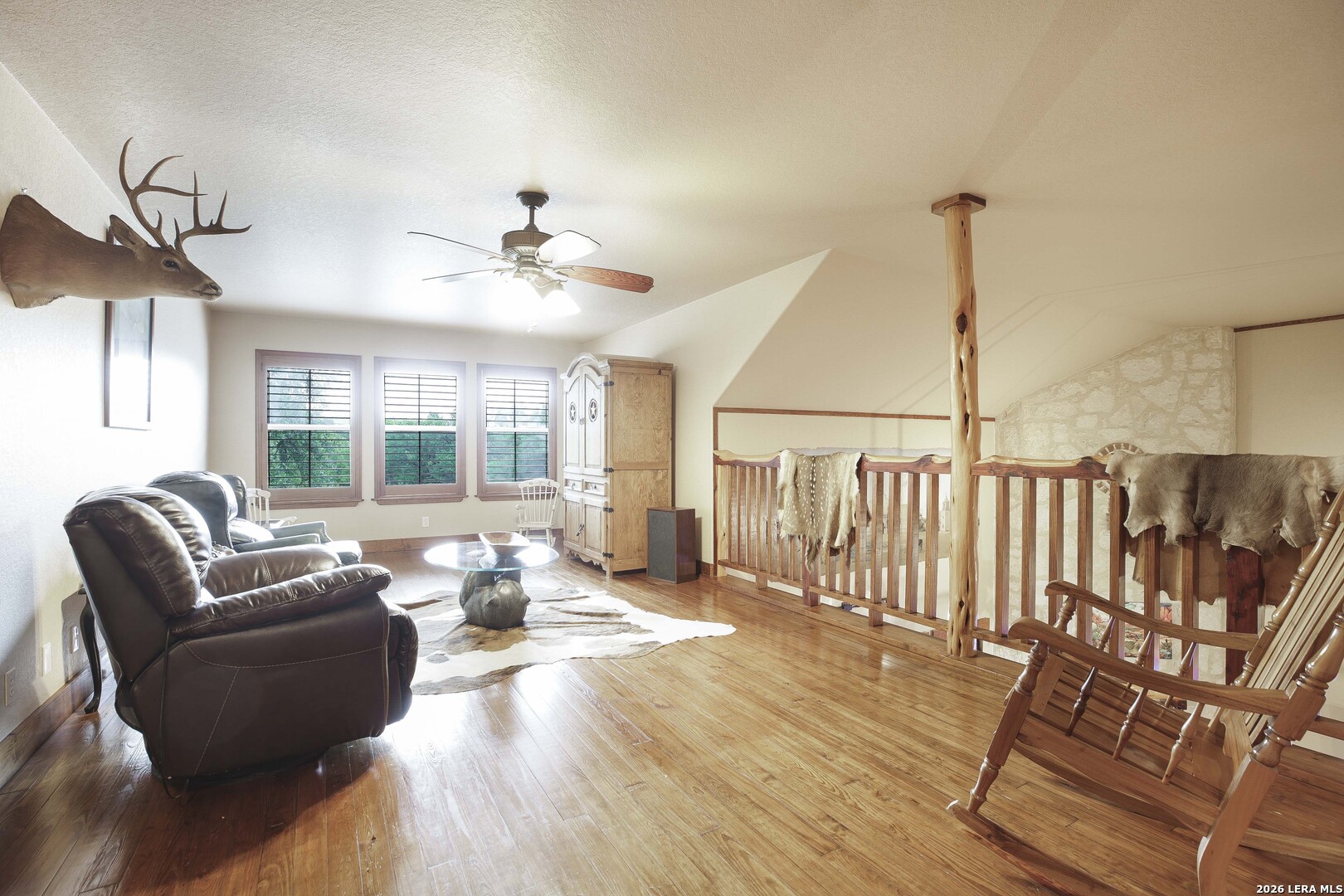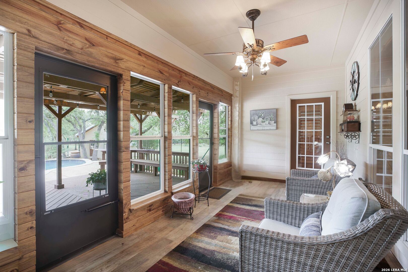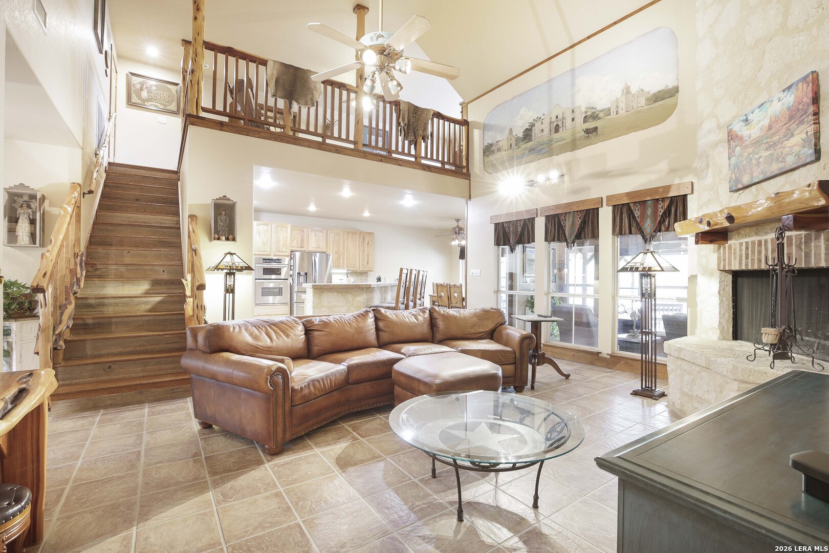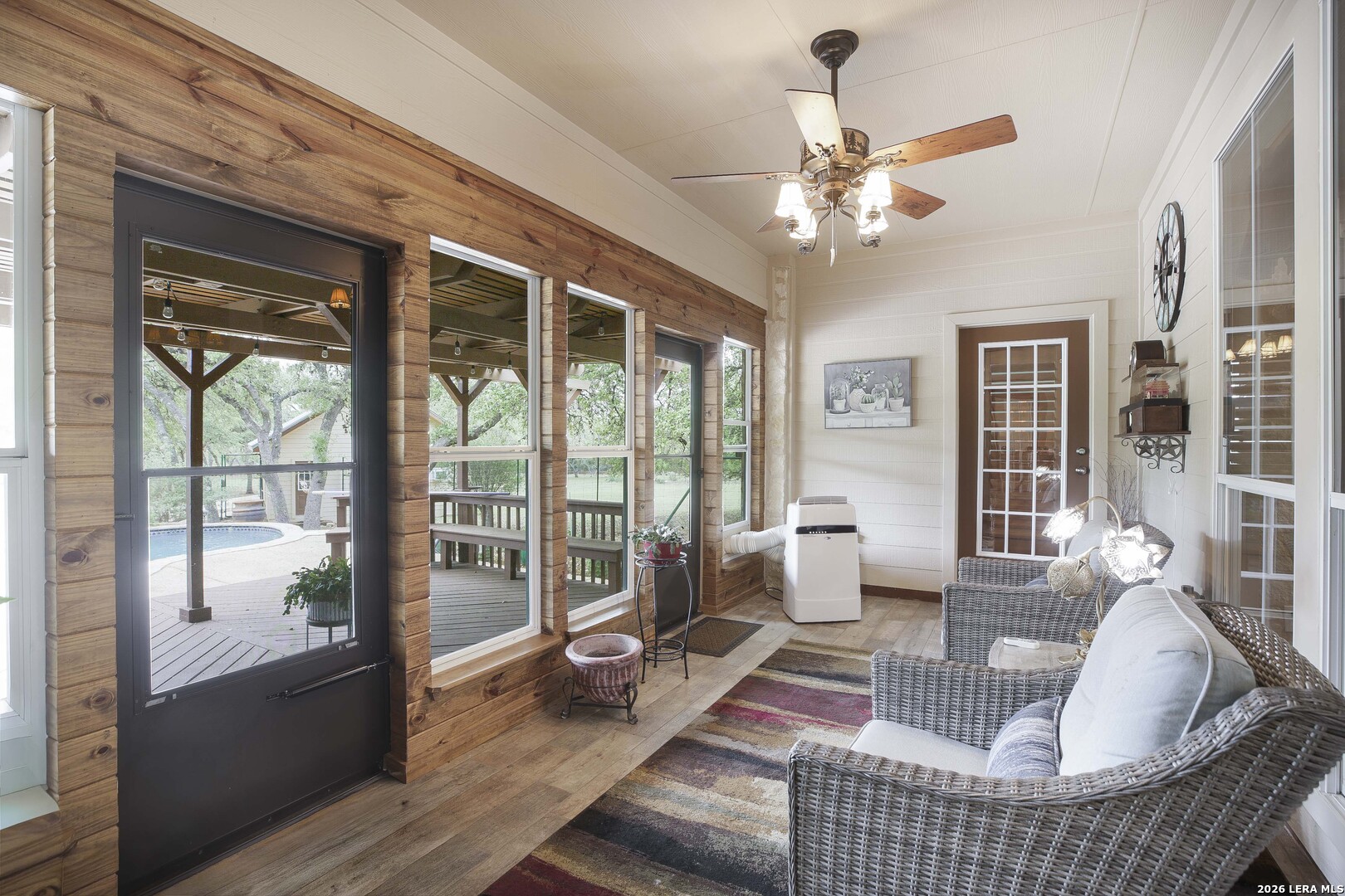 Welcome to your private Texas retreat on over 4 fully fenced acres, where space, versatility, and charm come together seamlessly. This expansive 4-bedroom, 3-bath home offers a flexible layout designed to fit a variety of lifestyles, featuring a dedicated office, loft, flex space, two dining areas, and multiple living spaces-including a cozy main living room with a fireplace. The main floor includes 3 full bedrooms and 2 bathrooms, providing convenience and functionality for everyday living. An inviting, full-length front porch sets the tone; inside, you'll find thoughtful details like custom door handles in the office and generous natural light throughout. The kitchen and living areas flow effortlessly, creating an ideal environment for both everyday living and entertaining. Step outside to your own fully fenced backyard oasis-complete with a beautifully landscaped, fenced pool area featuring an in-ground pool with a striking rock waterfall, surrounding flatwork, and multiple access points. The covered back deck and enclosed patio provide the perfect spaces to relax or host gatherings year-round under the shade of mature oak trees. Car enthusiasts, hobbyists, or those needing extra storage will appreciate the abundance of parking and workspace options: a 2-car attached garage, additional detached garage buildings that can serve as parking, workshops or storage, a two-car carport, and multiple outdoor parking pads. Constructed with durable stone and siding and topped with a metal roof, this property blends quality craftsmanship with the tranquility of wide-open space-all while offering the functionality today's buyers are looking for.