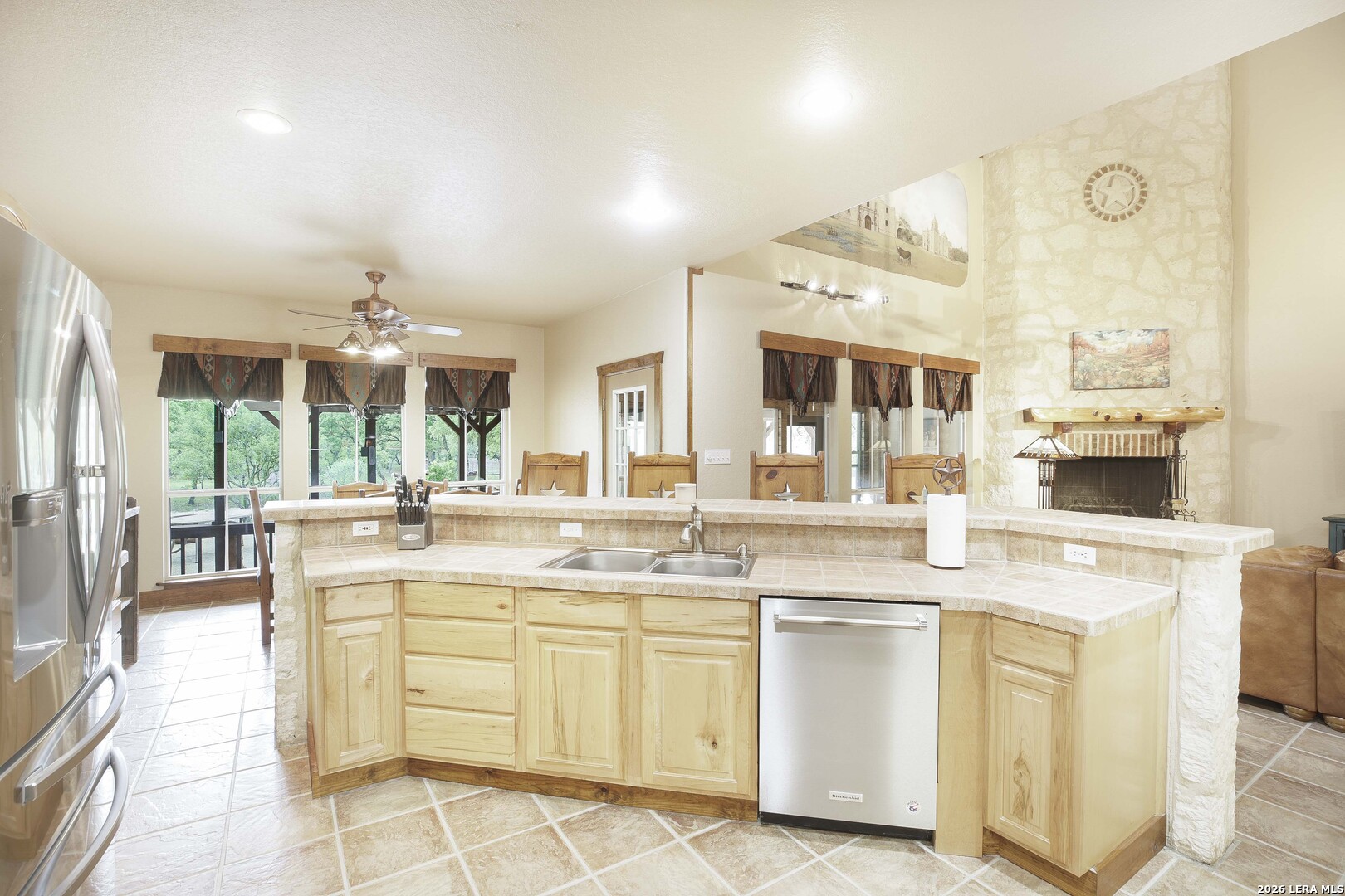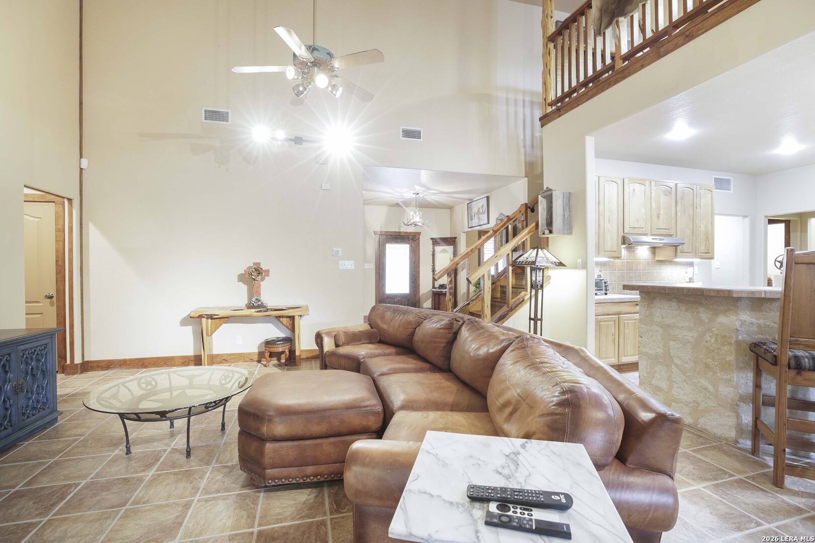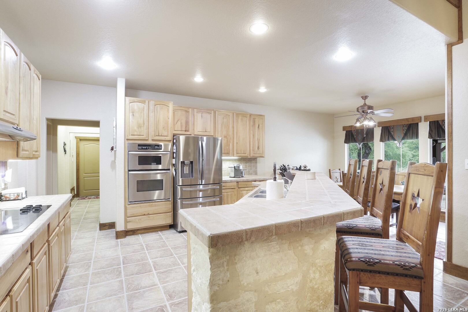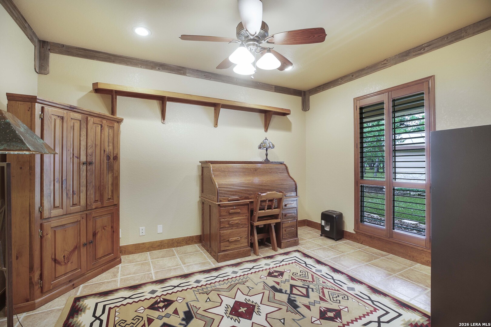 Welcome to your private Texas retreat on over 4 fully fenced acres, where space, versatility, and charm come together seamlessly. This expansive 4-bedroom, 3-bath home offers a flexible layout designed to fit a variety of lifestyles, featuring a dedicated office, loft, flex space, two dining areas, and multiple living spaces-including a cozy main living room with a fireplace. The main floor includes 3 full bedrooms and 2 bathrooms, providing convenience and functionality for everyday living. An inviting, full-length front porch sets the tone; inside, you'll find thoughtful details like custom door handles in the office and generous natural light throughout. The kitchen and living areas flow effortlessly, creating an ideal environment for both everyday living and entertaining. Step outside to your own fully fenced backyard oasis-complete with a beautifully landscaped, fenced pool area featuring an in-ground pool with a striking rock waterfall, surrounding flatwork, and multiple access points. The covered back deck and enclosed patio provide the perfect spaces to relax or host gatherings year-round under the shade of mature oak trees. Car enthusiasts, hobbyists, or those needing extra storage will appreciate the abundance of parking and workspace options: a 2-car attached garage, additional detached garage buildings that can serve as parking, workshops or storage, a two-car carport, and multiple outdoor parking pads. Constructed with durable stone and siding and topped with a metal roof, this property blends quality craftsmanship with the tranquility of wide-open space-all while offering the functionality today's buyers are looking for.