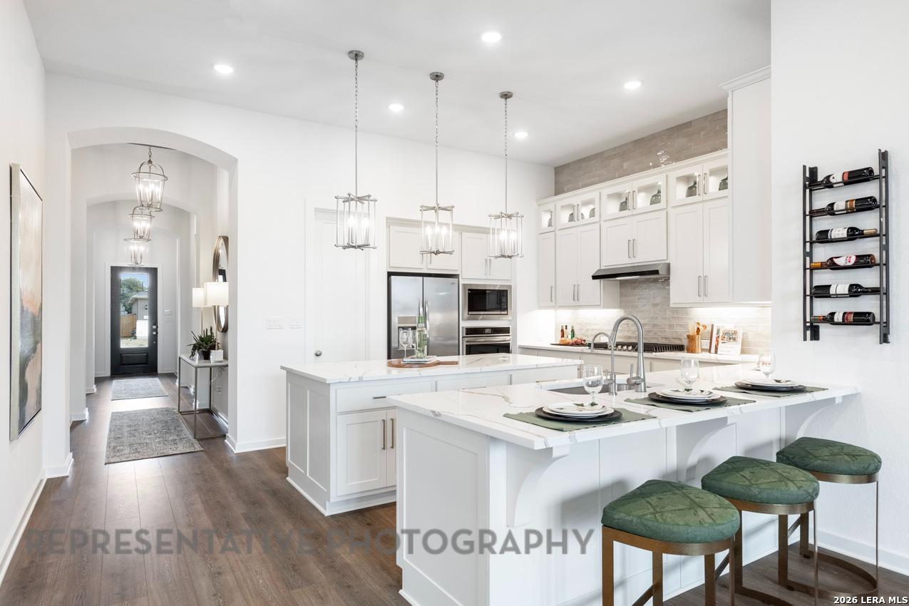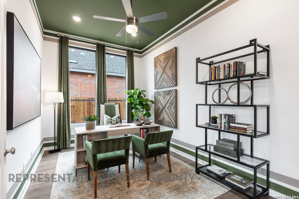 This ONE level home boasts expanded secondary bedrooms each with ensuite bathroom, 3 car garage, free standing tub in Primary bath, home office, wood floors, light neutral interior palette with tree'd backyard. Home under construction with estimated July/August completion.