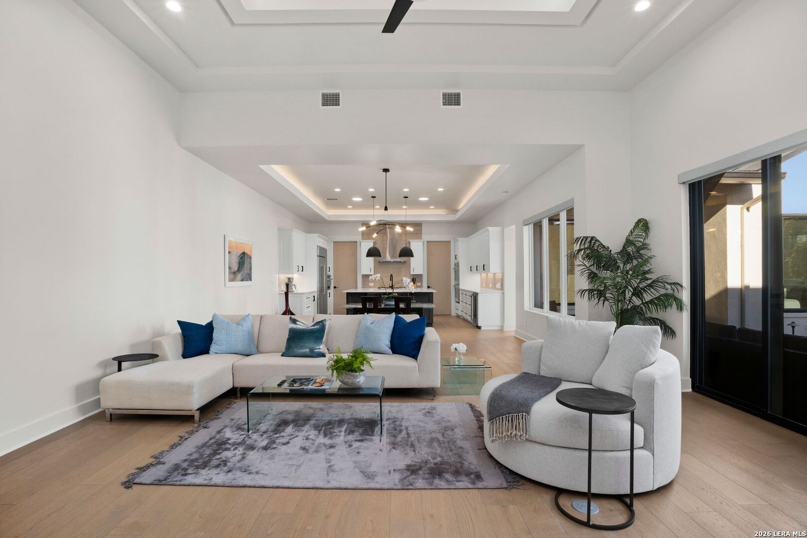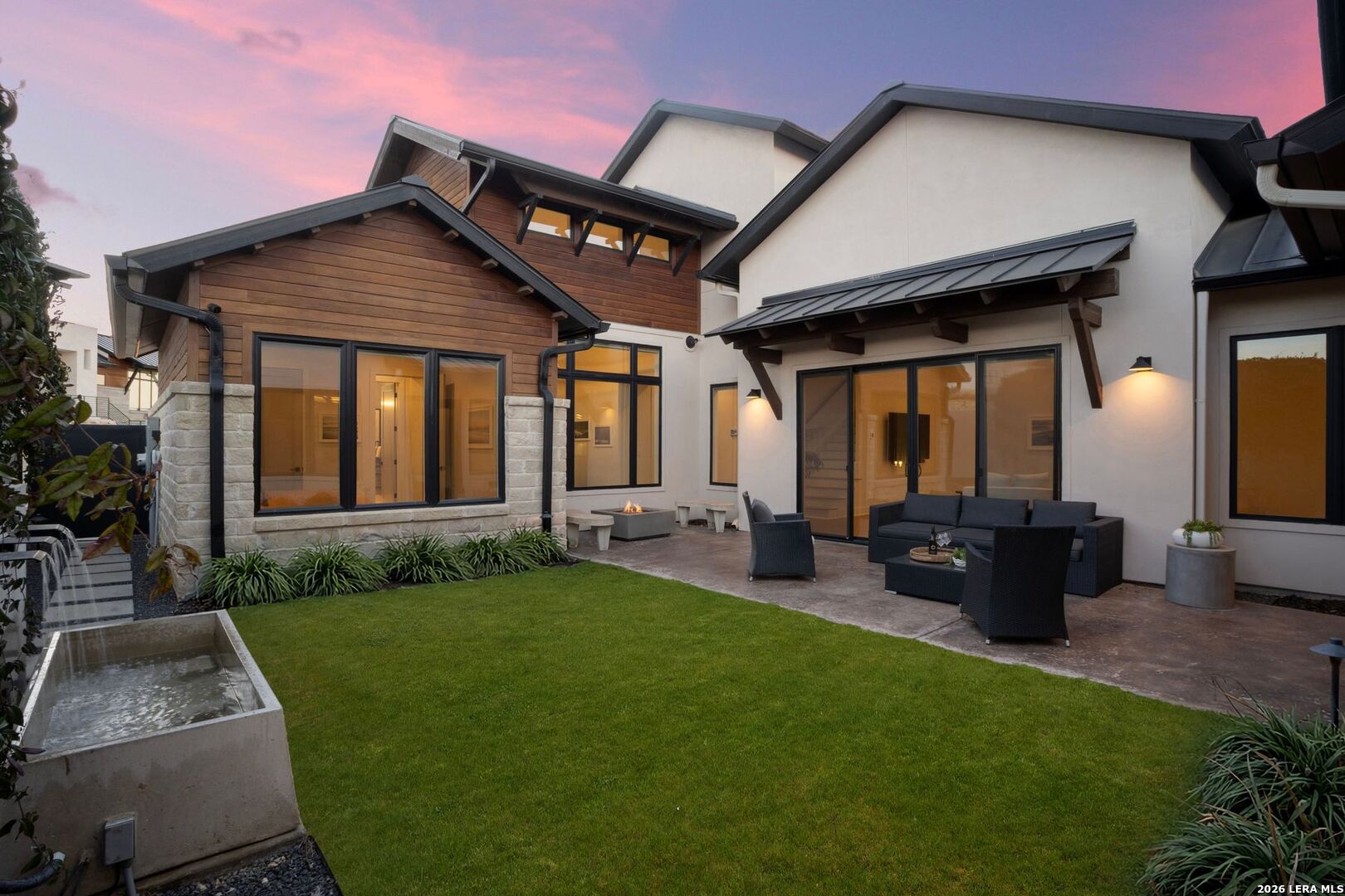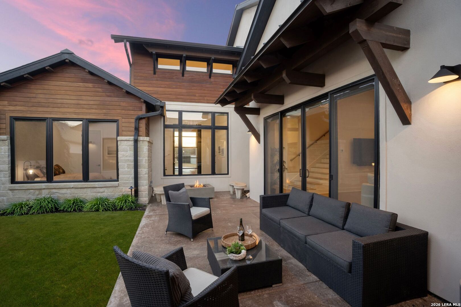 Sophisticated low-maintenance living in one of San Antonio's most prestigious communities, just moments from The Dominion Country Club. Designed by award-winning architect Gustavo Arredondo and built by Dwell Dominion, blending modern elegance with a thoughtfully designed. A striking 10-foot pivot door opens to a dramatic double-height foyer, leading into an open-concept great room, dining area, and chef's kitchen framed by soaring 10-16-foot ceilings and expansive natural light. The kitchen serves as the heart of the home, featuring an oversized island, gas cooking, double ovens, built-in appliances, and a walk-in pantry-perfect for both entertaining and everyday living. Elevated finishes, custom cabinetry, designer lighting, and premium materials are showcased throughout. The luxurious primary suite offers a spa-inspired bath with a freestanding soaking tub, spacious walk-in shower, and generous closet. A secondary bedroom with full bath on the main level provides flexibility for guests or a home office, while upstairs features a private third bedroom with en-suite bath and a cozy loft retreat. The home is thoughtfully centered around a private courtyard, where a tranquil water feature and inviting fire pit create a serene outdoor focal point creating beautiful views and seamless indoor-outdoor living ideal for relaxing or entertaining. An oversized two-car garage includes a climate-controlled workspace or can be used as storage. As a rare added benefit, the seller is offering an assumable mortgage at an exceptional interest rate, presenting a unique opportunity for significant savings.