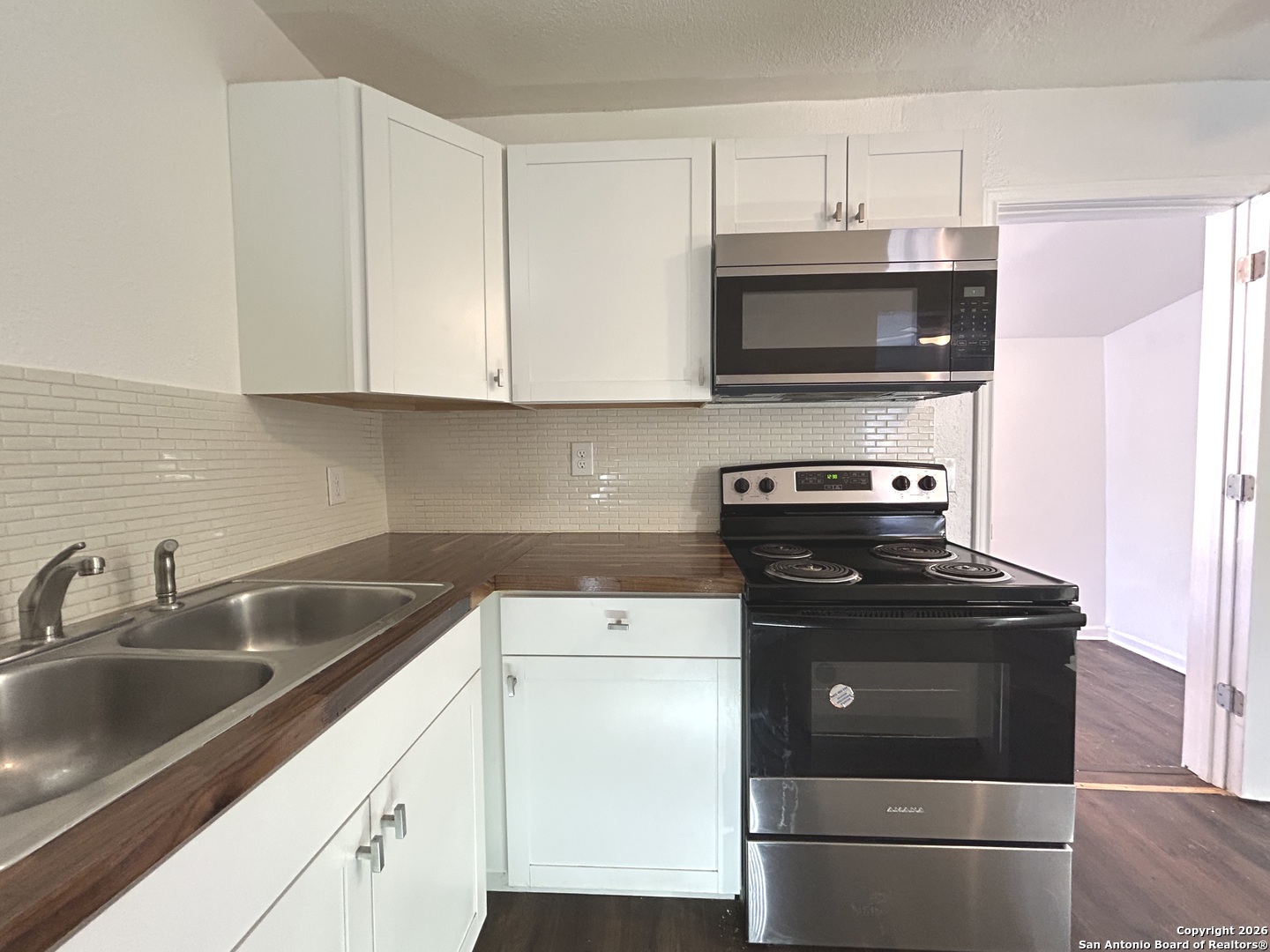 Cozy, Updated Duplex close to downtown. This lovely home has been freshly painted inside and out. Features remodeled kitchen with new appliances that include stove, microwave and dishwasher. Quaint dining area. Laundry room is inside and has extra space for storage. Carport can accommodate a small car or motorcycle. Small fenced yard to enjoy the outdoors. Quiet, established neighborhood. Easy access to highway and shopping.