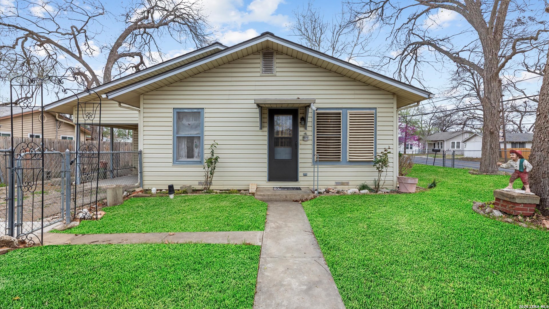 Charming 1948 home in the sought-after Aviation Heights neighborhood of Historic Schertz! This single-story 3-bedroom, 2-bath property sits on a spacious corner lot and offers timeless character. Enjoy the convenience of being within walking distance to Schertz Elementary and just minutes from Randolph Air Force Base, shopping, dining, and major commuter routes. Recent improvements include a new HVAC system installed in 2024 and a roof replaced in 2019, providing peace of mind for years to come. The large lot offers plenty of outdoor space for entertaining, gardening, or future possibilities, while the attached carport adds everyday convenience. Whether you're looking for your first home, a place to downsize, or an investment opportunity in a well-established neighborhood, this Aviation Heights gem is full of potential and ready for its next chapter.