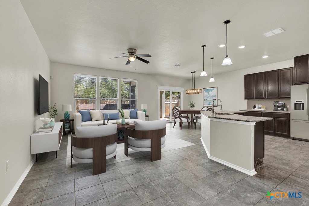 Welcome to 310 Sageleaf Willow Dr, a charming and spacious two-story single-family home nestled in the sought-after Retreat on Willow Creek subdivision of San Marcos. This beautifully maintained residence offers approximately 2,544 sq ft of thoughtfully designed living space, perfect for modern family living or entertaining with ease. Step inside to an open concept floor plan where the living, dining, and kitchen areas flow effortlessly — ideal for everyday life and gatherings. The kitchen features a generous island, ample counter space, and is central to daily activity. A convenient home office off the foyer makes working from home a breeze, while a bonus room upstairs provides flexible space for media, play, or study. The primary suite offers privacy and comfort, and additional bedrooms provide plenty of room for family or guests. Outside, enjoy a private backyard retreat complete with a covered patio, deck, built-in fire pit, and soothing water feature — perfect for outdoor living and year-round enjoyment. Located near local schools, shopping, dining, parks, and major commuting routes, this home combines convenience with neighborhood charm. With its thoughtful layout, functional spaces, and outdoor amenities, 310 Sageleaf Willow Dr is a place where memories are made.