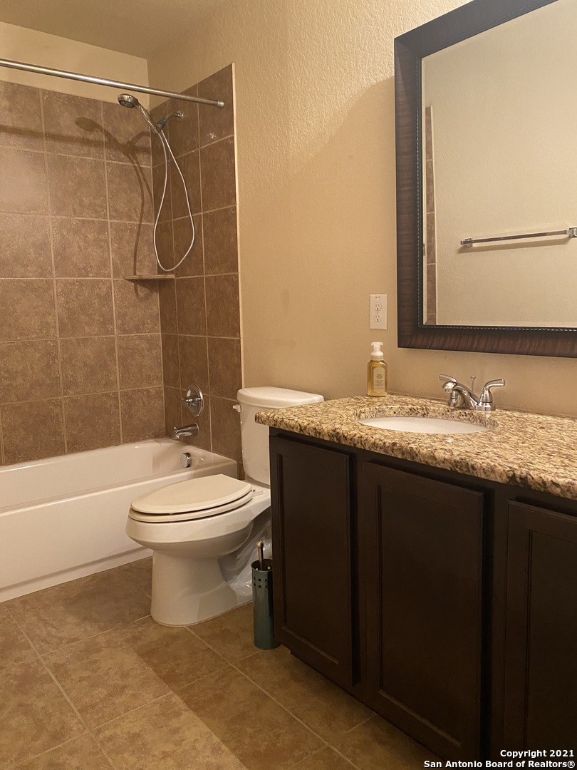Welcome to 3101 Christians Tee. This beautiful Schertz rental offers comfort and privacy for everyone! This spacious home features five bedrooms and four full bathrooms, including a downstairs bedroom and full bath perfect for guests. The open floor plan includes a formal dining area and a large island kitchen with granite countertops, breakfast bar, and sunny breakfast area-ideal for everyday living and entertaining. An oversized laundry room adds extra convenience. The huge primary suite offers a generous bedroom, spacious bathroom, and large walk-in closet. Upstairs you'll find a game room and four well-spaced bedrooms, providing flexible living space. Enjoy the outdoors on the covered back patio. Additional highlights include granite in all bathrooms, extra garage storage, and numerous upgrades throughout. Our Resident Benefit Package ($30/month) offers convenient services to help you stay on top of your home and financial needs such as air filter delivery, credit reporting, fraud alerts and more!