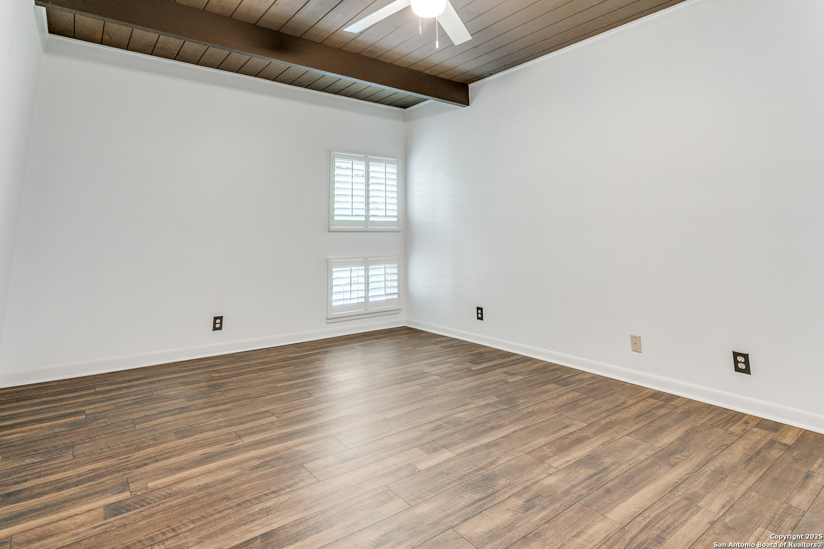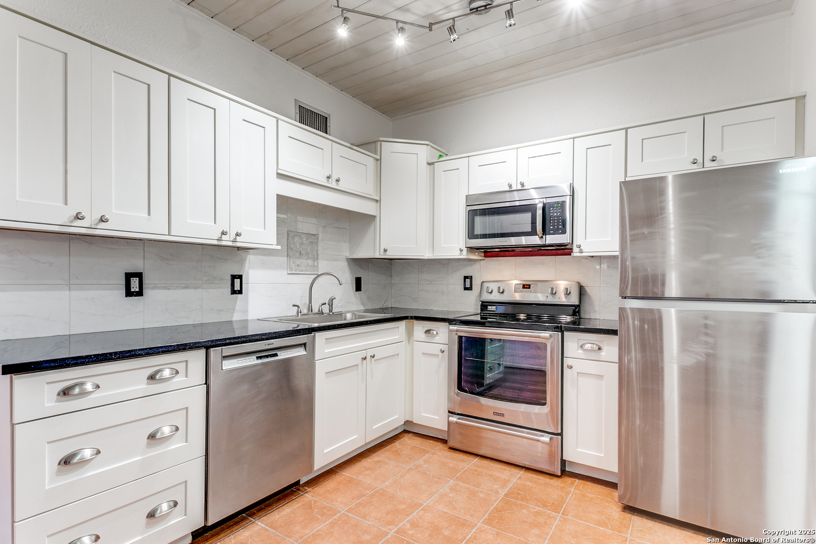 Welcome to this stunning loft-style condo located at 3102 Eisenhauer Road, Unit B-20, nestled within the desirable and amenity-rich Woodbridge community. Offering approximately 1,649 square feet of stylish living space, this two-bedroom, two-and-a-half bathroom residence provides the perfect blend of elegance, comfort, and convenience. Upon entering, you'll immediately notice the impressive 20-foot ceilings complemented by expansive floor-to-ceiling windows that fill the open living space with abundant natural light. Sliding doors lead out to your private balcony, where you can enjoy peaceful views of lush, mature landscaping. The thoughtfully designed floor plan features two spacious primary suites, each complete with its own full bathroom and generous walk-in closet, perfect for comfortable everyday living, hosting guests, or setting up a dedicated workspace. The kitchen is spacious and inviting, opening into a convenient dining nook, ideal for intimate dinners or entertaining friends and family. Woodbridge is known for its abundant amenities, featuring s, tennis and basketball courts, sparkling community pools, a welcoming clubhouse, dog park, and beautifully maintained green spaces. HOA fees conveniently cover common-area maintenance, trash collection, pest control, and exterior insurance. Located near excellent shopping, dining options, and quick access to I-35, this condo is perfect for cummutes or outings to popular resteraunts, downtown, the Pearl, and Ft. Sam Houston. With tasteful updates, modern finishes, and an outstanding community atmosphere, this condo represents an incredible value in a prime San Antonio location. Don't miss your opportunity to call this beautiful residence your home!