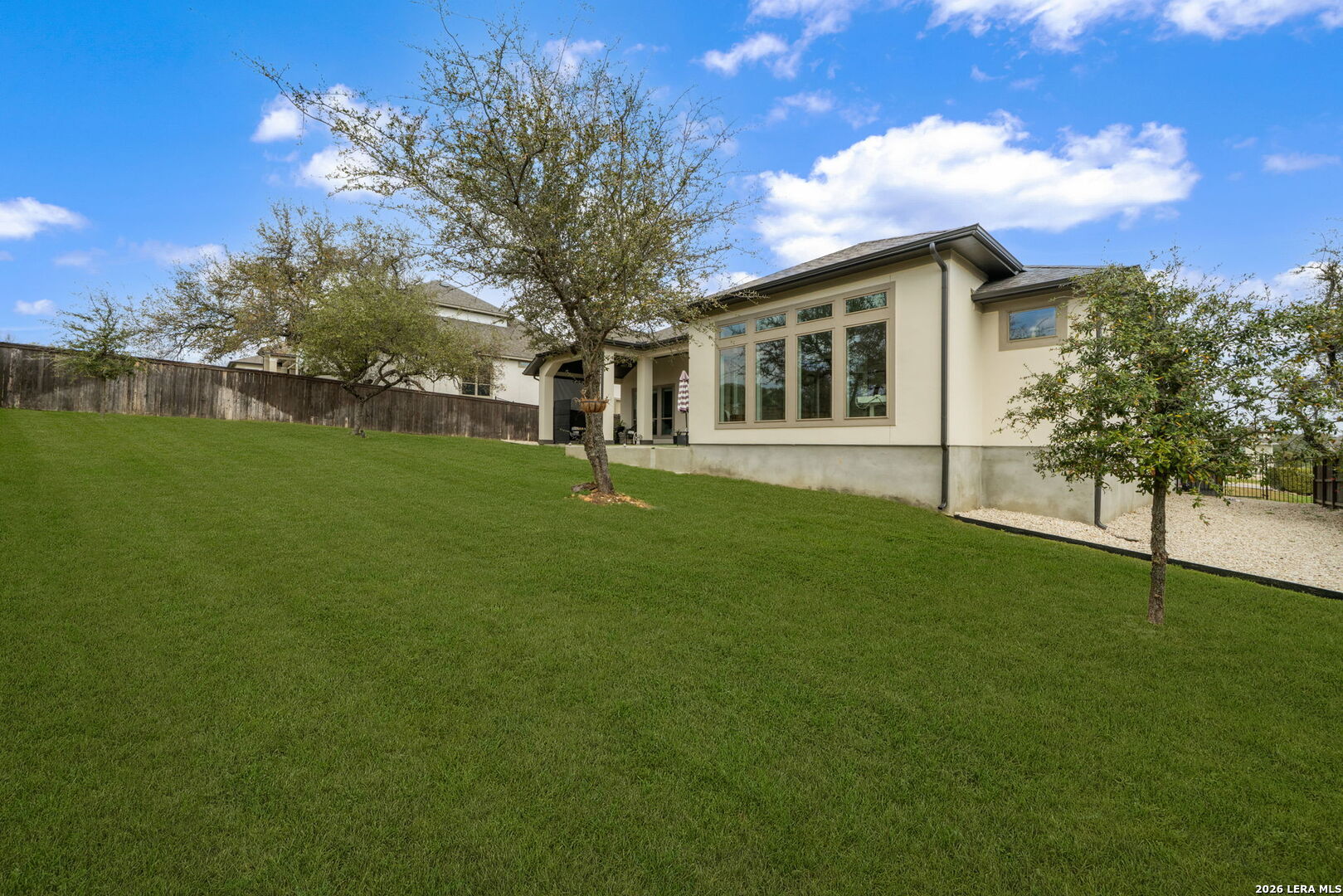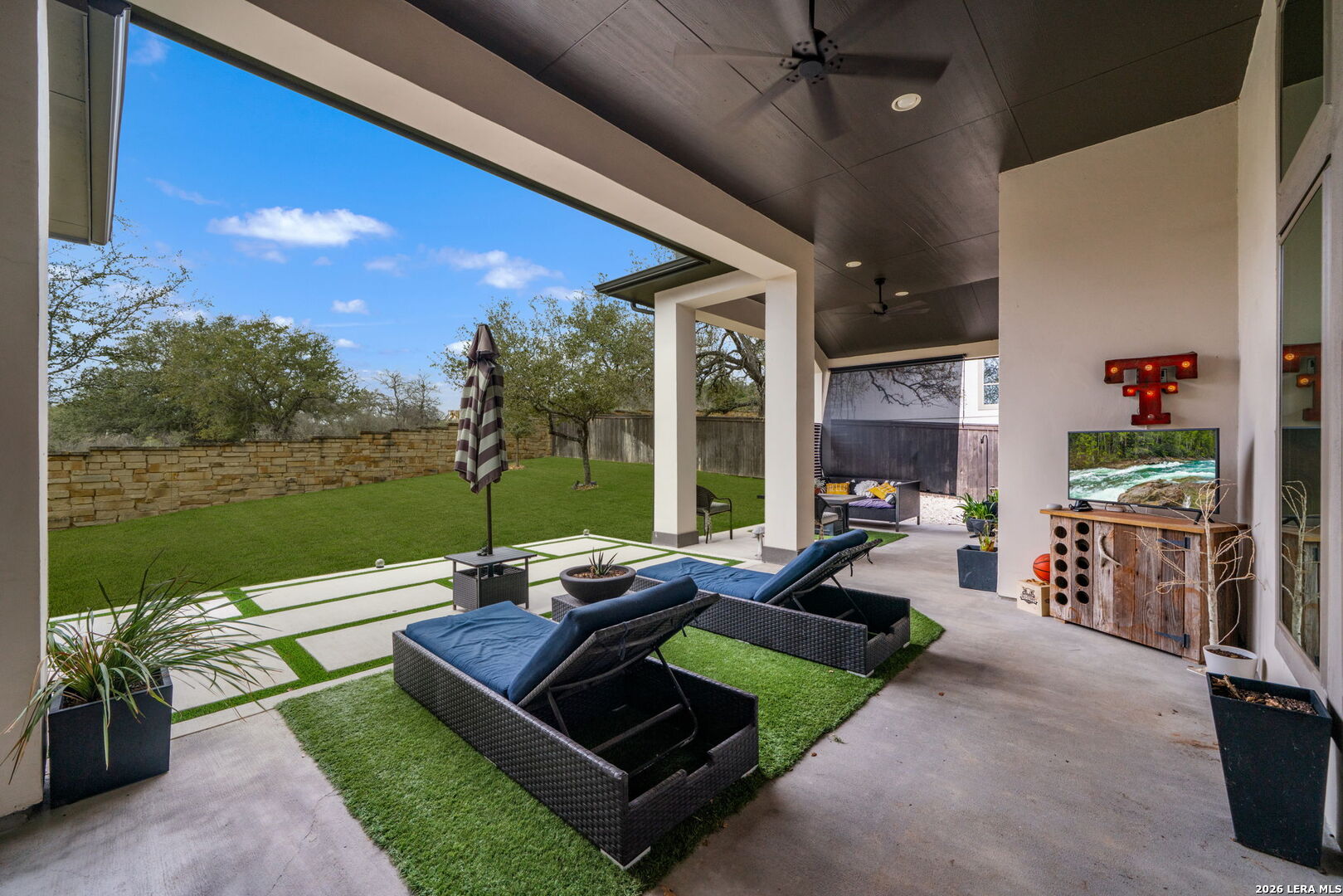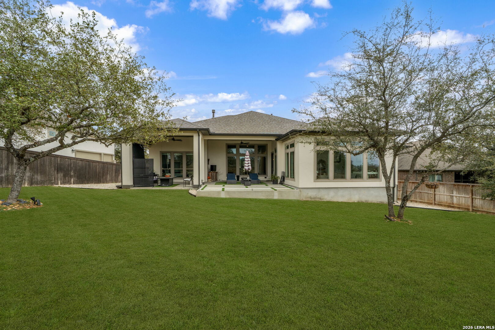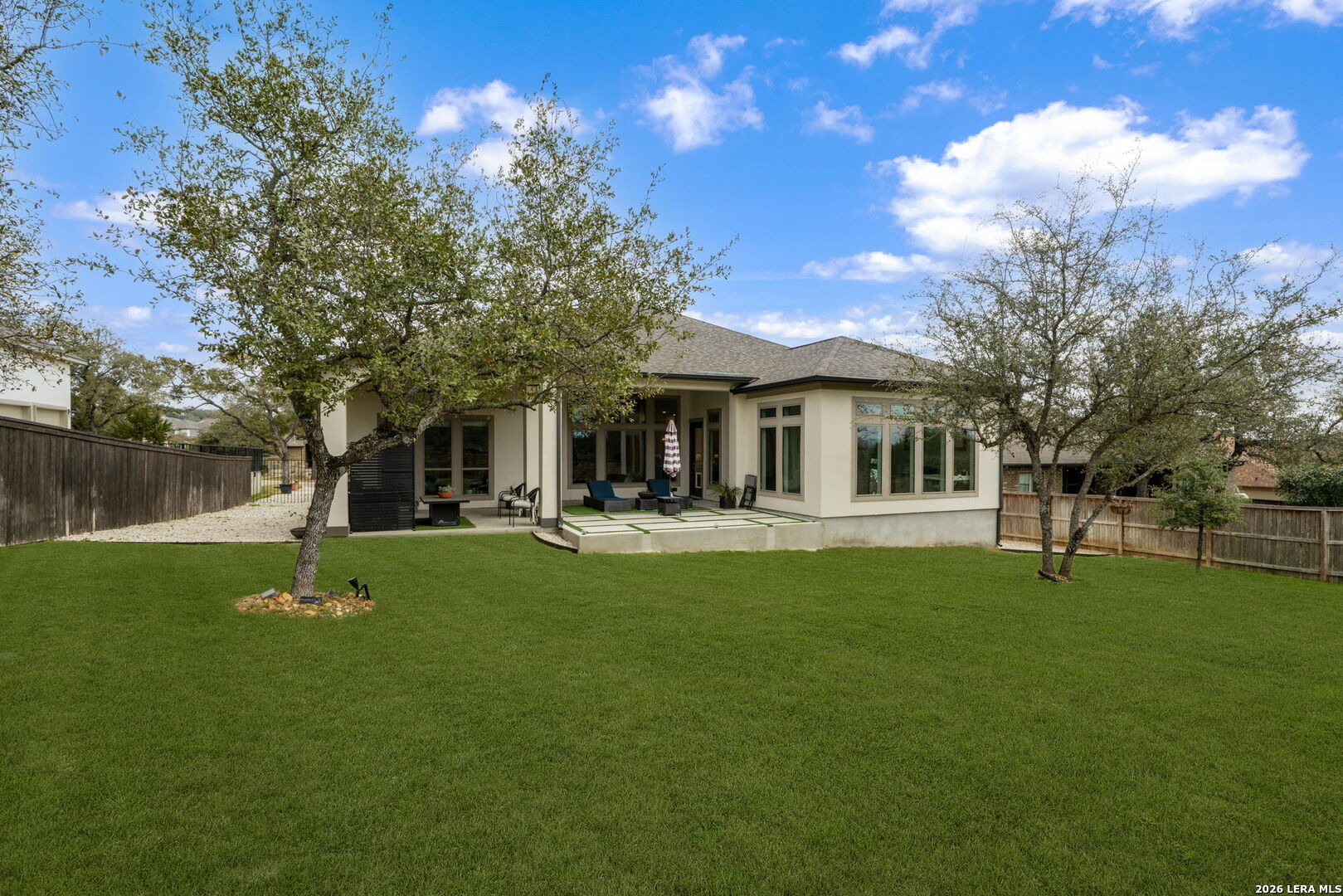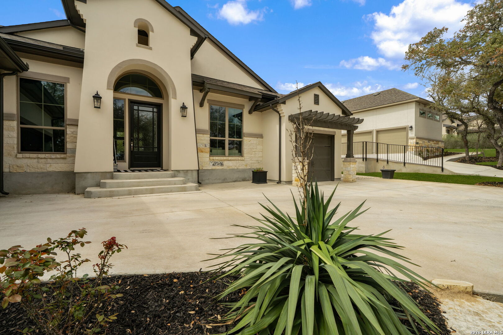 Hill Country Luxury Redefined in Johnson Ranch - 1-Story Perry home Estate Backing to Greenbelt! Welcome to luxury living in the highly sought-after Johnson Ranch community in Bulverde! This stunning 3,205 SF single-story home offers 4 spacious bedrooms, 3 full baths, a 3-car garage, and an extended driveway-perfectly blending elegance, comfort, and functionality. From the moment you step through the beautiful vestibule entry, you're greeted by soaring high ceilings, an open-concept layout, and designer finishes throughout. The heart of the home features a gourmet eat-in kitchen with upgraded fixtures, gold accent hardware, an extensive island, and a butler's pantry complete with built-in wine storage-ideal for entertaining. The kitchen flows seamlessly into the expansive living area, anchored by a cozy gas fireplace, soaring ceilings, towering windows, and an abundance of natural light. Host unforgettable gatherings in the formal dining room, or enjoy casual mornings in the bright breakfast area overlooking the backyard. The thoughtfully designed floor plan includes two dedicated study/office spaces-perfect for working from home, creative pursuits, or a private library-plus a spacious game room for relaxation and fun. The private primary suite offers a luxurious retreat, while three additional bedrooms provide ample space for family or guests. Step outside to your large backyard backing to a serene greenbelt, offering privacy and peaceful views with no rear neighbors. Located within a gated community featuring a resort-style pool and exceptional amenities, this home delivers upscale Hill Country living at its finest. Experience refined comfort, modern elegance, and the lifestyle you've been dreaming of-all in one extraordinary home.