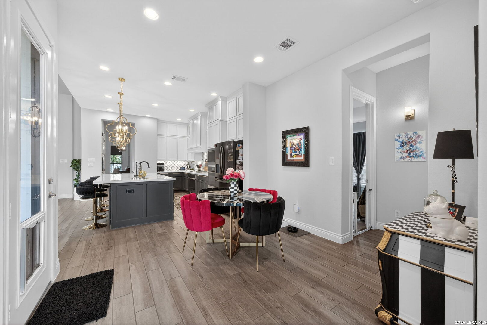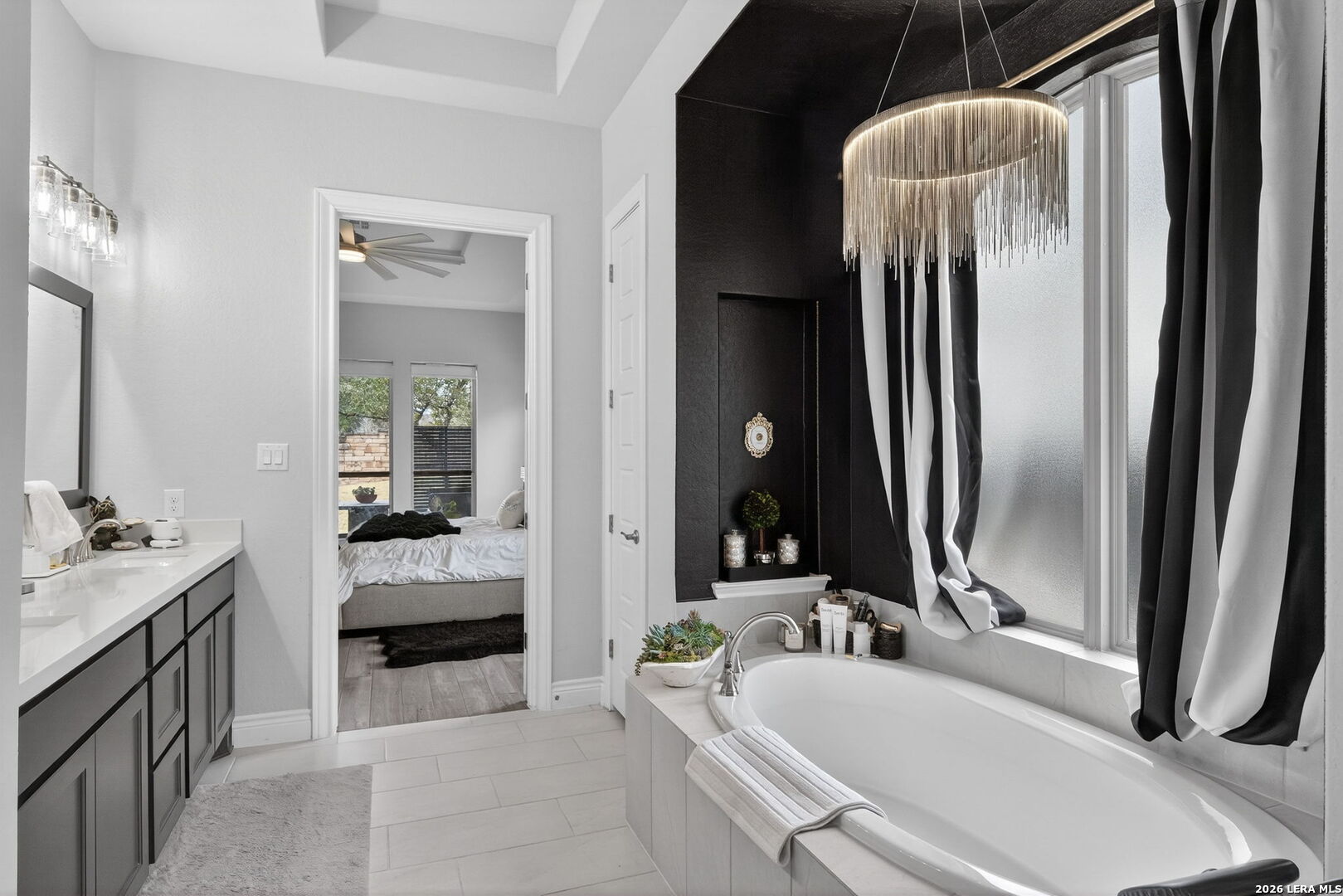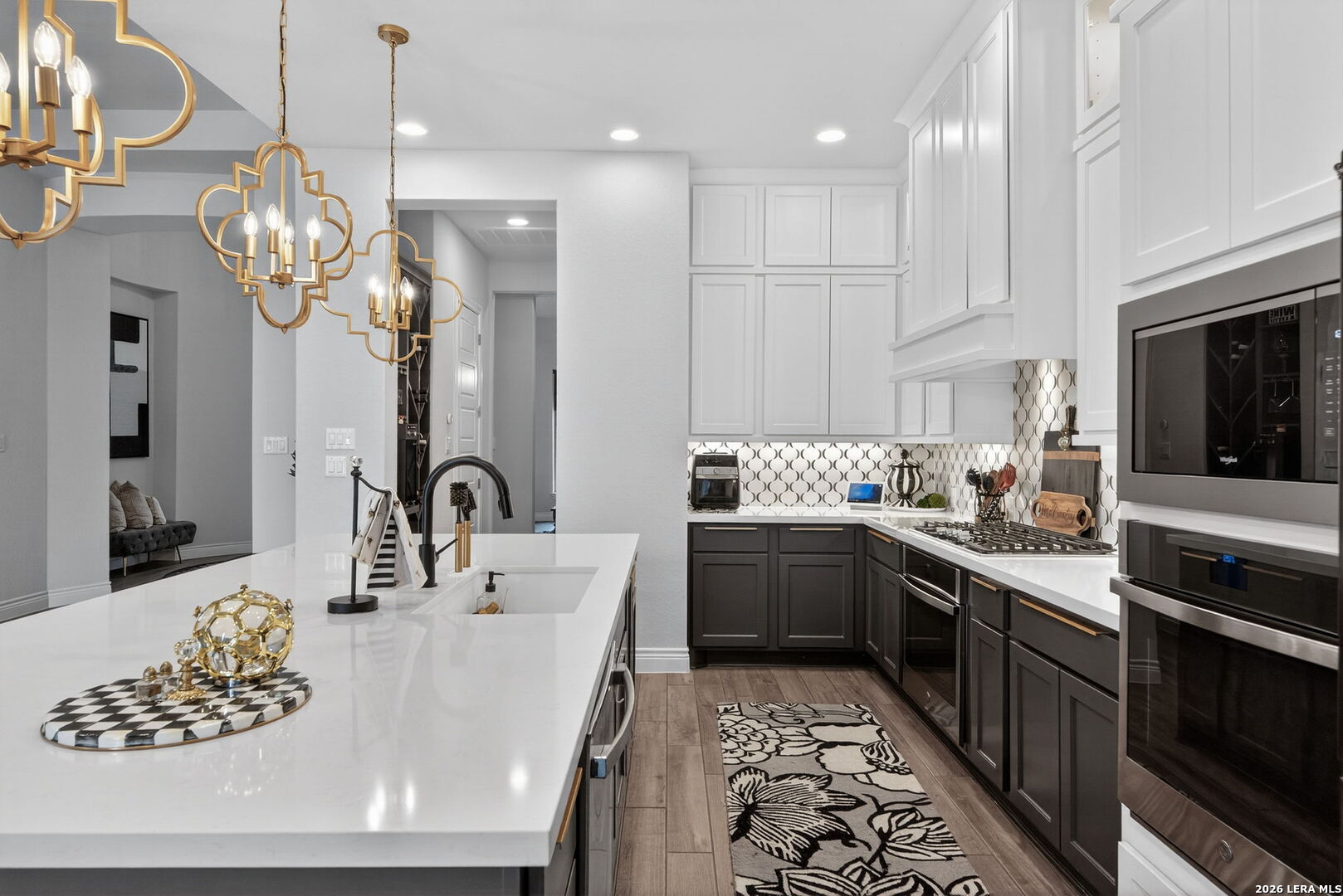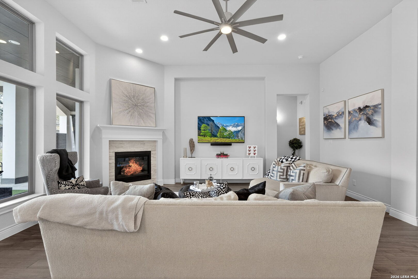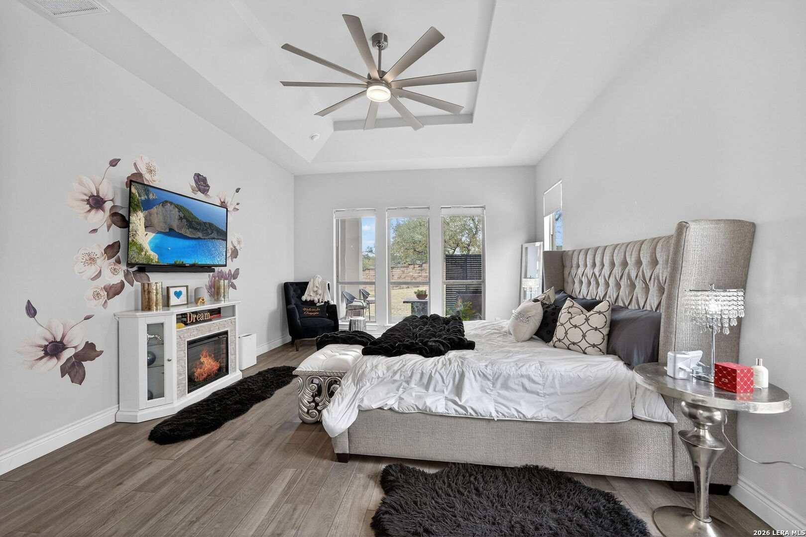 Hill Country Luxury Redefined in Johnson Ranch - 1-Story Perry home Estate Backing to Greenbelt! Welcome to luxury living in the highly sought-after Johnson Ranch community in Bulverde! This stunning 3,205 SF single-story home offers 4 spacious bedrooms, 3 full baths, a 3-car garage, and an extended driveway-perfectly blending elegance, comfort, and functionality. From the moment you step through the beautiful vestibule entry, you're greeted by soaring high ceilings, an open-concept layout, and designer finishes throughout. The heart of the home features a gourmet eat-in kitchen with upgraded fixtures, gold accent hardware, an extensive island, and a butler's pantry complete with built-in wine storage-ideal for entertaining. The kitchen flows seamlessly into the expansive living area, anchored by a cozy gas fireplace, soaring ceilings, towering windows, and an abundance of natural light. Host unforgettable gatherings in the formal dining room, or enjoy casual mornings in the bright breakfast area overlooking the backyard. The thoughtfully designed floor plan includes two dedicated study/office spaces-perfect for working from home, creative pursuits, or a private library-plus a spacious game room for relaxation and fun. The private primary suite offers a luxurious retreat, while three additional bedrooms provide ample space for family or guests. Step outside to your large backyard backing to a serene greenbelt, offering privacy and peaceful views with no rear neighbors. Located within a gated community featuring a resort-style pool and exceptional amenities, this home delivers upscale Hill Country living at its finest. Experience refined comfort, modern elegance, and the lifestyle you've been dreaming of-all in one extraordinary home.