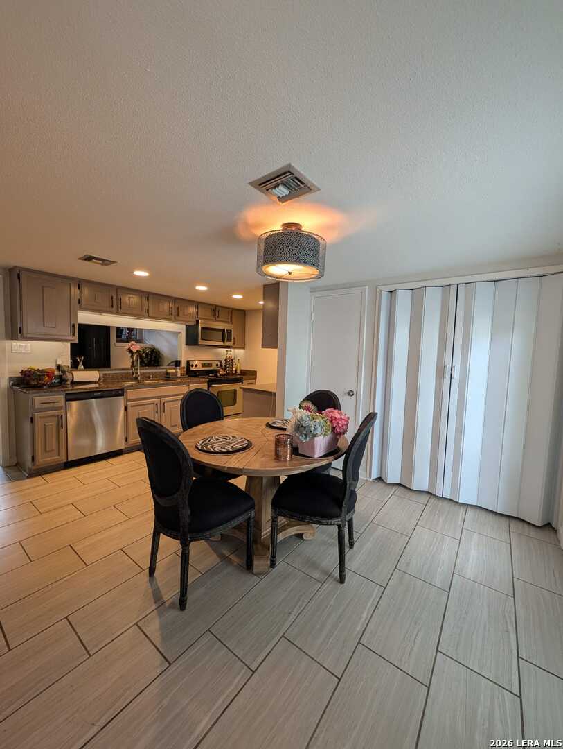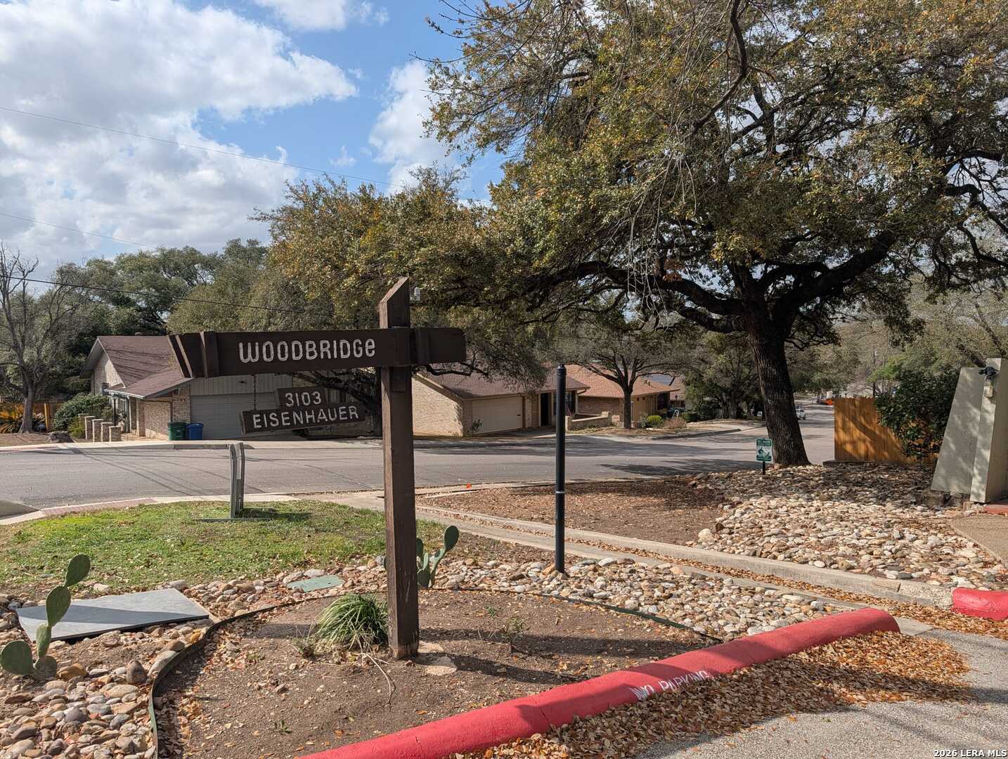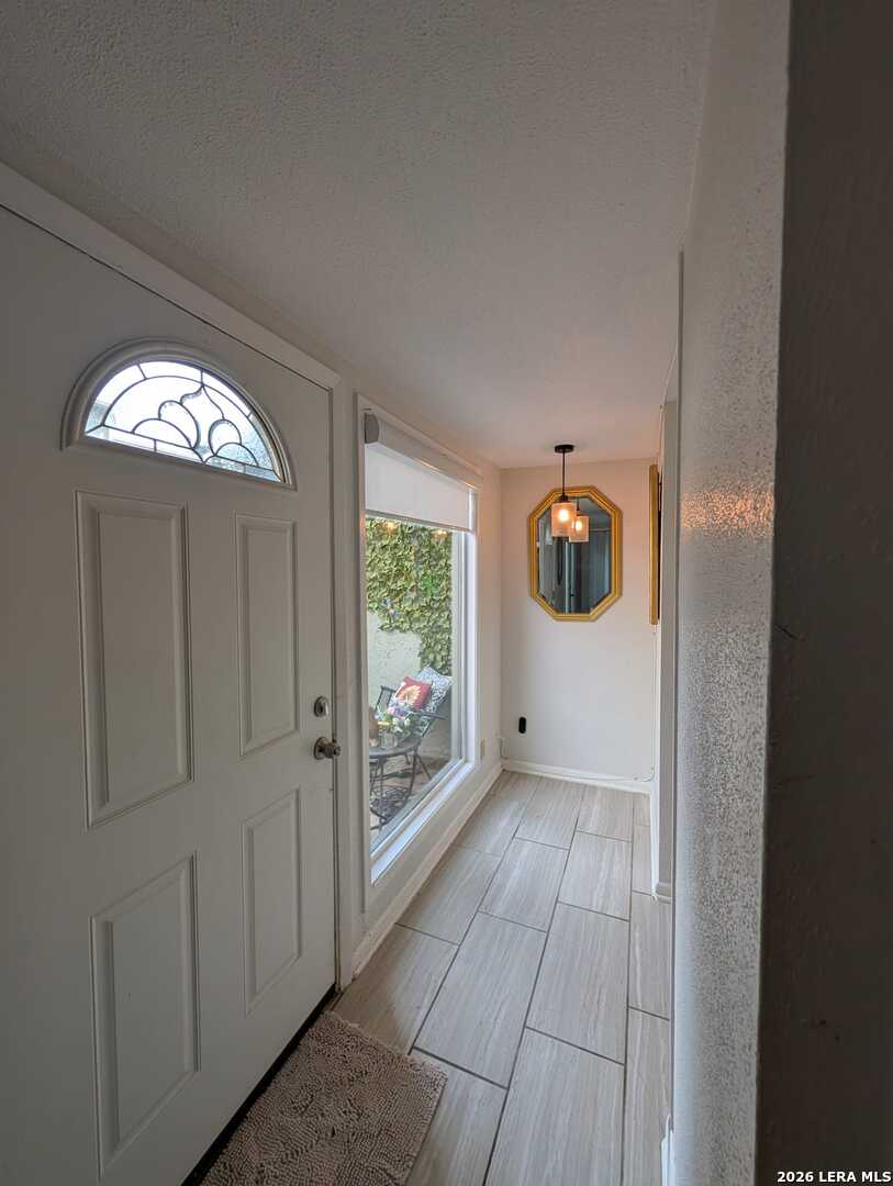 Welcome to this beautifully maintained 2-bedroom, 2.5-bath and 2 car garage condominium in the highly desirable Woodbridge Condominiums. This inviting home offers the perfect blend of comfort, character, and location. Enjoy your own charming front yard with a mature tree-an ideal space to relax, unwind, and enjoy the beautiful San Antonio skies or gather with family and friends. The first level features an updated kitchen with granite countertops and a dining area overlooking the peaceful yard. The layout flows comfortably into the living area, creating a warm and functional space for everyday living. The second level showcases stunning wood-beamed ceilings, an open living space with a cozy fireplace, private balcony, and a wet bar-perfect for entertaining guests or enjoying quiet evenings at home. On the third level, you will find two spacious bedrooms, both featuring beautiful wood-beamed ceilings and abundant natural light, creating a bright and inviting retreat. Residents of Woodbridge Condominiums enjoy excellent amenities including a swimming pool, tennis court, and clubhouse. The location is exceptional, offering convenient access to Loop 410 via Wurzbach and just minutes from Fort Sam Houston, Alamo Heights, Downtown San Antonio, shopping, dining, and parks. If you're looking for character, comfort, and convenience all in one place, this is the home for you. Schedule your private showing today and discover everything this wonderful property has to offer!