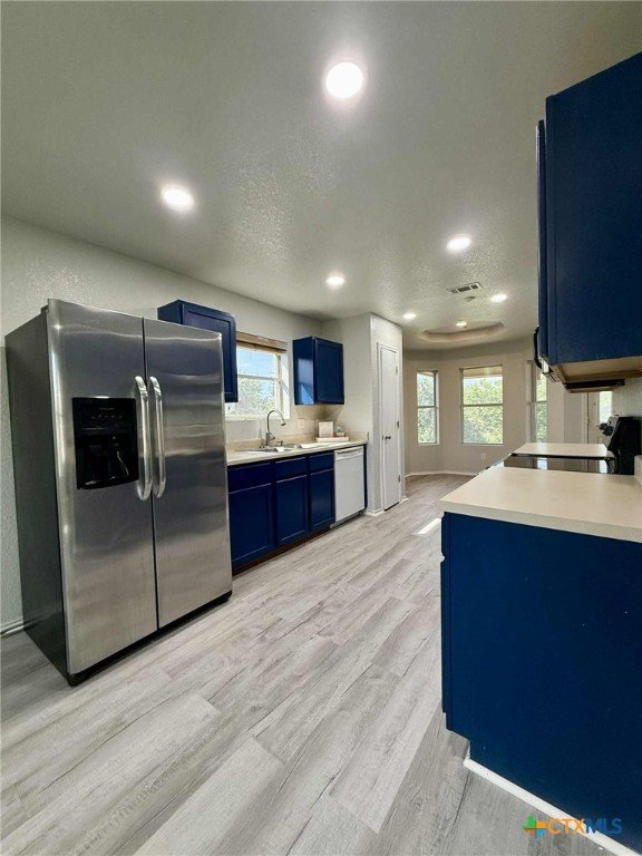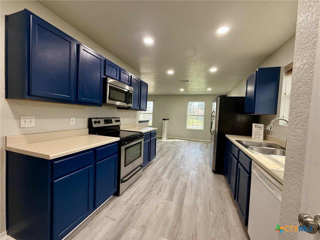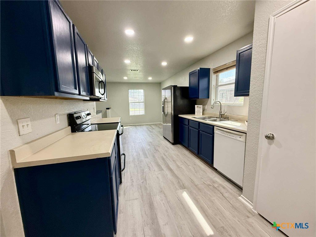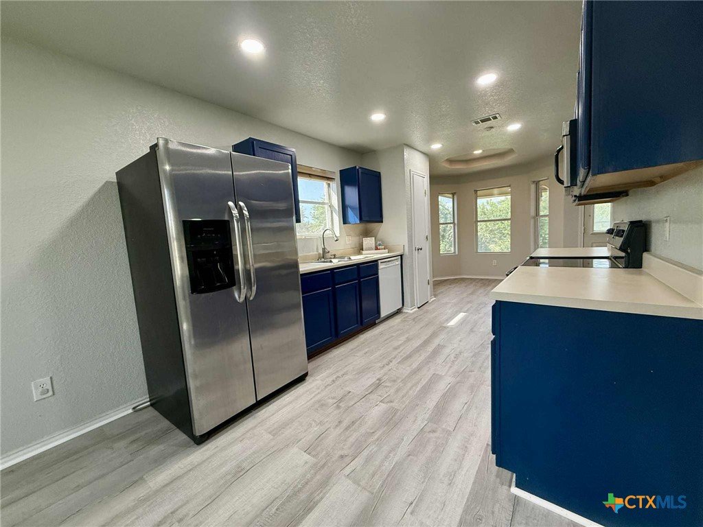 5 bedrooms, 2 dining area, 2 living area, 2 full baths and a two-car garage. Large lot, covered patio, extended patio, lawn sprinklers, and fenced yard. Stainless steel appliances. Solar screens, new roof, new light fixtures, lots of recessed lights throughout the house and front of the house. House has new coat of paint inside. All Waterproof, vinyl laminate floors.