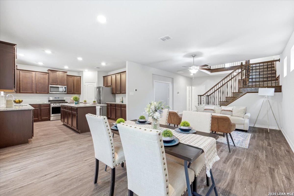Located in the heart of the highly sought-after North East Independent School District, this home offers exceptional value at an attractive price point. The well-designed floor plan provides flexibility to fit a variety of lifestyles. The downstairs flex room can be used as a fourth bedroom or as a dedicated home office, and it features double doors with convenient access to a full bathroom, making it ideal for guests or working from home. Easy-to-maintain flooring throughout the main living areas helps keep the home clean and tidy with minimal effort. The kitchen is a standout feature, offering abundant cabinetry, generous prep space, and a gas stove for those who truly enjoy cooking. It opens seamlessly to the main living area, creating a comfortable and functional space for daily living and entertaining. Upstairs, the remaining bedrooms are thoughtfully arranged for privacy, along with a spacious loft that adds even more versatility to the home. This area can easily serve as a second living space, gym, game room, or media room, adapting easily to your needs over time. The backyard offers a world of possibilities, whether you envision outdoor entertaining, play space, or a peaceful retreat. Mature trees surround the property, giving the home a well-established feel and adding to its overall charm. With its practical layout, desirable location, and strong value, this home presents an excellent opportunity in one of the area's most in-demand school districts.