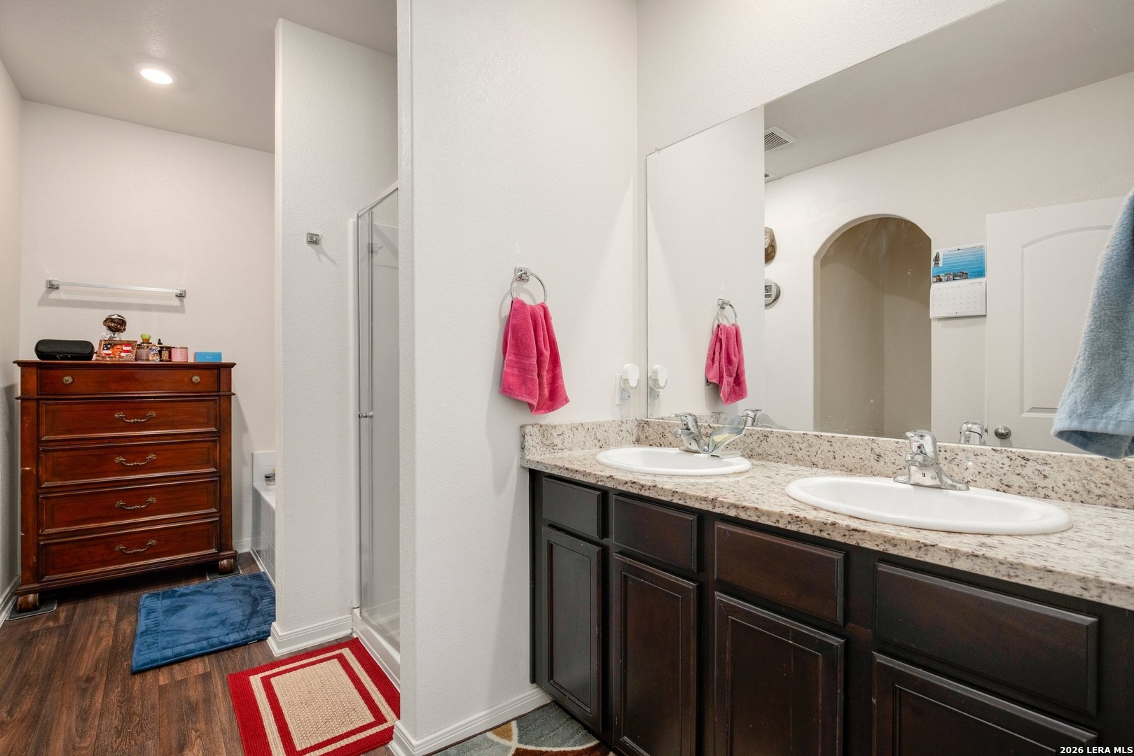 Seller has an assumable VA loan. This fabulous two-story traditional has great curb appeal & situated in the heart of all the city has to offer! Upon entering, you are welcomed by a light & bright open concept family room & kitchen that is perfect for everyday living & entertaining! The main level primary suite allows for privacy, and features an ensuite bathroom with dual sinks, walk-in closet, walk-in shower, and large soaking tub to unwind after a long day! A large game room, four additional bedrooms, an additional full bathroom, and laundry room complete the 2nd level. This fully fenced backyard will certainly be the settling for many future gatherings. Wonderful community amenities to enjoy. Easy commute to an array of nearby conveniences, shops, restaurants, and entertainment options. This home comes with a water softener with an RO system. Seller has termite & AC maintenance protection plans that the buyer can take over if they choose. Don't miss the opportunity to make this your next home, book your personal tour today!