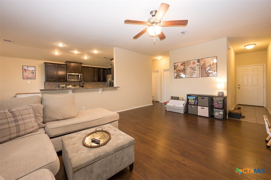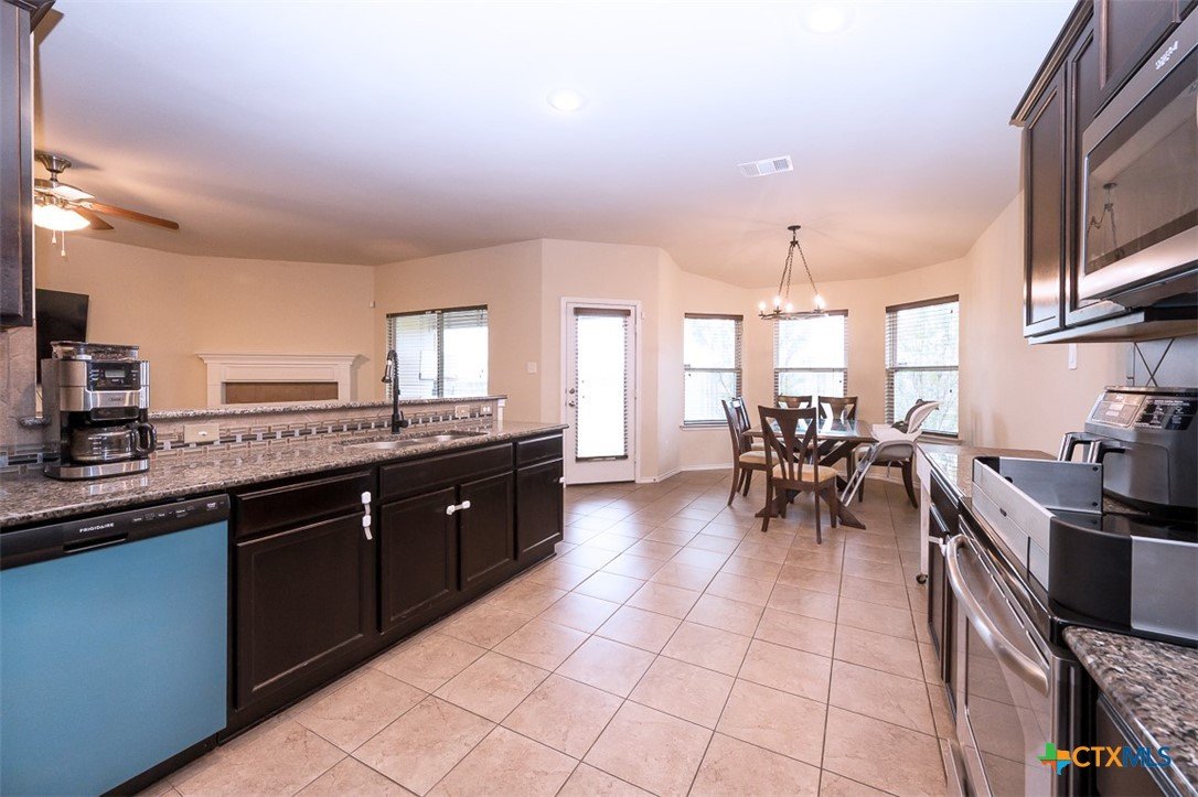 There’s something special about a home that gives you room to breathe, and this one delivers from the moment you arrive. The generous lot creates a sense of space with open front and backyards, while mature trees and thoughtful landscaping add character and a warm first impression. Inside, the layout is designed for both everyday living and easy entertaining. The gourmet kitchen stands at the heart of it all, featuring granite counters, a tile backsplash, upgraded stainless steel appliances, and a breakfast bar that flows seamlessly into the great room. Wood laminate floors add style and durability, while the open connection between spaces keeps everyone within reach. Just off the kitchen, the dining area captures natural light through a charming bay window, creating an inviting place to gather. The owner’s suite offers a comfortable retreat with a high ceiling that enhances the sense of space. The en-suite bathroom is well-appointed with a large walk-in shower and double sink vanity, providing both function and comfort. Beyond the home, the neighborhood offers a sense of security and connection, with nearby walking trails that invite you to get outside and enjoy the surroundings. This is a place where you can settle in, spread out, and truly feel at home.