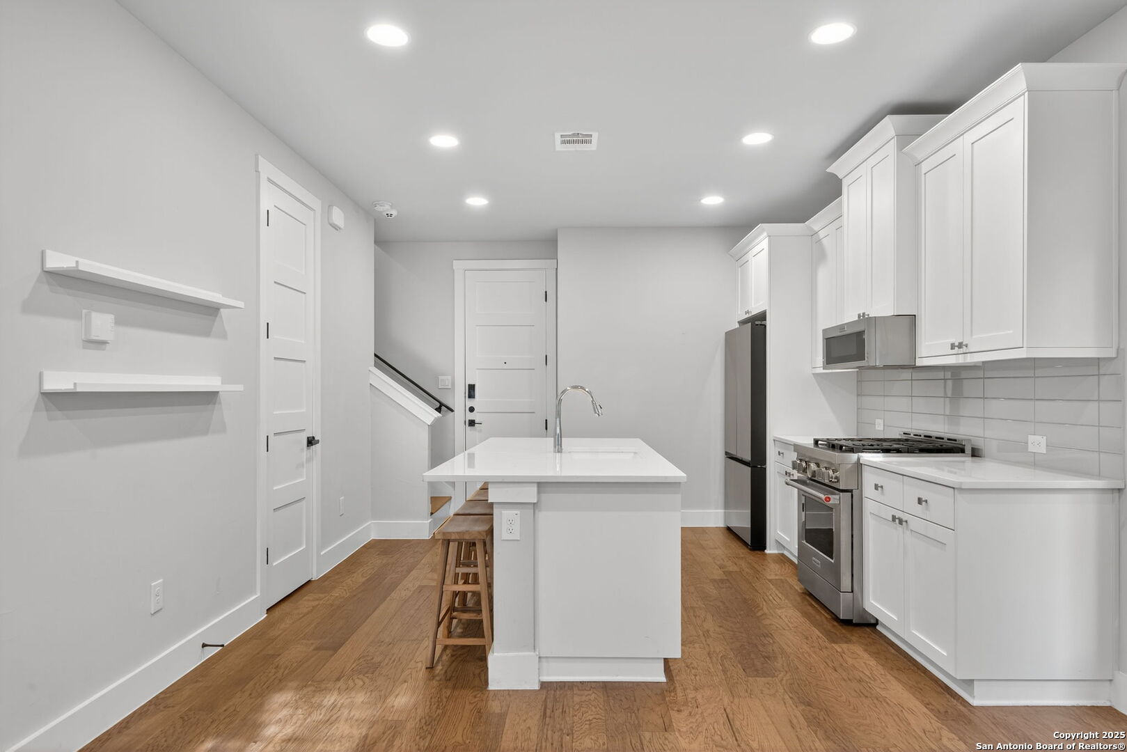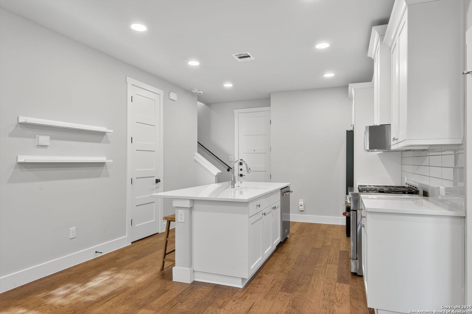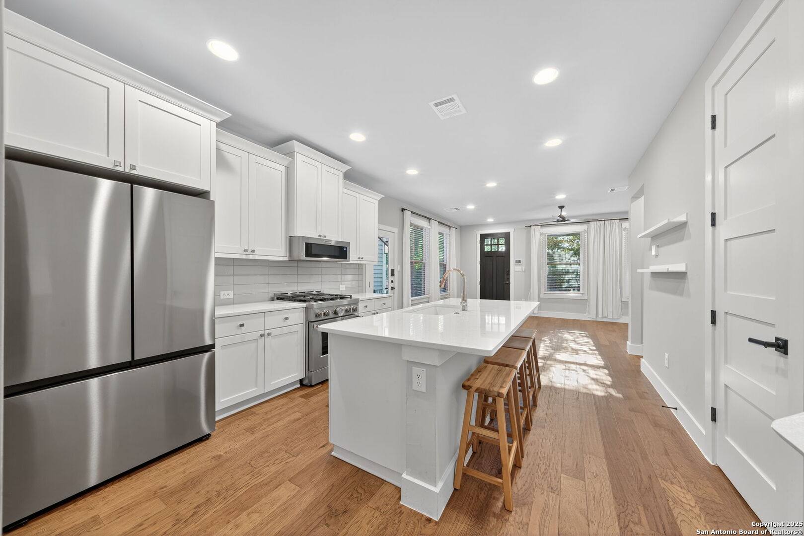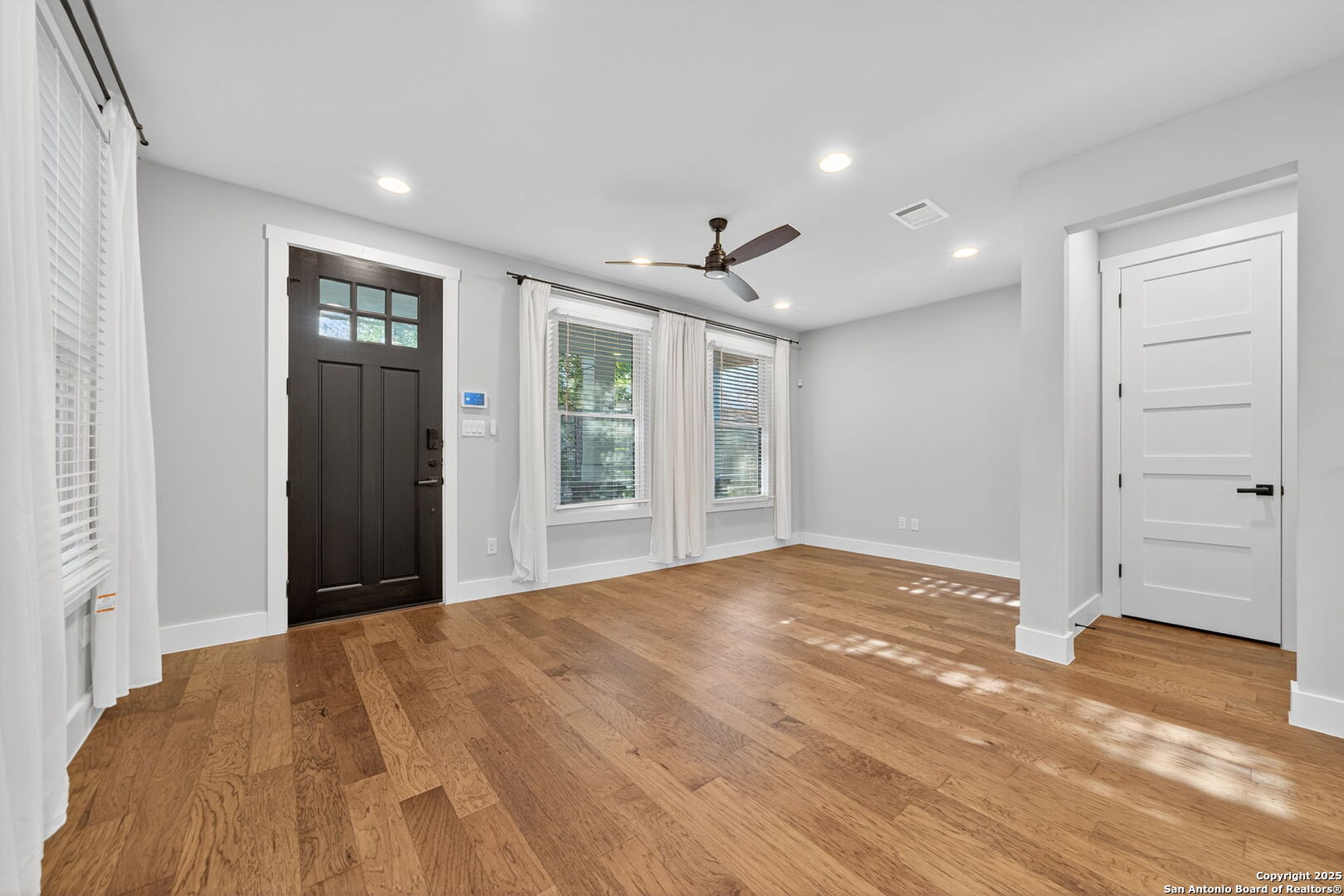 This downtown residence features 3 bedrooms and 3.5 bathrooms and is available for immediate move-in. Ideally situated near popular destinations such as The Pearl, Saint Mary's Strip, and the North Main Corridor, it also offers close proximity to Trinity University, the University of the Incarnate Word, the San Antonio Zoo, Breckenridge Park, McFarlin Tennis Center, and multiple museums. A highlight of the property is the third-story deck with a built-in fireplace, providing exceptional views of the city skyline. Combining urban convenience with modern amenities, this home delivers a truly remarkable living experience.