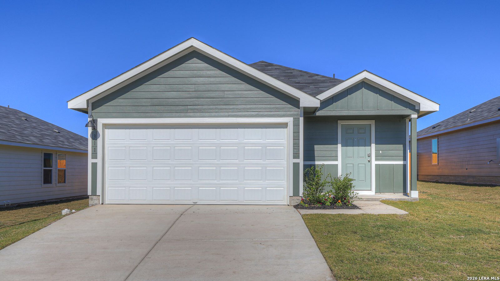 MOVE IN READY! Step inside the Caprock at Ladera in Luling, Texas. This one-story new home offers 3 bedrooms, 2 bathrooms and a 2-car garage across 1,434 square feet of living space. Our homes in Ladera feature a board and batten exterior. From the front porch, step inside the home and cross through the foyer and hallway. The utility room is off the hall and connects to the garage, making it a perfect mud room. The heart of the home is the open concept living space. The kitchen, dining and family room flow seamlessly into the other, making this space perfect for creating lasting memories. The kitchen features an island with a stainless-steel sink, quartz countertops, 42' upper 'picture frame' cabinets, a pantry closet, and stainless-steel appliances. The primary bedroom is located at the back of the home. Unwind at the end of your day in this private ensuite. The attached bathroom includes a walk-in shower, cultured marble vanity with trench sink and a walk-in closet. The secondary bedrooms and bathroom are located off the kitchen. The bedrooms include carpet and closets with wood shelving. The secondary bathroom has a shower/tub combination and a cultured marble vanity with trench sink. This home features our America's Smart Home base package, which includes the Video Front Doorbell, Front Door Deadbolt Lock, Home Hub, Thermostat, and Deako Smart Switches.