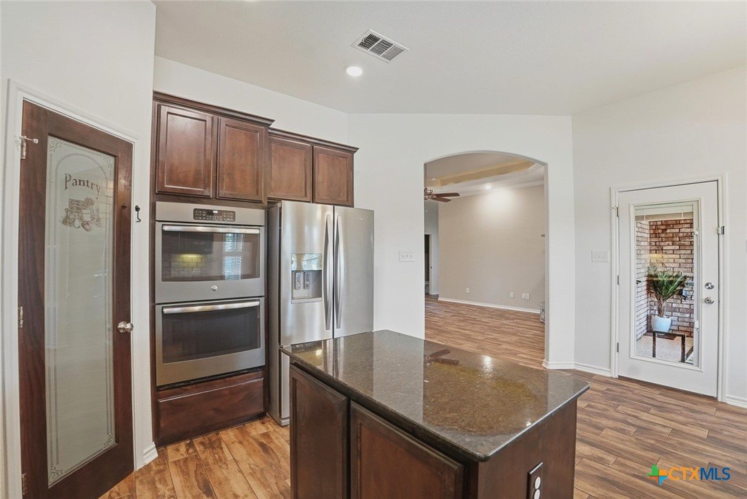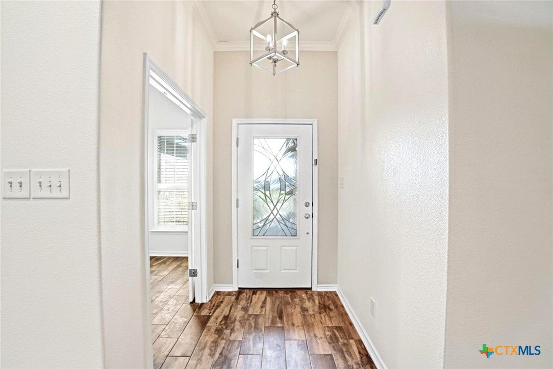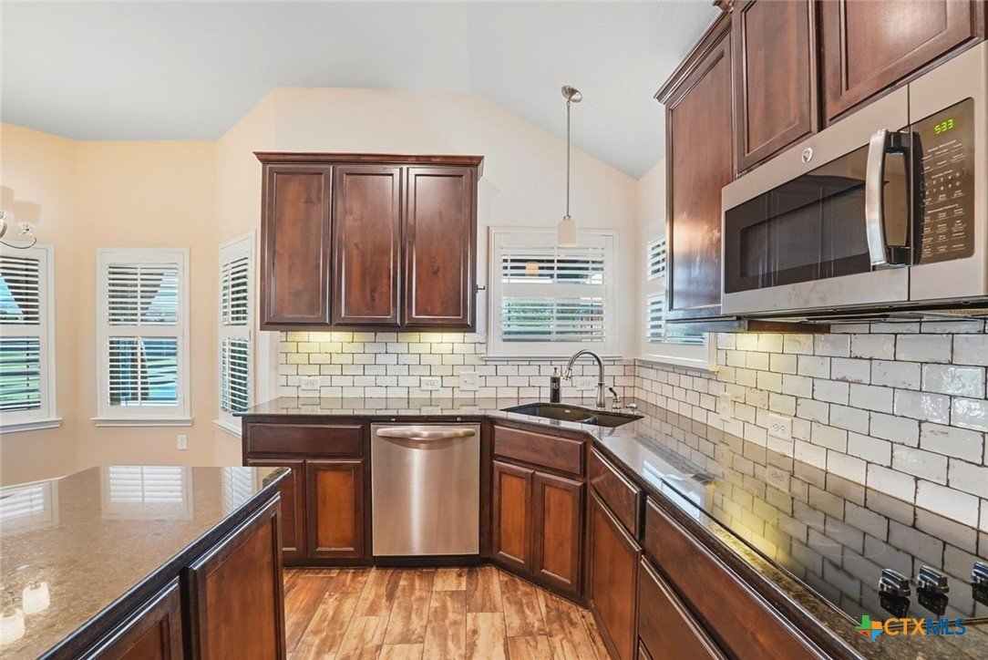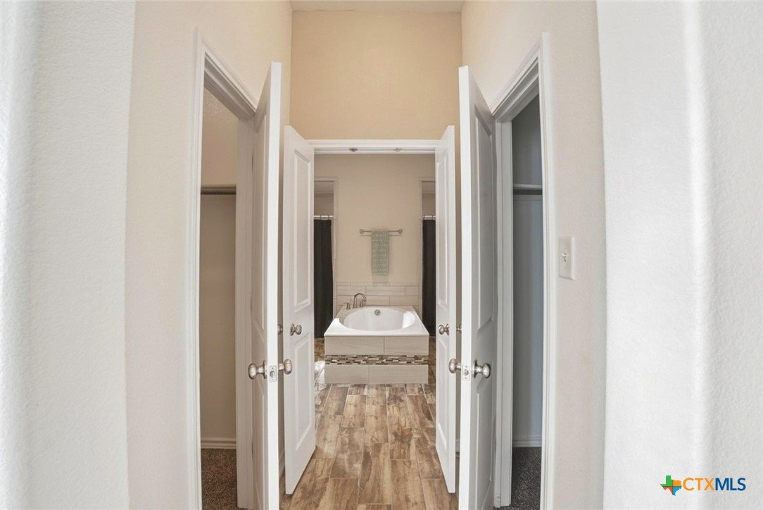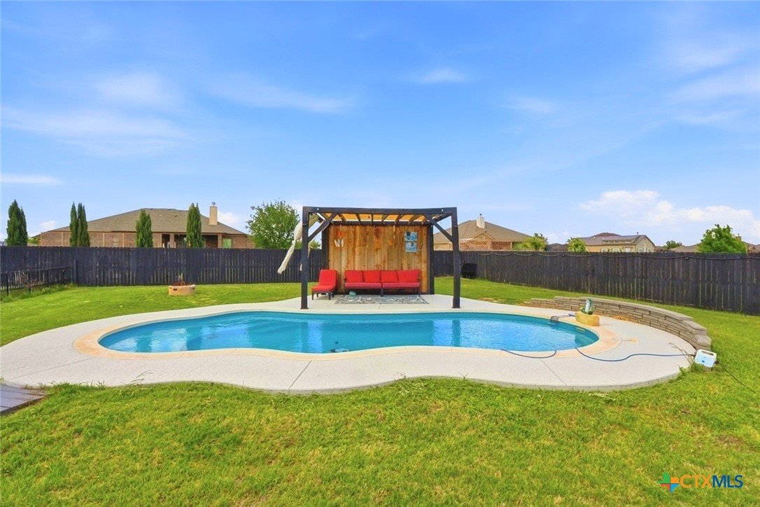 Discover the perfect balance of country charm and modern comfort in this immaculate 3-bedroom, 2.5-bath home with a dedicated office. Located in a quiet neighborhood with easy access to I-35, this home offers privacy, space, and all the upgrades you’re looking for—with no HOA! From the moment you walk in, you’ll notice the elevated details—plantation shutters throughout, rich crown molding, and durable wood-look tile flooring that flows seamlessly through the main living spaces. At the heart of the home, the kitchen is equipped for everyday living and entertaining, featuring granite countertops, central island, double ovens, and a welcoming eat-in space. The primary suite offers a true retreat, featuring dual vanities, a soaking garden tub, and an oversized walk-through shower —designed for both function and relaxation. Step outside and experience what truly sets this home apart—a private backyard oasis with a heated and cooled pool, plus a covered patio and deck designed for unwinding or hosting in total privacy. Additional features include a water softener, full sprinkler system, and a spacious side-entry garage with room for vehicles, storage, and more. If you’ve been looking for a home that offers flexibility, upgrades, and a peaceful setting—this is it. Schedule your showing today!