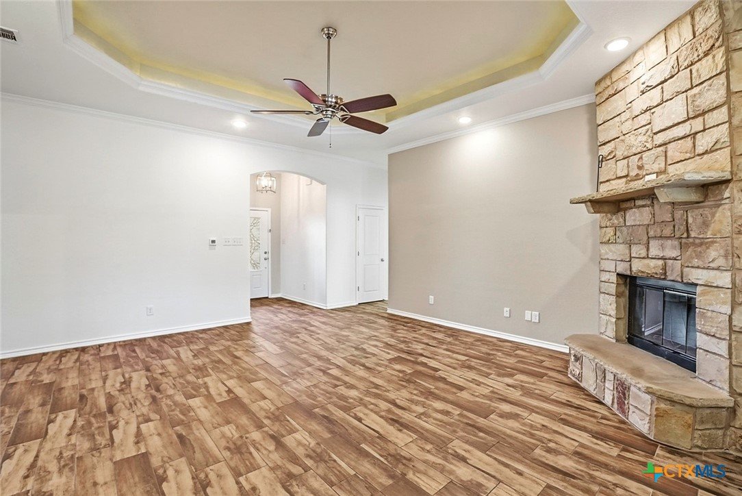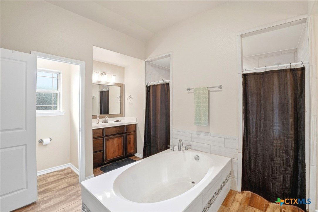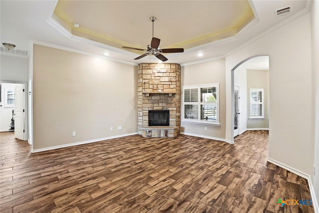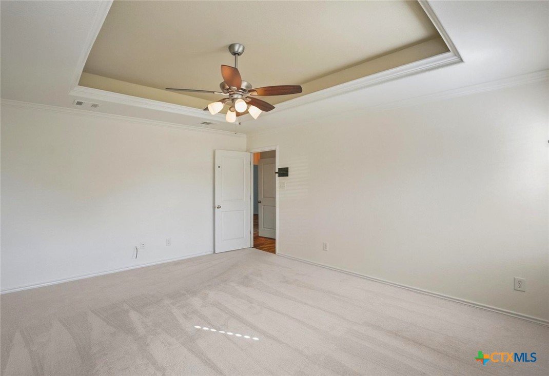 Discover the perfect balance of country charm and modern comfort in this immaculate 3-bedroom, 2.5-bath home with a dedicated office. Located in a quiet neighborhood with easy access to I-35, this home offers privacy, space, and all the upgrades you’re looking for—with no HOA! From the moment you walk in, you’ll notice the elevated details—plantation shutters throughout, rich crown molding, and durable wood-look tile flooring that flows seamlessly through the main living spaces. At the heart of the home, the kitchen is equipped for everyday living and entertaining, featuring granite countertops, central island, double ovens, and a welcoming eat-in space. The primary suite offers a true retreat, featuring dual vanities, a soaking garden tub, and an oversized walk-through shower —designed for both function and relaxation. Step outside and experience what truly sets this home apart—a private backyard oasis with a heated and cooled pool, plus a covered patio and deck designed for unwinding or hosting in total privacy. Additional features include a water softener, full sprinkler system, and a spacious side-entry garage with room for vehicles, storage, and more. If you’ve been looking for a home that offers flexibility, upgrades, and a peaceful setting—this is it. Schedule your showing today!