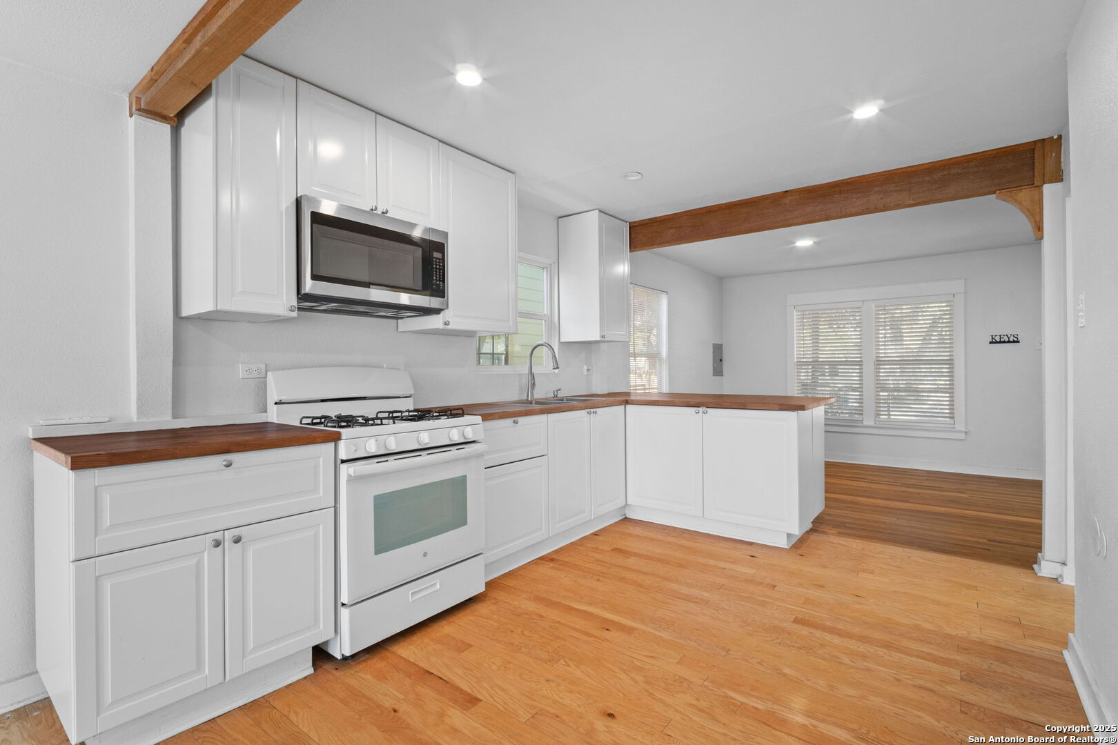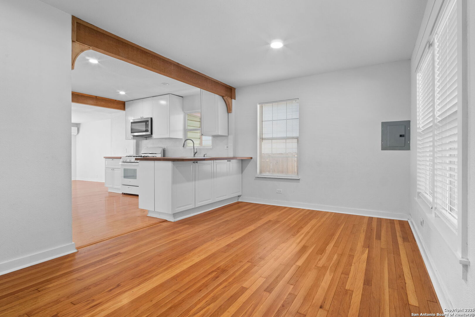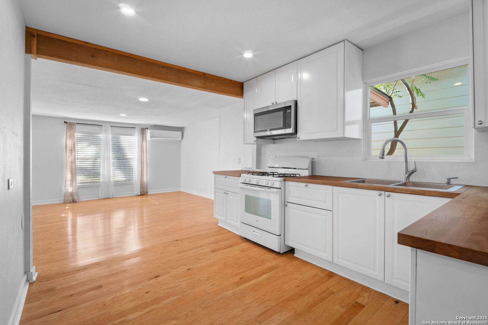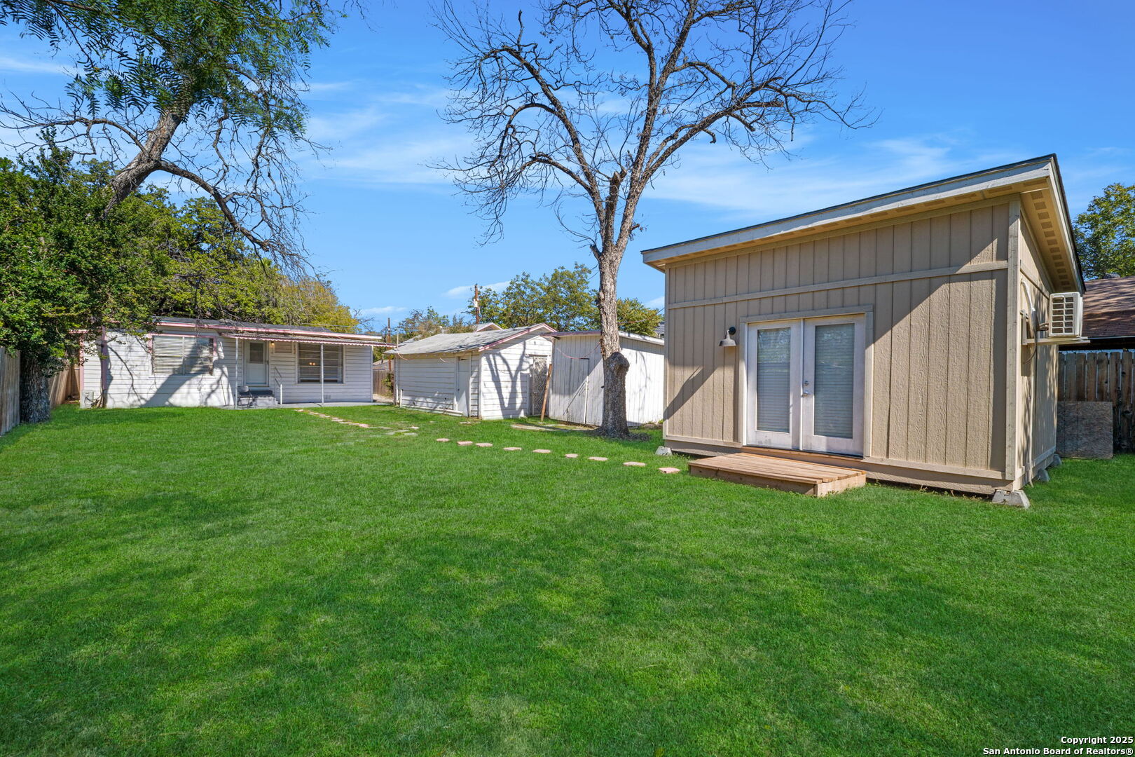 Picture perfect home in the heart of South Town in the Lone Star District. This lovely remodeled home was taken to the studs in 2019 to create a true mid-century mod beauty. Hard wood flooring throughout the main home, combined with designer white paint and large sunlit living spaces give this home an open and fresh feel. A 17' x 17' secondary building was added to the back yard and is perfect for an office, studio or hobby room. Open concept kitchen has butcher block counters with lots of space for meal prep and gas cooking for the gourmet chef. Welcoming backyard with a covered patio excellent for outdoor entertainment. Detached 2-car garage and extra storage shed. A century oak adorns the front yard with a modern horizontal privacy fence along the front perimeter of the yard. Walk to fun! Just blocks to the San Antonio Riverwalk, Blue Star Art Complex and eateries, Hemisfair Park, downtown restaurants, museums and entertainment districts. Easy access to biking trails leading to the Riverwalk Mission reach and downtown connectivity.