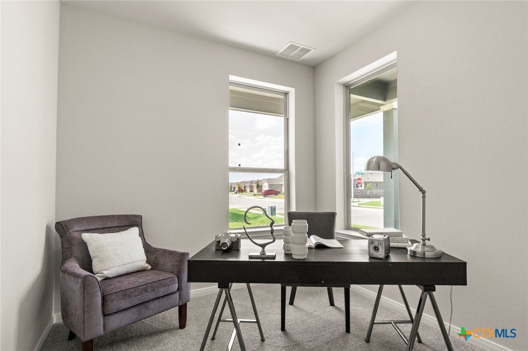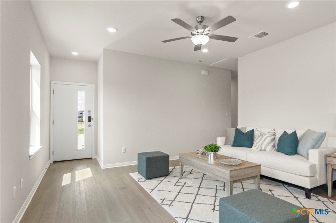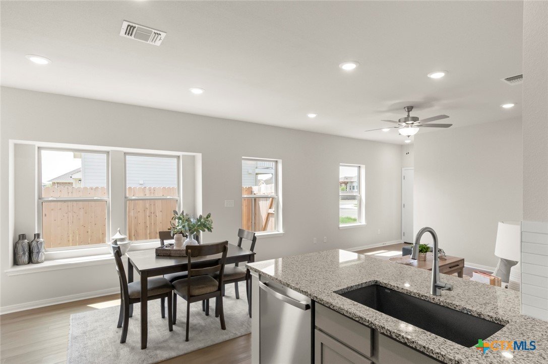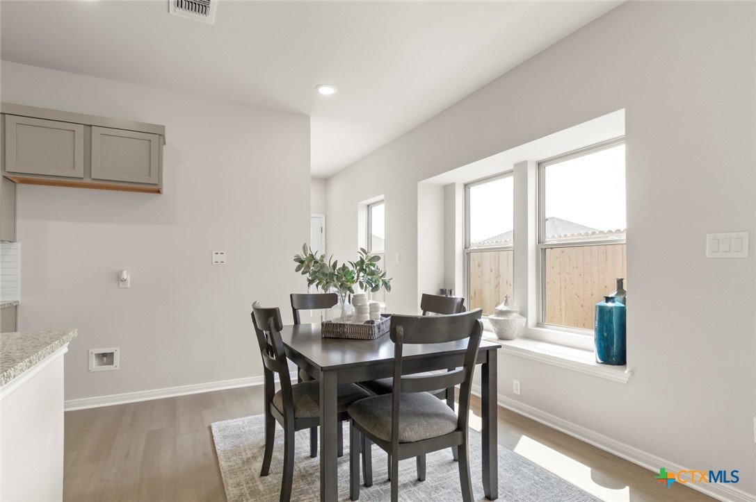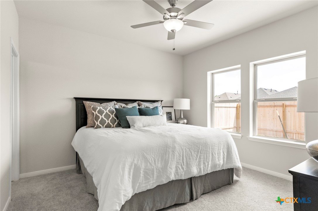 MLS 600127 - Built by Pacesetter Homes - Ready Now! ~ Discover modern living in this beautifully crafted single-family residence located in the desirable Blanco Vista Heritage Point subdivision. This newly completed home, built in 2025, encompasses 1,171 square feet of thoughtfully designed space, featuring three spacious bedrooms.With two full bathrooms, the home offers a double vanity in the primary suite, perfect for busy mornings. The open floorplan seamlessly integrates the living and dining areas, creating a warm and inviting atmosphere. Enjoy the convenience of modern amenities with dedicated hookups for both a washer and dryer, as well as a pantry for all your storage needs. The interior is enhanced by ceiling fans in both the primary bedroom and living room, and plush carpeting, offering a cozy yet stylish environment.Step outside to a private yard, beautifully landscaped, featuring a 10x10 patio! The home is equipped with central heating and cooling systems, ensuring comfort throughout the seasons.Located within the esteemed Hays CISD, this property is in close proximity to Blanco Vista Elementary, Laura B Wallace Middle School, and Jack C Hays High School. This residence is ready for you to make it your own!