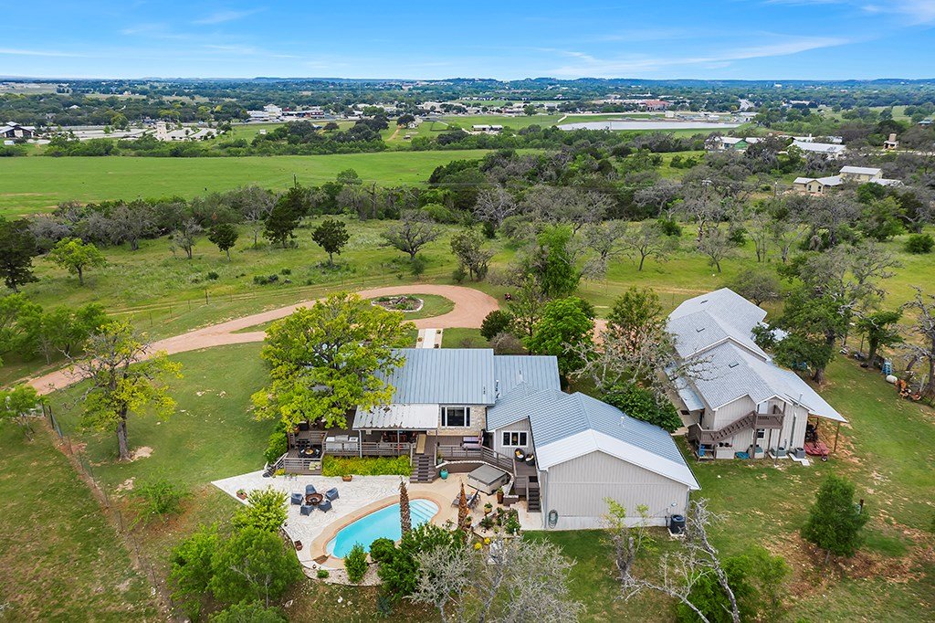 Nestled in the hills, directly on the eastern edge of the city of Fredericksburg and at the gateway to the 290 wine corridor, is an outstanding homestead and/or commercial opportunity set on 17-plus acres with incredible views over the town and surrounding Hill Country. The 4 bed/4bath home is an ideal family compound with a newly added primary suite w. oversized closets & beautiful spacious bathroom plus a 2nd primary suite for multi-generation living, a remodeled kitchen within a convenient and easy flowing living space, office or study to work from home, along with pool, hot tub & barbecue areas - all perfect for entertaining. The 3 car garage provides plenty of space for vehicles and added storage. Maintain on-site fitness with the private workout room which is adjacent to a large versatile workshop for any type of project. A new owner could also capitalize on the booming wine industry in the area by developing a vineyard, or make use of the expansive land & prime location for any tourism-related businesses. The picturesque setting & wide open space are perfect for weddings, corporate retreats or other events. This exceptional, diversified property offers endless possibilities.
