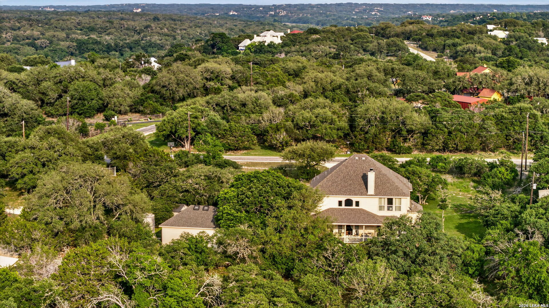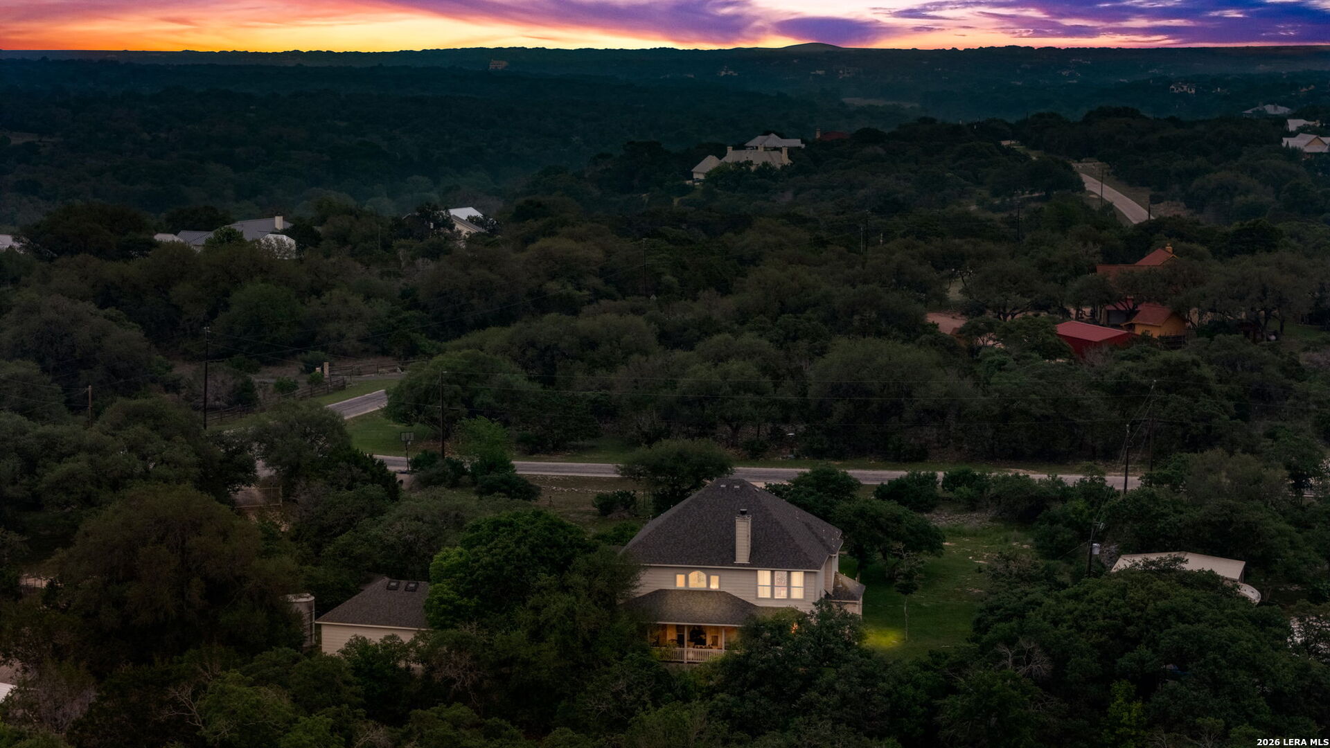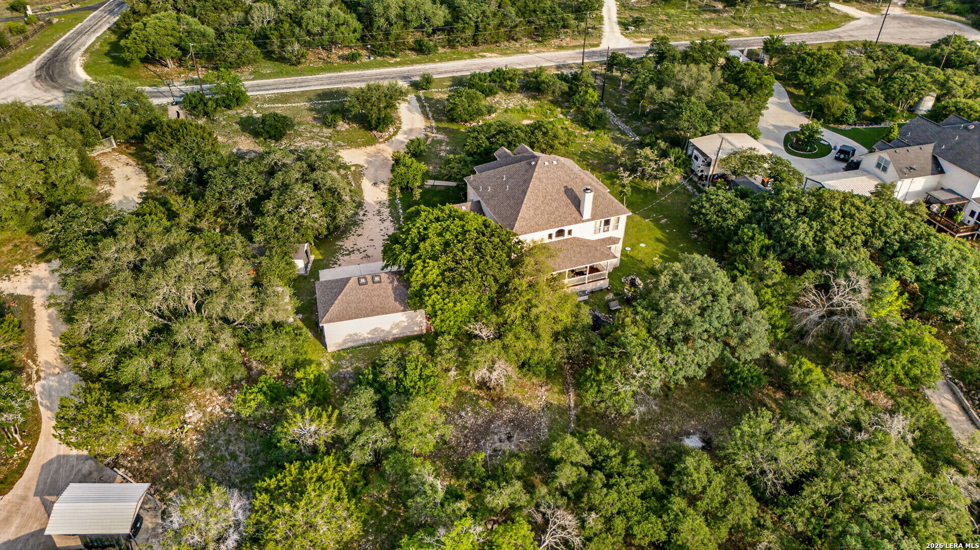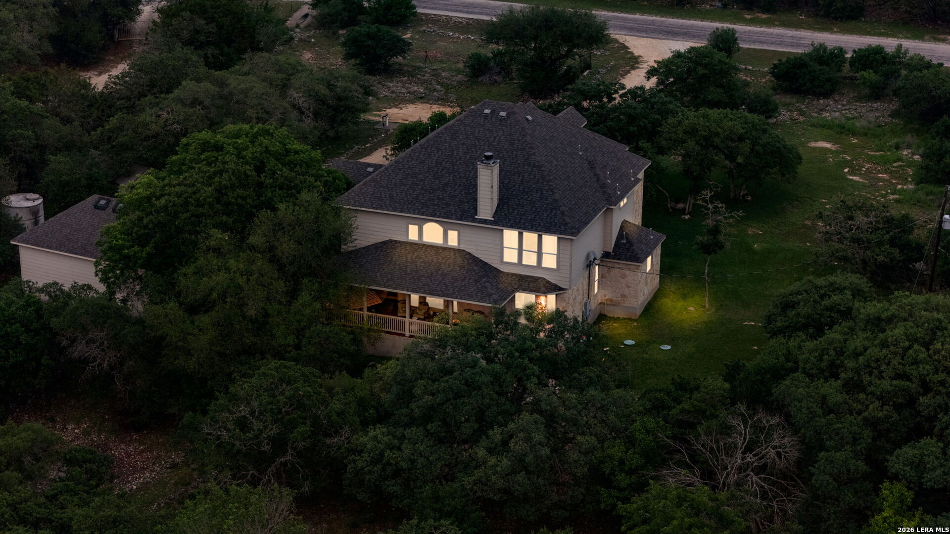 Your own piece of Texas Hill Country awaits. Set on 3.04 scenic acres along Spring Creek, this expansive 3,996 sq ft property offers the perfect blend of comfort, space, and outdoor enjoyment ideal for cooling off and relaxing during the hot summer months. The property is enhanced by mature trees throughout, providing natural beauty, shade, and added privacy. Inside, you'll find 4 spacious bedrooms and 3.5 baths, along with a thoughtfully designed layout that includes a formal dining room, dedicated living room with a cozy fireplace, and a generous family room. Entertainment is effortless with a game room and a fully equipped media room, while a formal study/office provides a quiet space for work or reading. The private primary suite offers a peaceful retreat, complete with direct access to the back patio perfect for enjoying quiet mornings or unwinding in the evening. The primary bath features a walk-in shower, a soaking tub for relaxing, and separate vanities. The home also features a 3-car garage, a private well, and a storage shed for added convenience. Step outside to enjoy the front balcony or relax on the back patio, both offering breathtaking Hill Country views. Residents also enjoy access to a community amenity featuring three parks along the Guadalupe River perfect for summertime tubing and making the most of the Texas heat. This property delivers privacy, functionality, and classic Texas charm all in one exceptional package. Schedule your showing today!