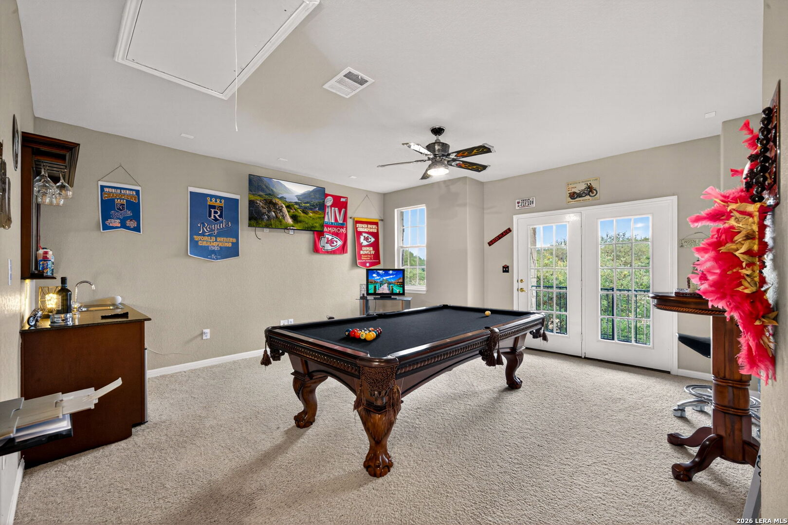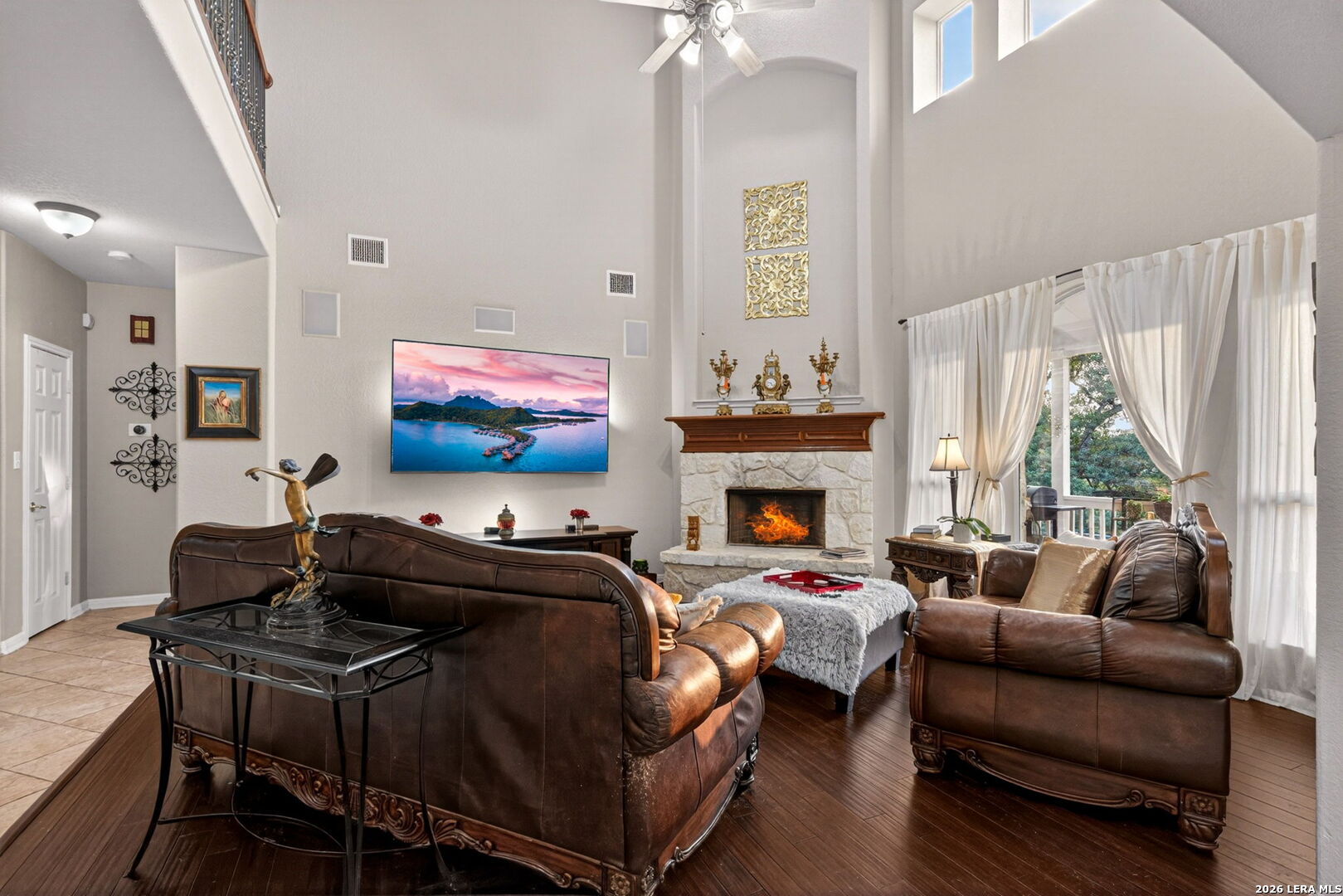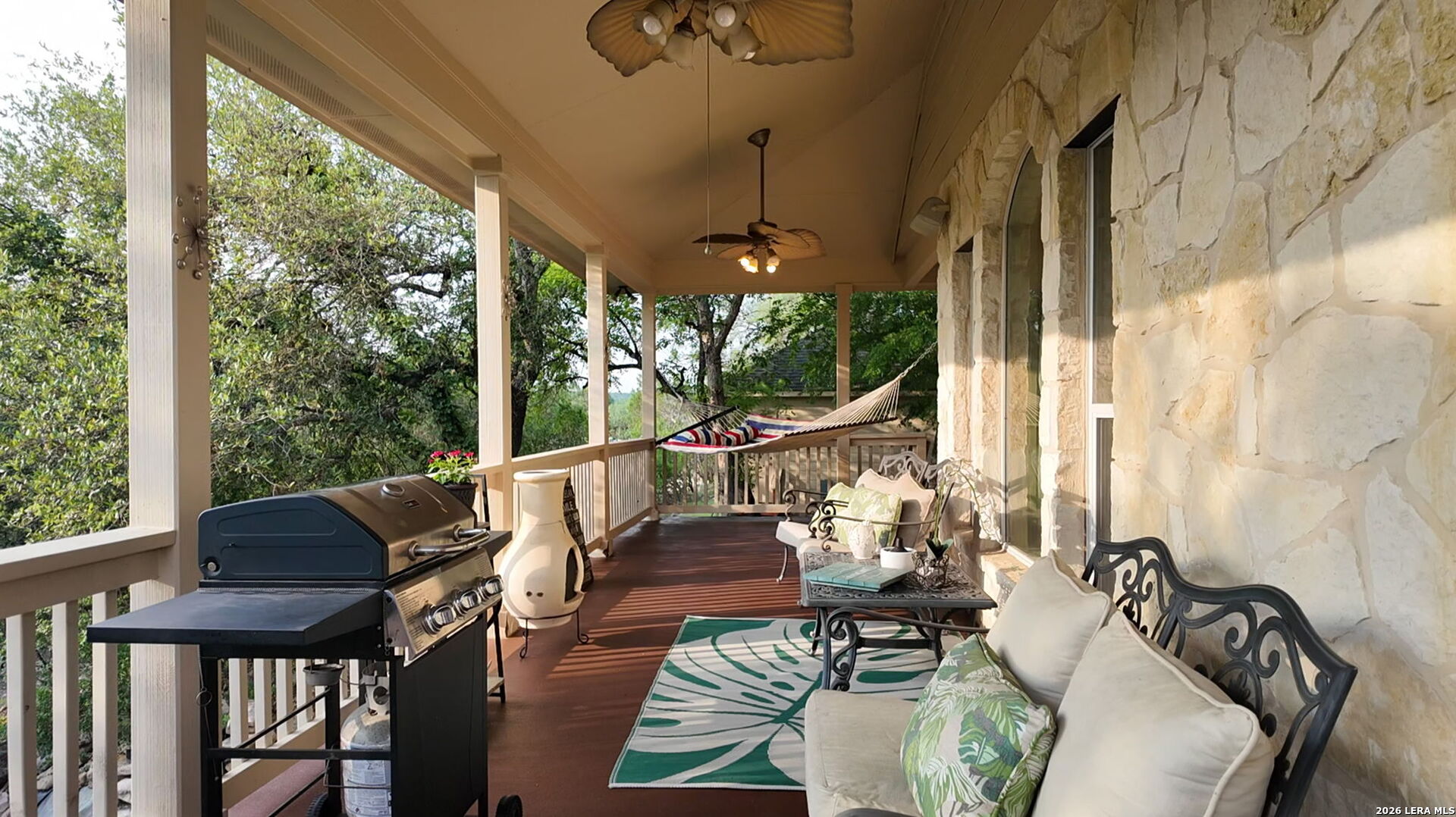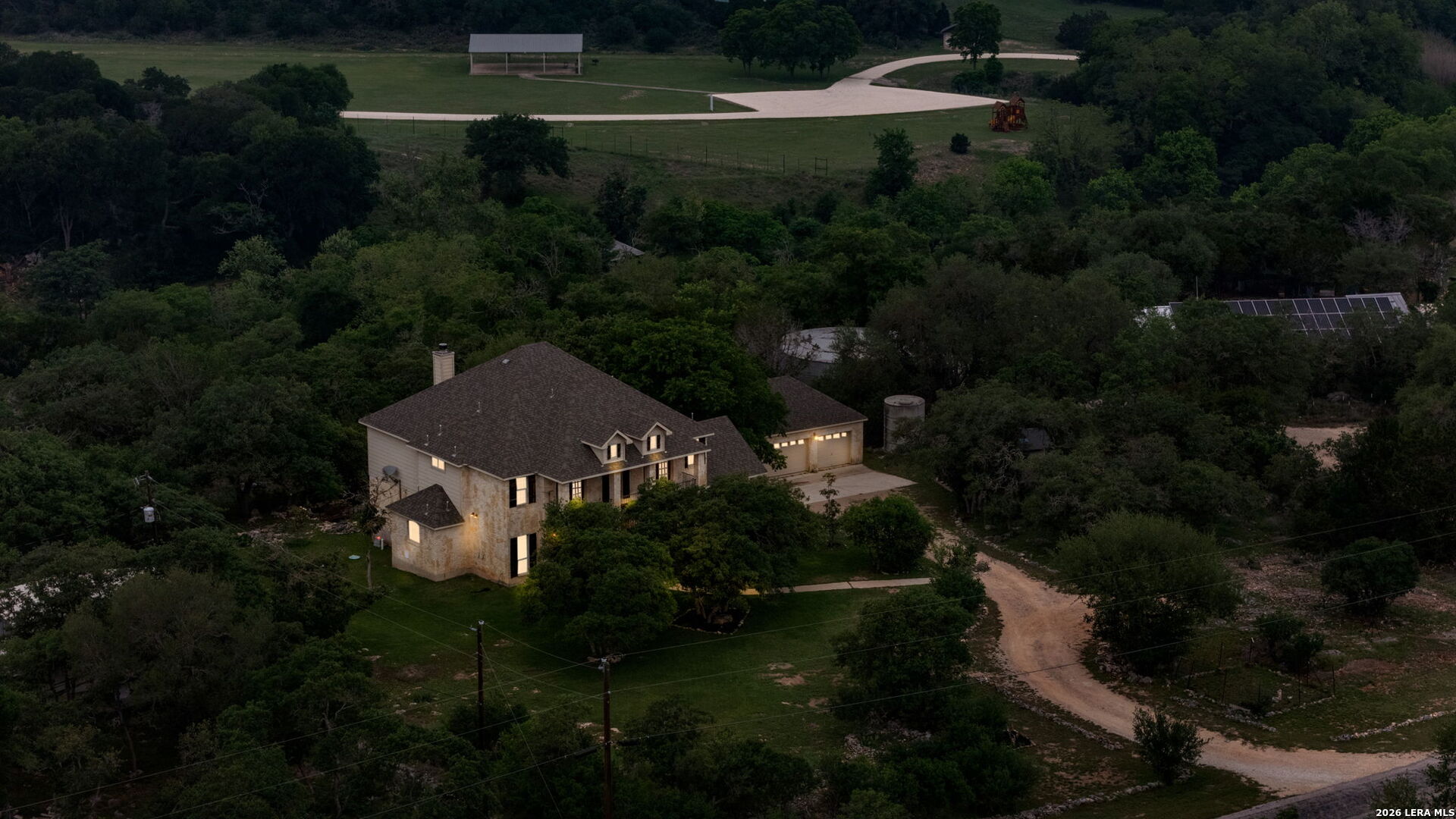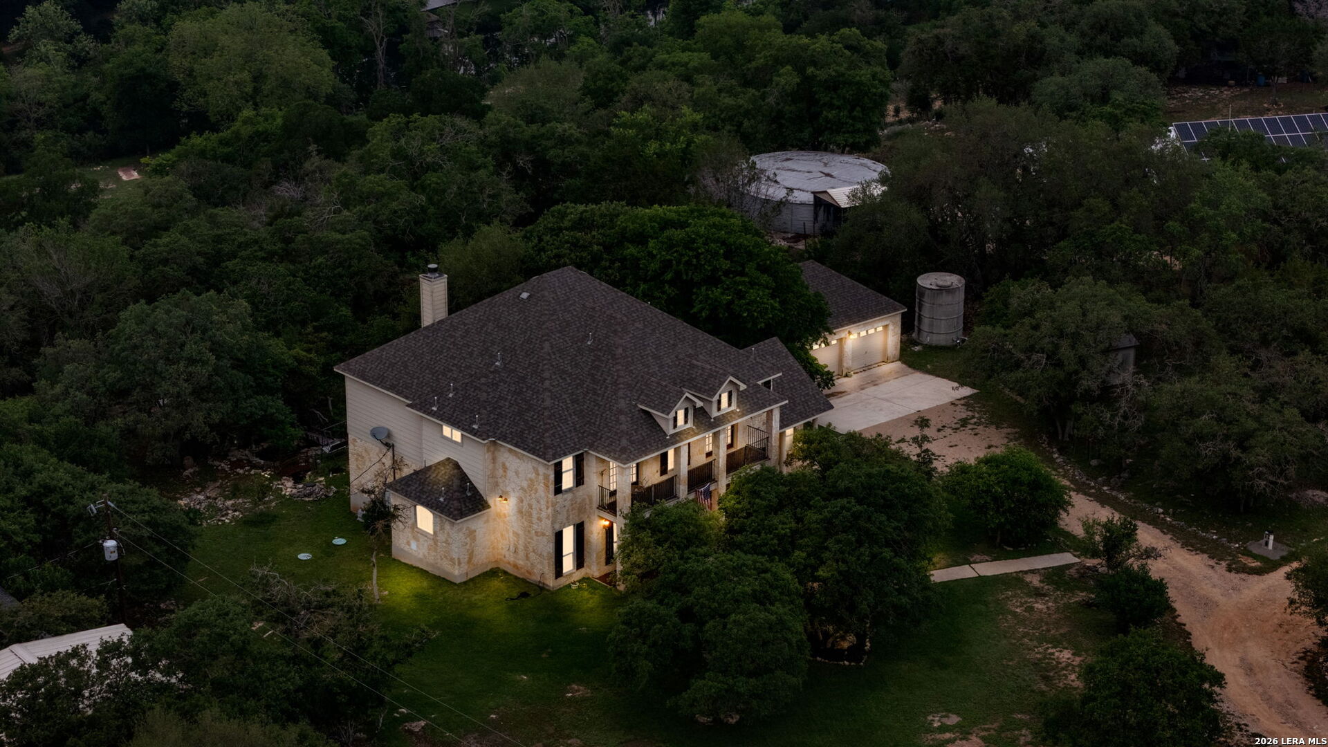 Your own piece of Texas Hill Country awaits. Set on 3.04 scenic acres along Spring Creek, this expansive 3,996 sq ft property offers the perfect blend of comfort, space, and outdoor enjoyment ideal for cooling off and relaxing during the hot summer months. The property is enhanced by mature trees throughout, providing natural beauty, shade, and added privacy. Inside, you'll find 4 spacious bedrooms and 3.5 baths, along with a thoughtfully designed layout that includes a formal dining room, dedicated living room with a cozy fireplace, and a generous family room. Entertainment is effortless with a game room and a fully equipped media room, while a formal study/office provides a quiet space for work or reading. The private primary suite offers a peaceful retreat, complete with direct access to the back patio perfect for enjoying quiet mornings or unwinding in the evening. The primary bath features a walk-in shower, a soaking tub for relaxing, and separate vanities. The home also features a 3-car garage, a private well, and a storage shed for added convenience. Step outside to enjoy the front balcony or relax on the back patio, both offering breathtaking Hill Country views. Residents also enjoy access to a community amenity featuring three parks along the Guadalupe River perfect for summertime tubing and making the most of the Texas heat. This property delivers privacy, functionality, and classic Texas charm all in one exceptional package. Schedule your showing today!