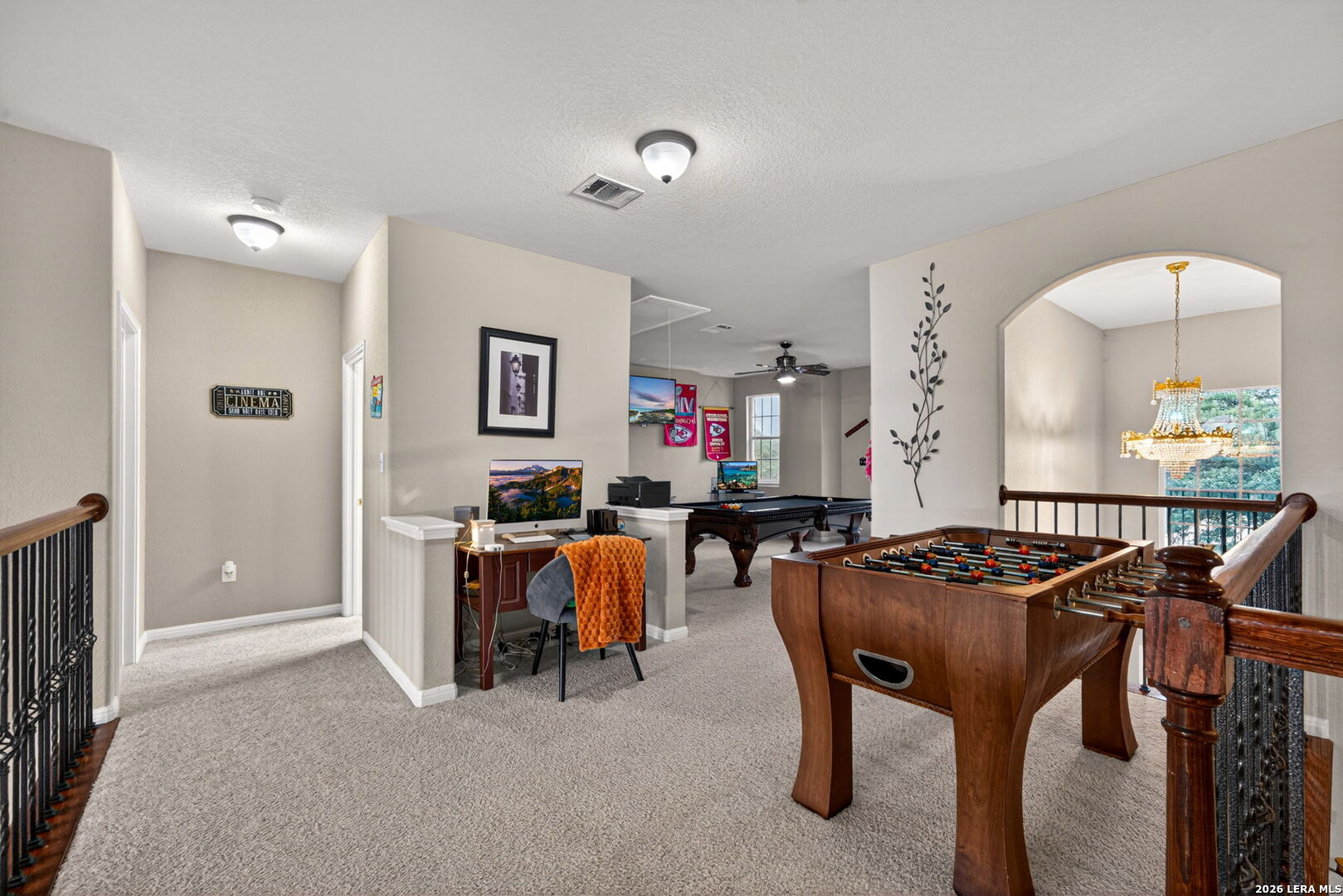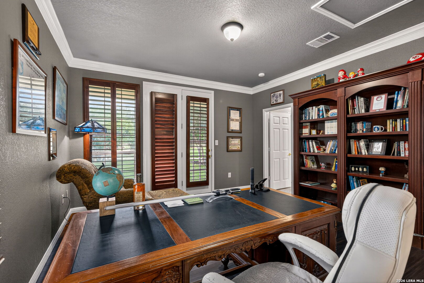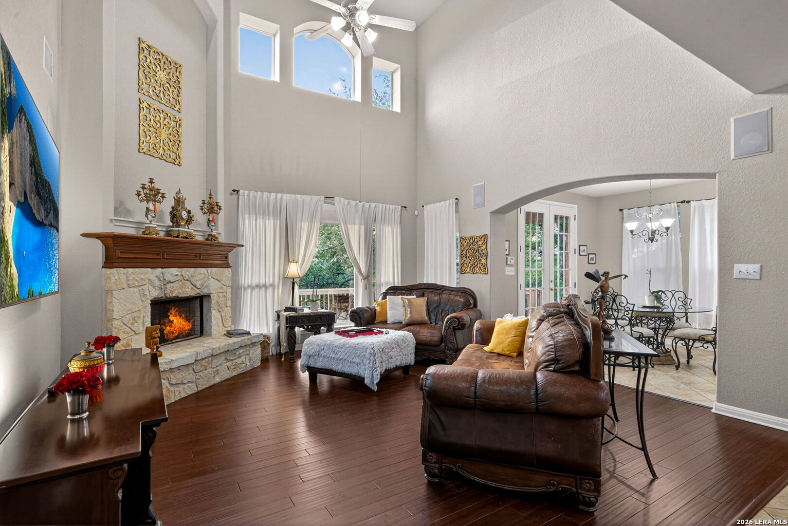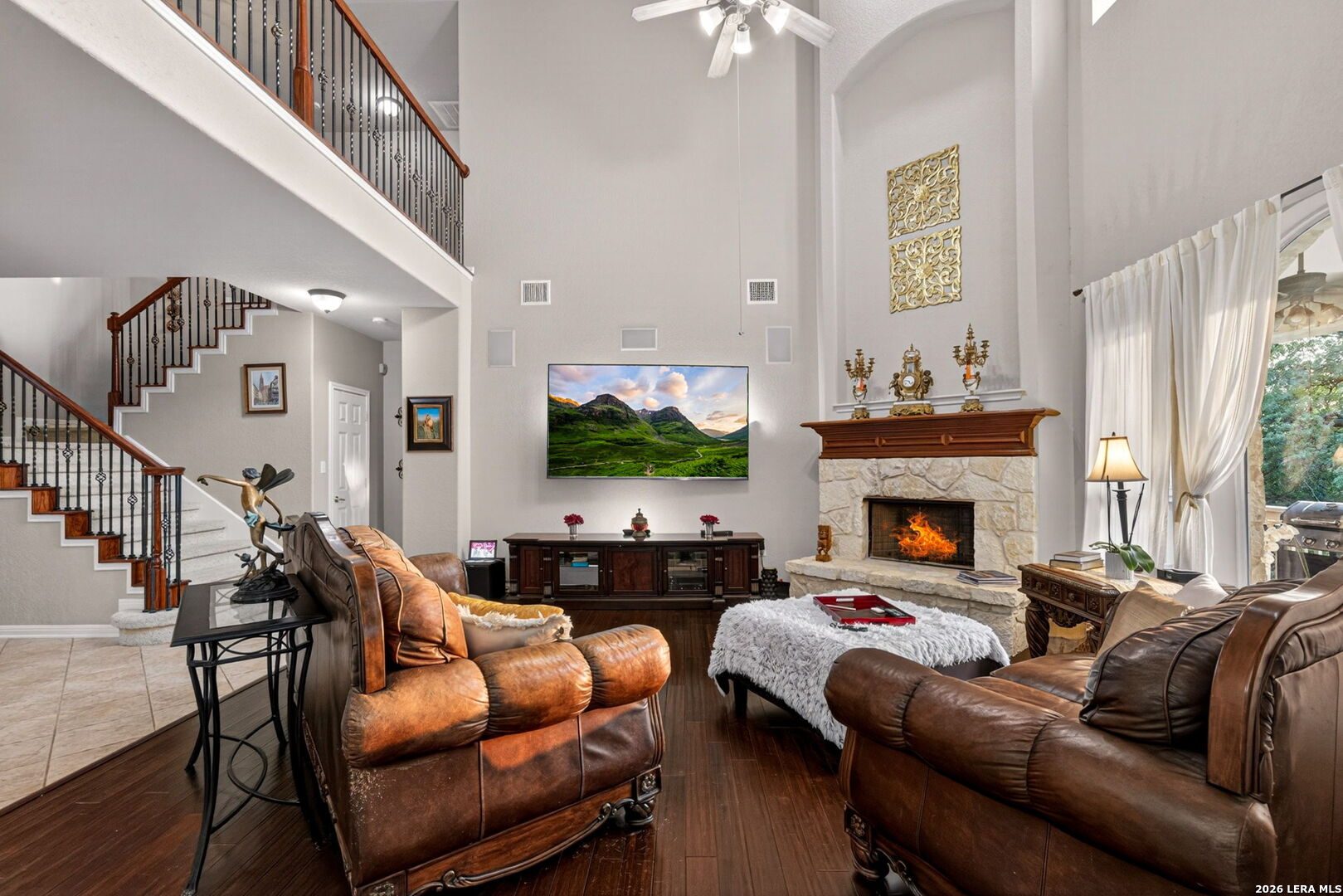 Your own piece of Texas Hill Country awaits. Set on 3.04 scenic acres along Spring Creek, this expansive 3,996 sq ft property offers the perfect blend of comfort, space, and outdoor enjoyment ideal for cooling off and relaxing during the hot summer months. The property is enhanced by mature trees throughout, providing natural beauty, shade, and added privacy. Inside, you'll find 4 spacious bedrooms and 3.5 baths, along with a thoughtfully designed layout that includes a formal dining room, dedicated living room with a cozy fireplace, and a generous family room. Entertainment is effortless with a game room and a fully equipped media room, while a formal study/office provides a quiet space for work or reading. The private primary suite offers a peaceful retreat, complete with direct access to the back patio perfect for enjoying quiet mornings or unwinding in the evening. The primary bath features a walk-in shower, a soaking tub for relaxing, and separate vanities. The home also features a 3-car garage, a private well, and a storage shed for added convenience. Step outside to enjoy the front balcony or relax on the back patio, both offering breathtaking Hill Country views. Residents also enjoy access to a community amenity featuring three parks along the Guadalupe River perfect for summertime tubing and making the most of the Texas heat. This property delivers privacy, functionality, and classic Texas charm all in one exceptional package. Schedule your showing today!