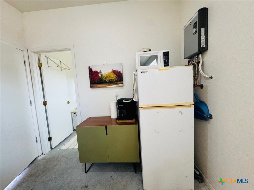 Welcome to this stunning 4-bedroom, 3-bath metal home nestled on over 5 acres just outside the city limits. Designed with comfort and functionality in mind, this all-electric home offers an open-concept layout filled with natural light and a warm, inviting feel. The chef’s kitchen boasts abundant cabinets with soft-close drawers, a long solid furniture-grade wood bar, and ample counter space. A striking 15-foot copper metal ceiling connects the kitchen and den, where large windows frame peaceful views and the den's electric fireplace creates the perfect spot to unwind. The split-bedroom design offers privacy and versatility. Two bedrooms share a spacious bathroom with a walk-in shower and single-sink vanity, while the primary suite on the opposite side feels like a true retreat, complete with large windows overlooking deer-friendly views. The primary bathroom features a generous wheelchair-accessible shower and convenient access to the laundry room. Polished concrete floors throughout provide a modern, low-maintenance finish. Attached under the same roof, a double carport leads to an additional 300-square-foot living space, creating a 4th bedroom with its own bathroom. The living space features a walk-in shower, mini split unit, and on-demand water heater—perfect for guests, homeschooling, or extra privacy. Outside, a 6-foot-wide sidewalk wraps around one side of the home for easy yard access. The backyard offers a serene escape where you can relax to the sound of birds or watch deer roam, while the front of the property is tucked behind a row of trees for added seclusion. Blending thoughtful design with country charm, this total 1800-square-foot home is truly a must-see!