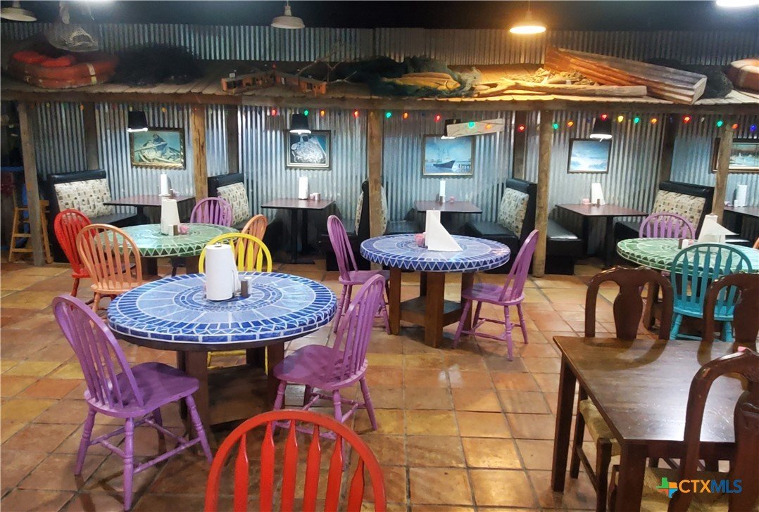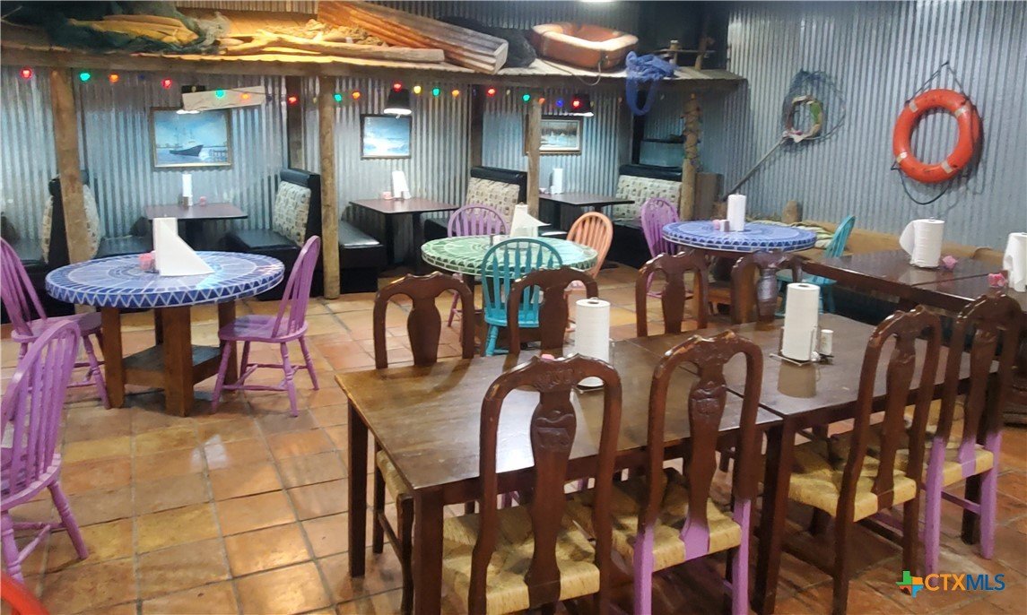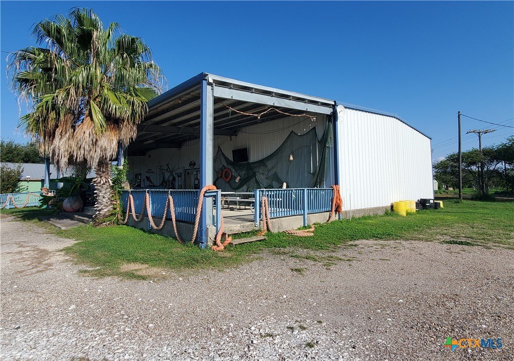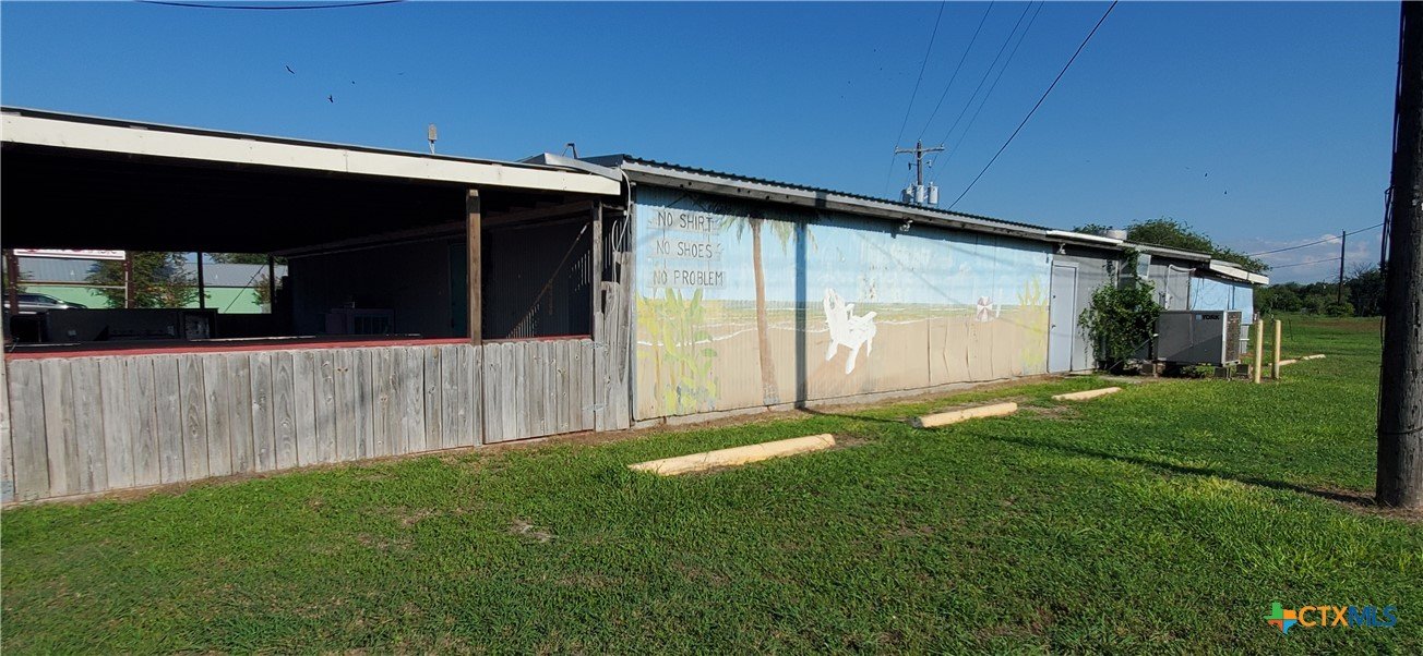 Subject has 225' paved road frontage & is currently a "working" restaurant (The Shack) in high traffic area. Main unit is 2009 built all metal 3560sqft w/1600sqft covered porch/canopy on raised slab. New CHA in 2025. Coastal motif, Saltillo tile floors in dining area, booth & open seating areas. Includes appliances (gas), and most furnishings. This unit has "bar" setup on covered deck for outside entertainment. 3 restrooms, small office area, full kitchen. Second unit on site is frame/metal on slab, 1951 build (2473sqft) & front/rear covered canopy's (1544sqft). This structure has had "some" remodel thru the years, 2 restrooms, and is a tavern type interior setup, but has ONLY been used as storage this owner; with no known condition of current utilities status. All is being sold "AS IS" with no repairs or treatments by the Seller. No restrictions to use on either property. Both sites have city water/sewer/electric & gas (or access to it) on site. Survey, if required will be at Buyer's expense. No separate sales! No seller financing!