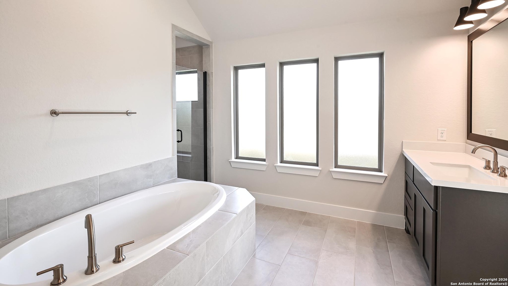 Extended entry with 13-foot ceiling leads to open kitchen, dining area and family room. Kitchen offers generous counter space, corner walk-in pantry, two wall ovens, a 5-burner gas cooktop and inviting island with built-in seating space. Dining area flows into family room with a wood mantel fireplace and wall of windows. Game room with French doors just across from kitchen. Primary suite includes double-door entry to primary bath with dual vanities, garden tub, separate glass-enclosed shower and two large walk-in closets. Secondary bedrooms feature walk-in closets. Extended covered backyard patio. Mud room off two-car garage.