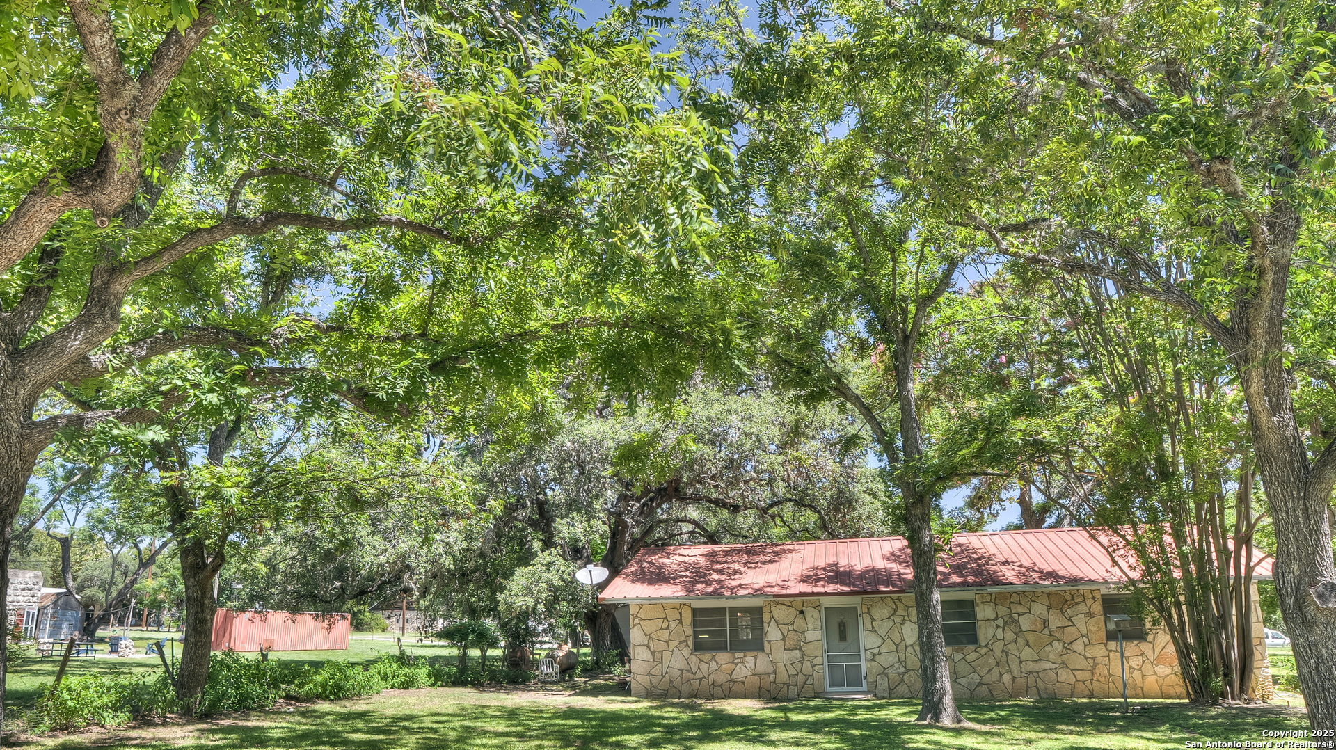 On a quiet street in downtown Leakey you will find this charming 4BR/2B rock home sitting under majestic Pecan Trees! In the front yard resides one of the largest Crape Myrtle trees you have probably ever seen. It is well over 100 years old and going strong! This home sits on two city lots spanning frontage on two streets, Third St and Main St. Lots of potential with two vintage shops fronting Third St. for either resale or remodel! The home, fronting Main St., has an open kitchen/living area and the bedrooms are good sized. One is a true master with its own bathroom. This home has good bones and ready for you to update and remodel as you see fit. There is also a metal shed behind the home and a private water well, perfect for watering the lawn. The library is within walking distance as well as the courthouse, bank, shopping and Leakey eateries. This property would make a great family home or a sweet Bed and Breakfast! $245,900.