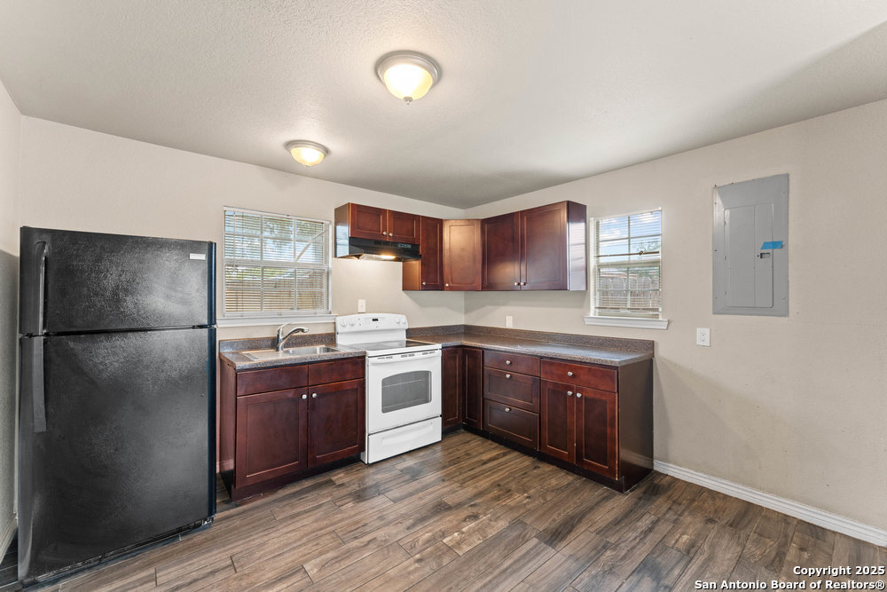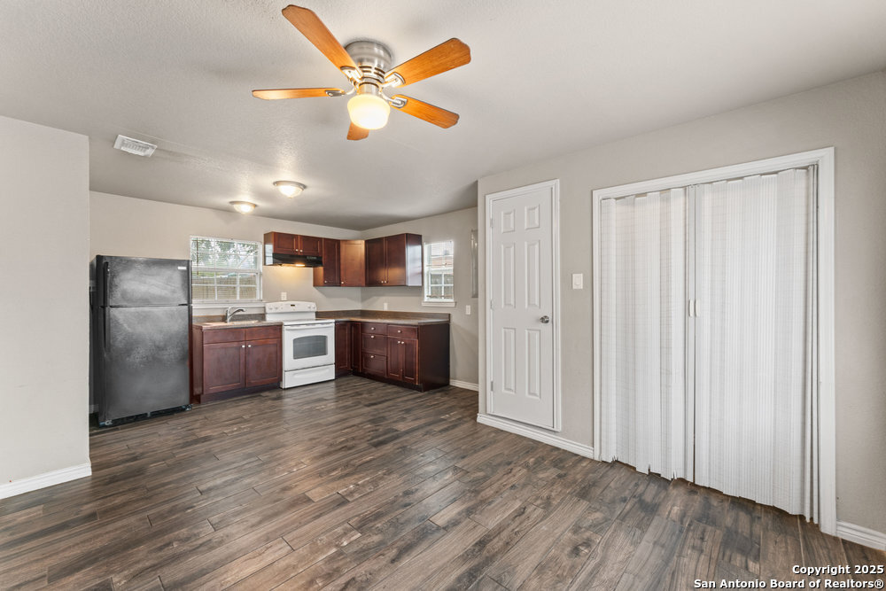 This home presents an impressive, open-concept floor plan characterized by a bright, spacious atmosphere. It is distinguished by its seamless flow and minimal restrictive interior walls. Easy-to-maintain hard-surface flooring is installed throughout, providing a modern, clean look and ensuring long-term simplicity of care. This design perfectly balances aesthetic appeal with practical, effortless living.
