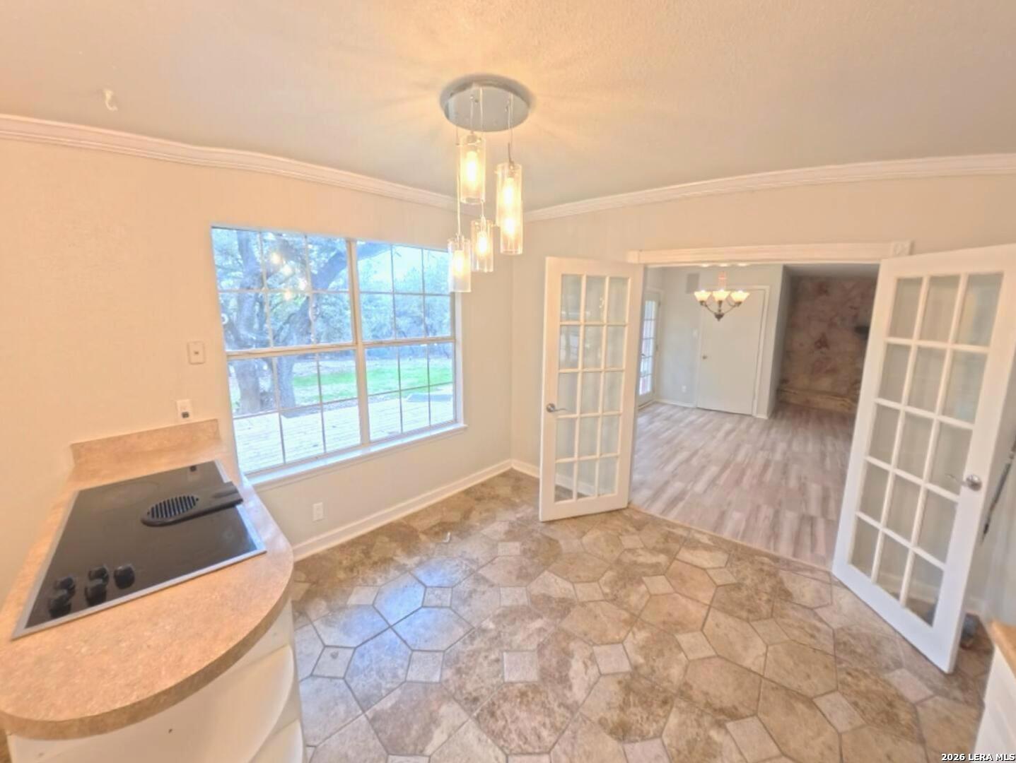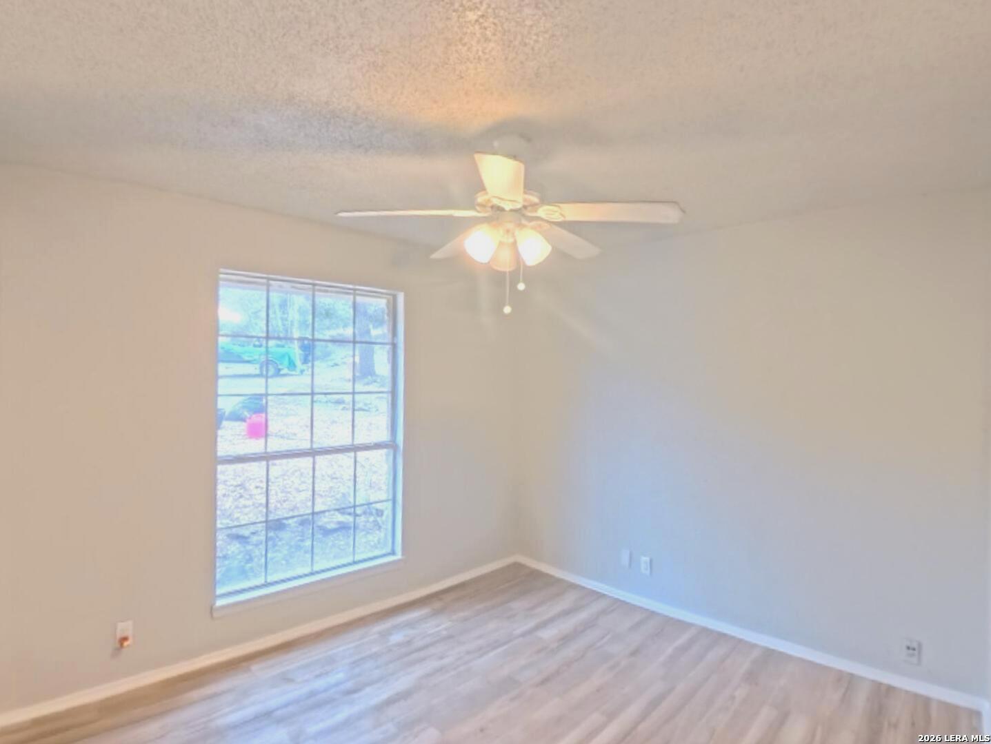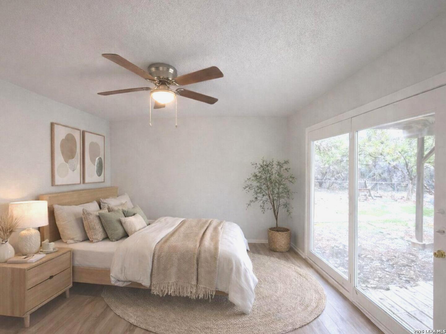Modern Elegance Meets Hill Country Serenity! Tucked away on a quiet street on nearly one acre, this property has been meticulously transformed into a contemporary masterpiece. The main home greets you with a fresh, neutral palette, new doors and hardware throughout, and a seamless flow of new wood laminate flooring. The Heart of the Home, the family room serves as a stunning focal point, featuring a one-of-a-kind, massive rock fireplace that spans nearly an entire wall. Large windows and French doors bathe the space in natural light, while in-wall and in-ceiling surround sound speakers make it ready for a true theater experience, just connect your AV receiver. The gourmet kitchen is a chef's dream, boasting all-new light fixtures and premium stainless steel appliances, including an oversized Kenmore Elite refrigerator, double GE Profile ovens, a KitchenAid island stove, and a new dishwasher. The Primary Retreat, the entire second floor is dedicated to an owner's suite designed for ultimate relaxation. The spa-like bathroom now features new granite countertops, a freestanding soaking tub, a standing shower, and double sinks. New French doors open directly to a private balcony overlooking the canopy of mature trees. Outdoor Living & Guest House- Entertaining is effortless with a brand-new downstairs deck and an expansive multi-level upper deck. Both the main house and the guest house have been freshly repainted on the exterior. The guest suite is a complete second living quarters, featuring a full kitchen, bedroom, and a bathroom with its own whirlpool tub, perfect for multi-generational living or a premium retreat. Enjoy independence and peace of mind with a private water well and a 10,000-gallon holding tank. The property also features a circular drive with plenty of parking for guests. Experience the Bulverde Lifestyle the "Front Porch of the Texas Hill Country." Open your doors to the sound of birds and peaceful tranquility while remaining minutes from Guadalupe River State Park and H-E-B. Families will benefit from top-tier Comal ISD schools, including the brand-new Bulverde Middle School and Smithson Valley High. Modern, private, and move-in ready!