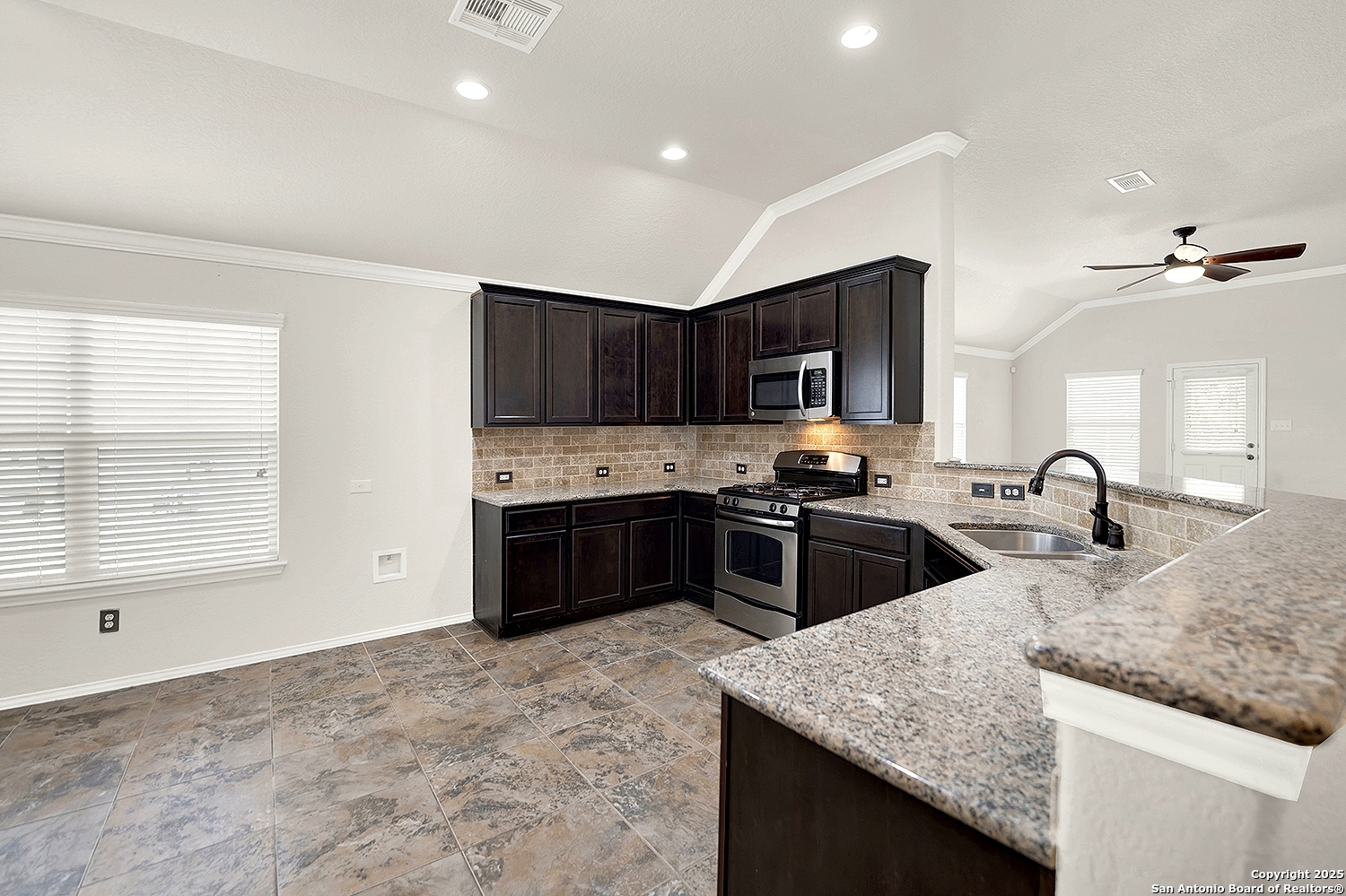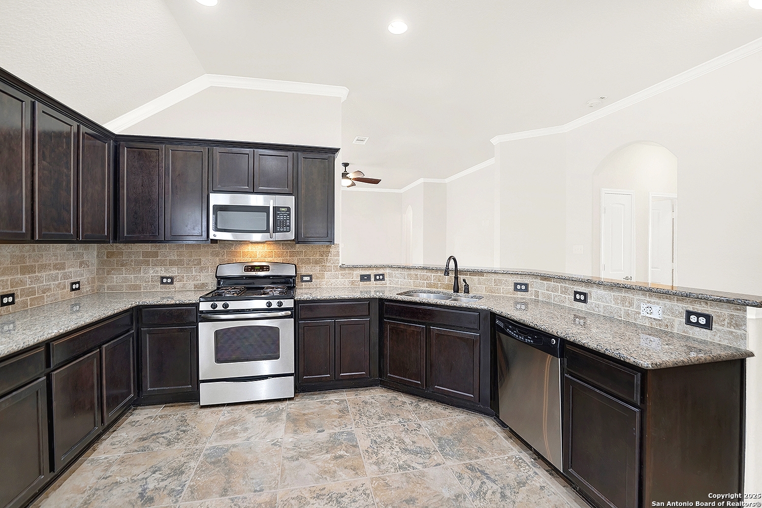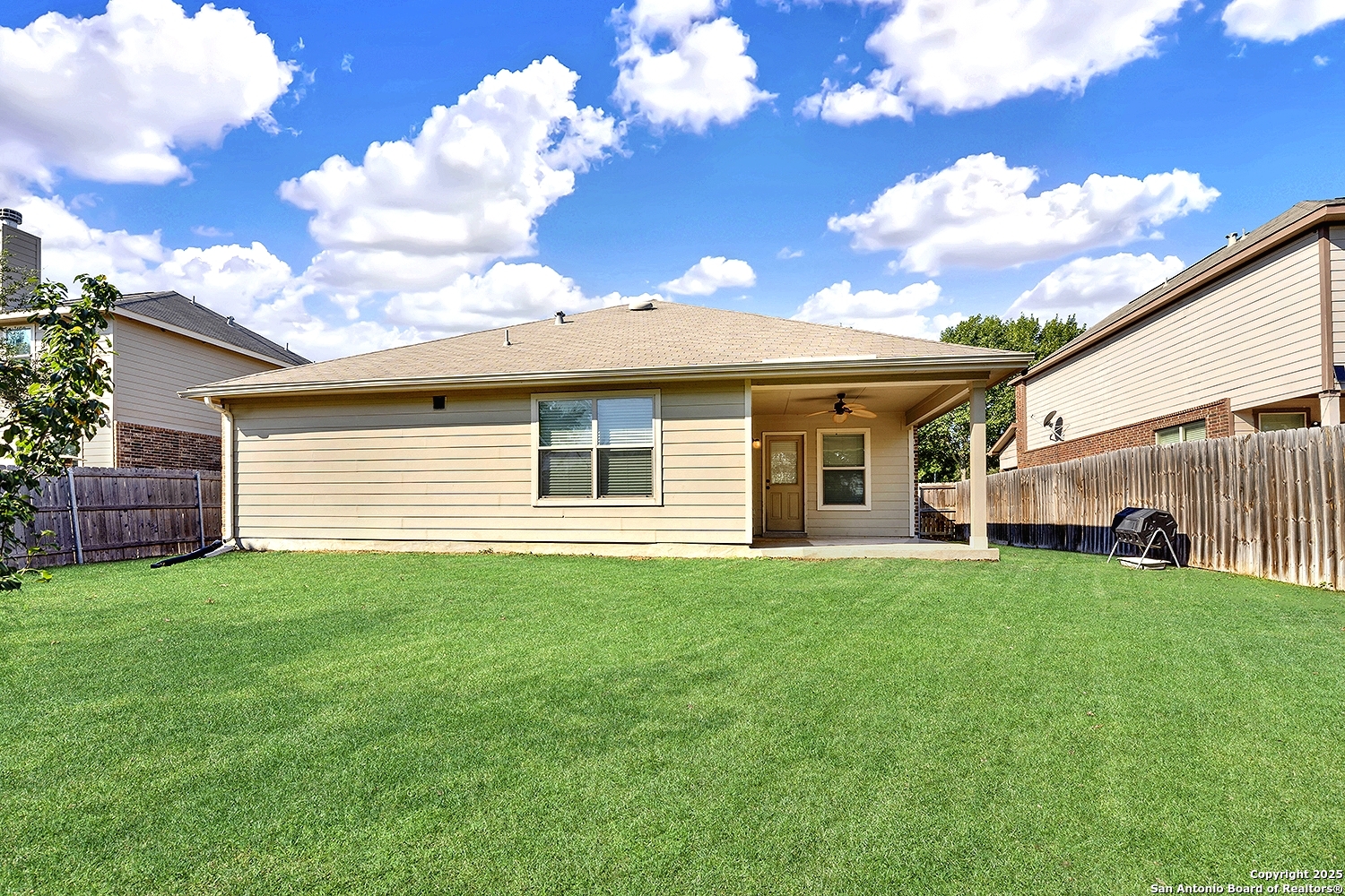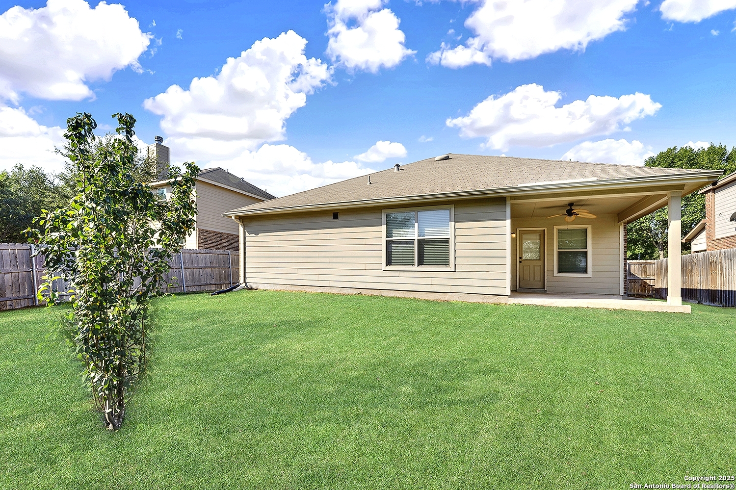 Distinctive Extravagance in the prestigious and quiet Country Setting community of Sedona in Schertz!! Thoughtfully crafted and meticulously maintained 1 Story Open Floor Plan Beautiful Size Backyard with no neighbors behind you * 1971 sq ft, 4 Bedrooms with 2 Bathrooms and a separate Dining Room * You'll enjoy spending time in the spacious Kitchen with impressive kitchen designed with every detail is complimented with Tile Backsplash, Lots of Kitchen Cabinet and Counter Spaces with Granite Counters and Stainless Steel Appliances * Owners Retreat with a wonderful size closet, spacious bathroom with Double Vanities, Separate Tub and Shower * This is truly a dream home for anyone wishing to live and entertain in a Peaceful Country atmosphere with a Community Pool, Sports Court, Play Ground, Club House, Community Park with walking and jogging trails * Ceiling Fans throughout, Sprinkler System, Custom Tile Floors * Don't miss the amazing attention to detail which can be seen as you move seamlessly from room to room * This home has it all! Conveniently located only about 10 minutes to Schertz/Cibolo Shopping, Restaurants and Randolph AFB * This home is perfectly positioned to capture the incredible views and enjoy the peaceful tranquility of Country Living, once you experience this hidden location of Texas, you'll never want to spend another evening away from these big, bright Texas stars! Best Value for a 1 Story with all of the Amenities this community has to offer!! Welcome to a home, you won't want to leave!!