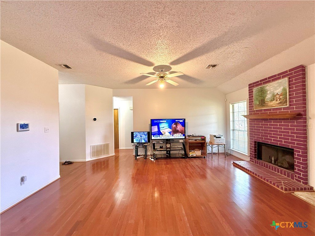 Welcome to this well-maintained 3 bedroom, 2 bath home with a split bedroom in desirable Hamlet subdivision. Featuring an open concept layout with high ceilings, the bright living space includes a brick fireplace that flows into the dining area, ideal for everyday living and entertaining. Wood flooring and large windows add warmth and natural light throughout. The kitchen offers ample cabinet storage and a functional design, while the primary suite includes a double vanity, separate shower, garden tub, and large walk in closet. With fresh paint throughout the interior, a newer roof, and a newer HVAC, this home leaves little to worry about for the new owner. Situated in a quiet, limited traffic cul de sac, this is an ideal location for privacy and\or a growing family.