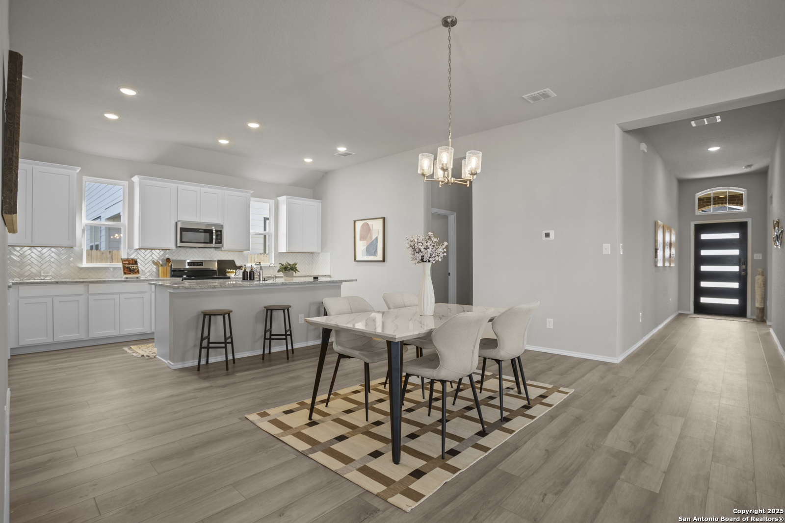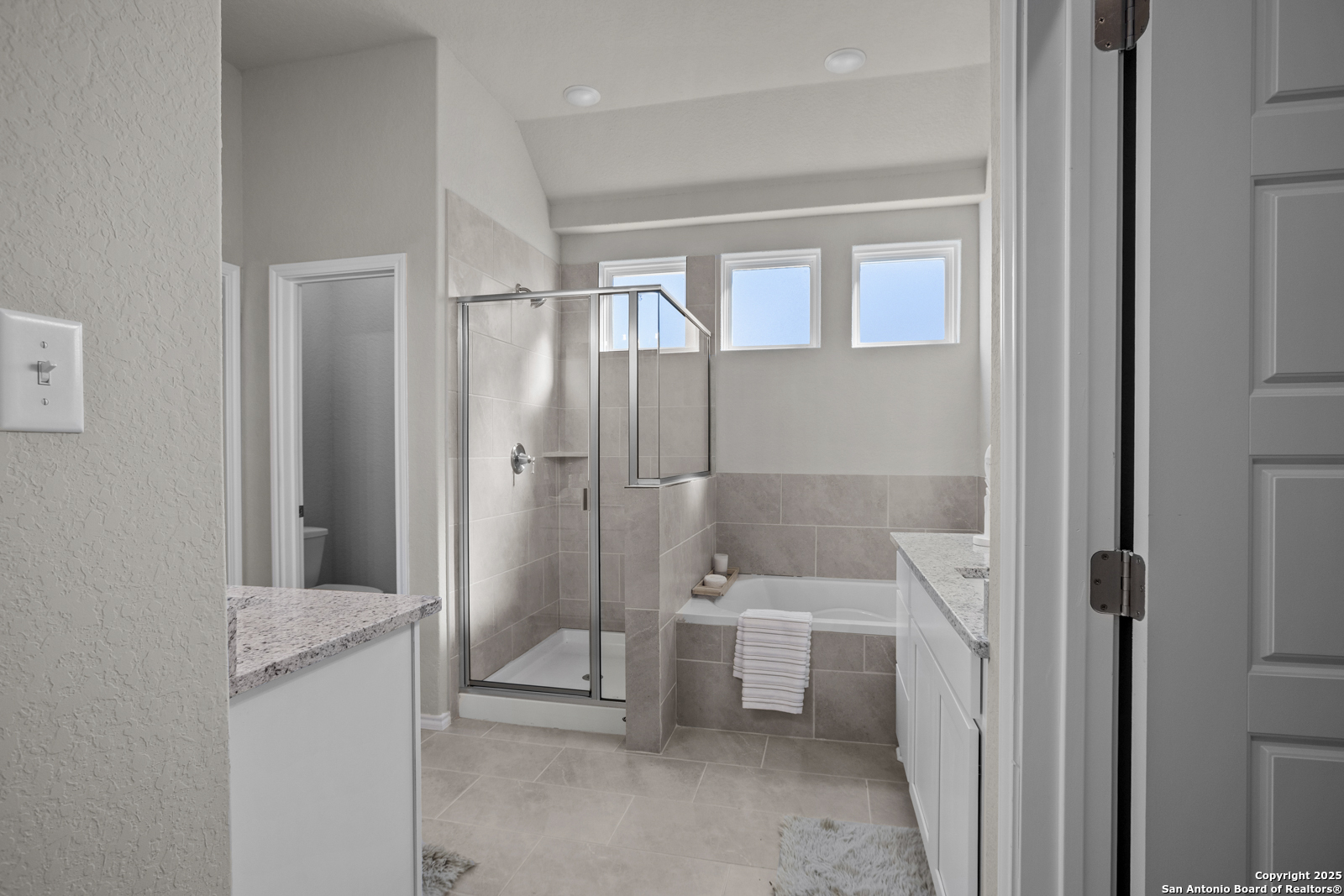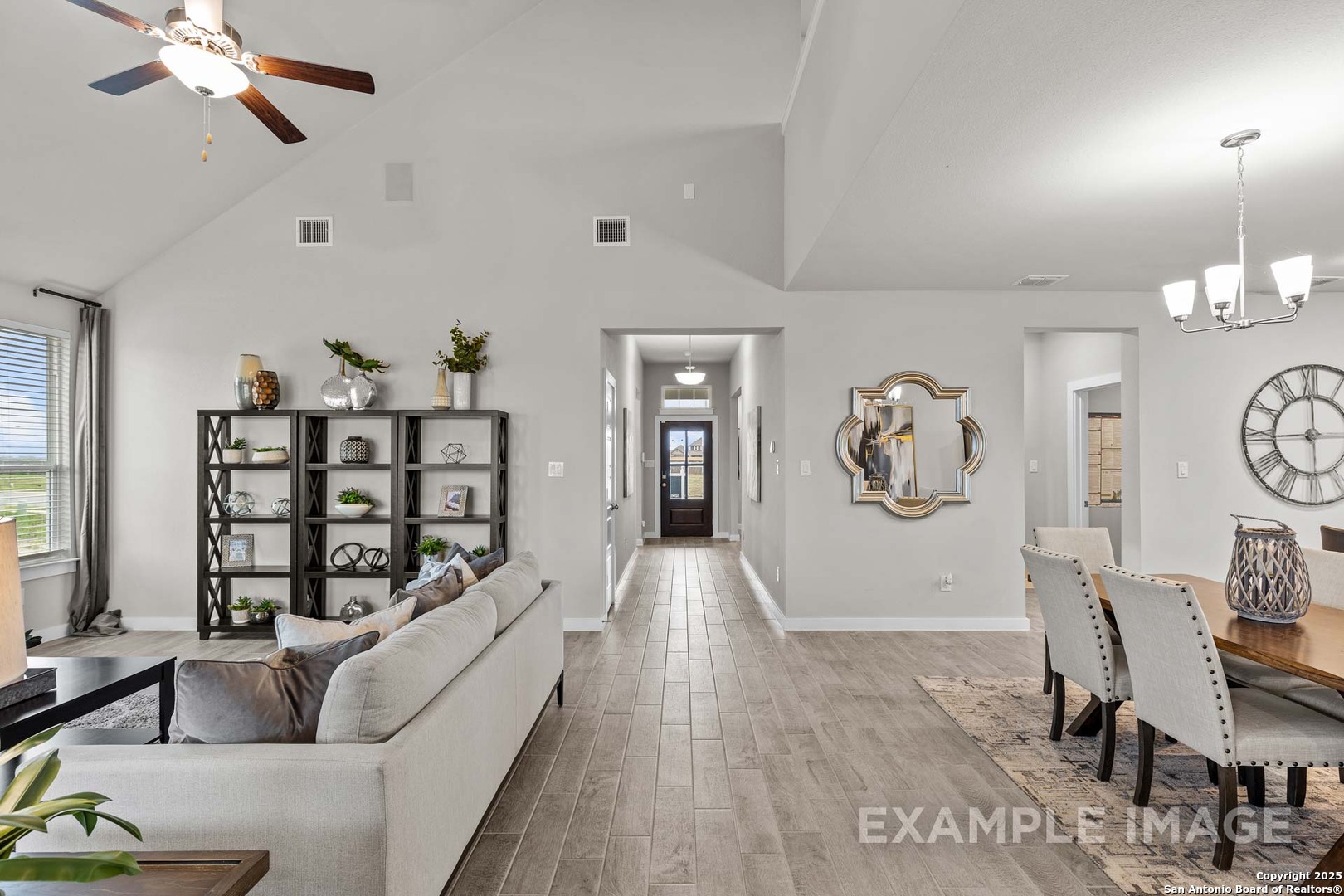 Welcome to The Collin! This beautiful home is built with stunning open-concept living in mind. The kitchen island anchors the space overlooking the dining and family rooms. Head outdoors and entertain guests on the covered back patio. After a long day, relax in the tranquil primary suite, complete with dual vanities, a luxurious shower, and two spacious walk-in closets, so no one has to compromise on space. Two secondary bedrooms share a full bath. Make it your own with The Collin's flexible floor plan. Please note: The 3D tour features an optional second floor. The listed home is the easy-living single-story version of this popular plan-designed for comfort and convenience.