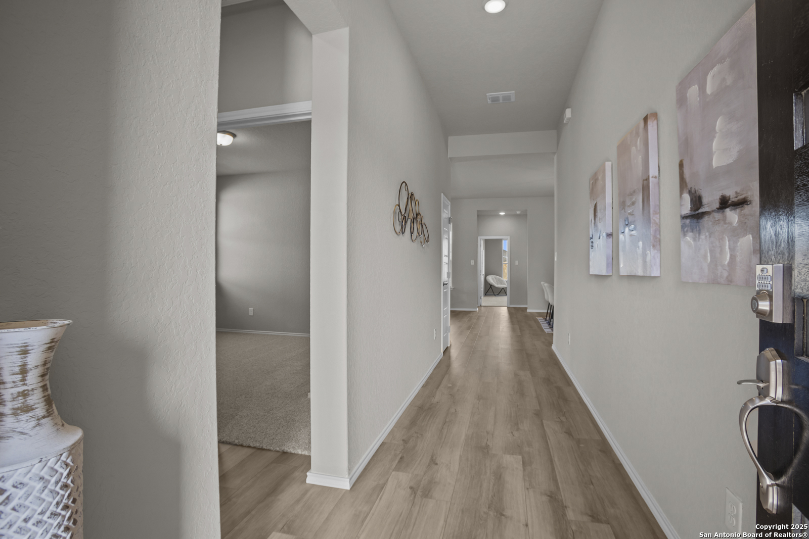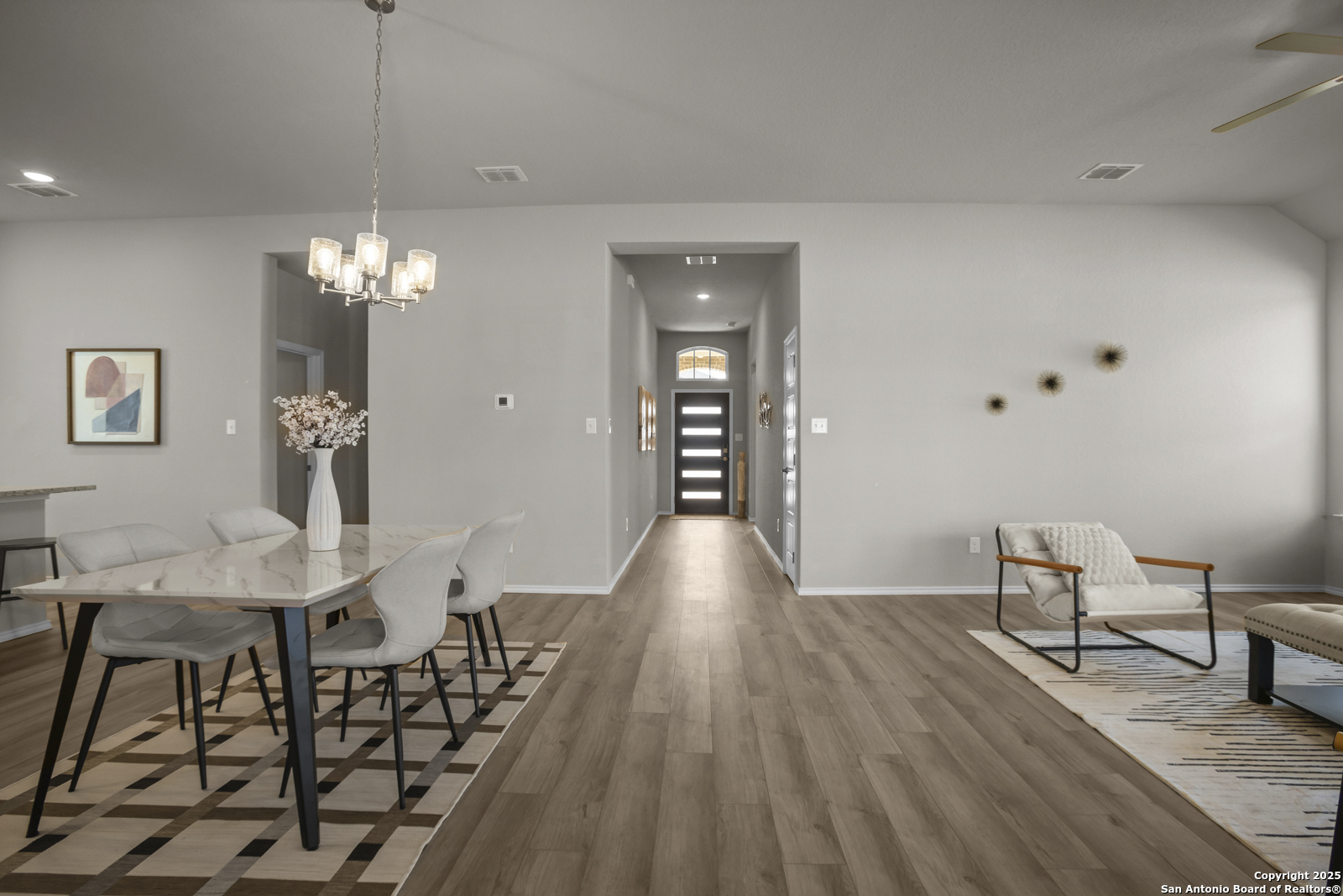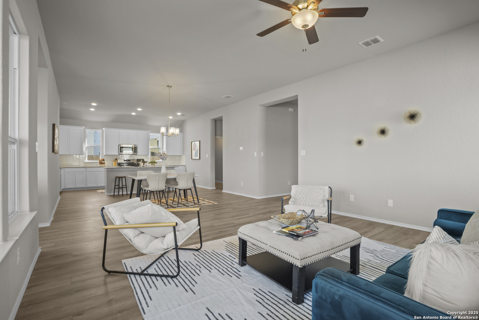 Welcome to The Collin! This beautiful home is built with stunning open-concept living in mind. The kitchen island anchors the space overlooking the dining and family rooms. Head outdoors and entertain guests on the covered back patio. After a long day, relax in the tranquil primary suite, complete with dual vanities, a luxurious shower, and two spacious walk-in closets, so no one has to compromise on space. Two secondary bedrooms share a full bath. Make it your own with The Collin's flexible floor plan. Please note: The 3D tour features an optional second floor. The listed home is the easy-living single-story version of this popular plan-designed for comfort and convenience.