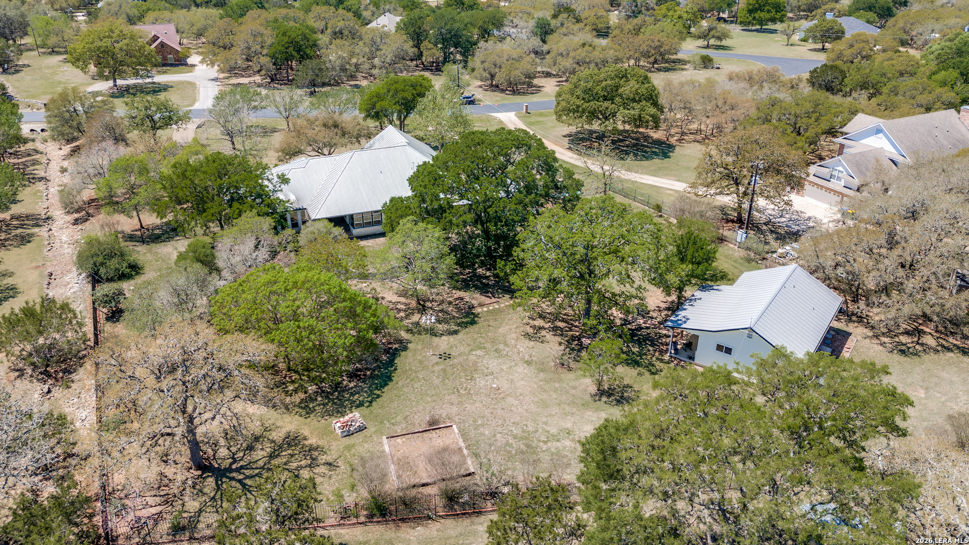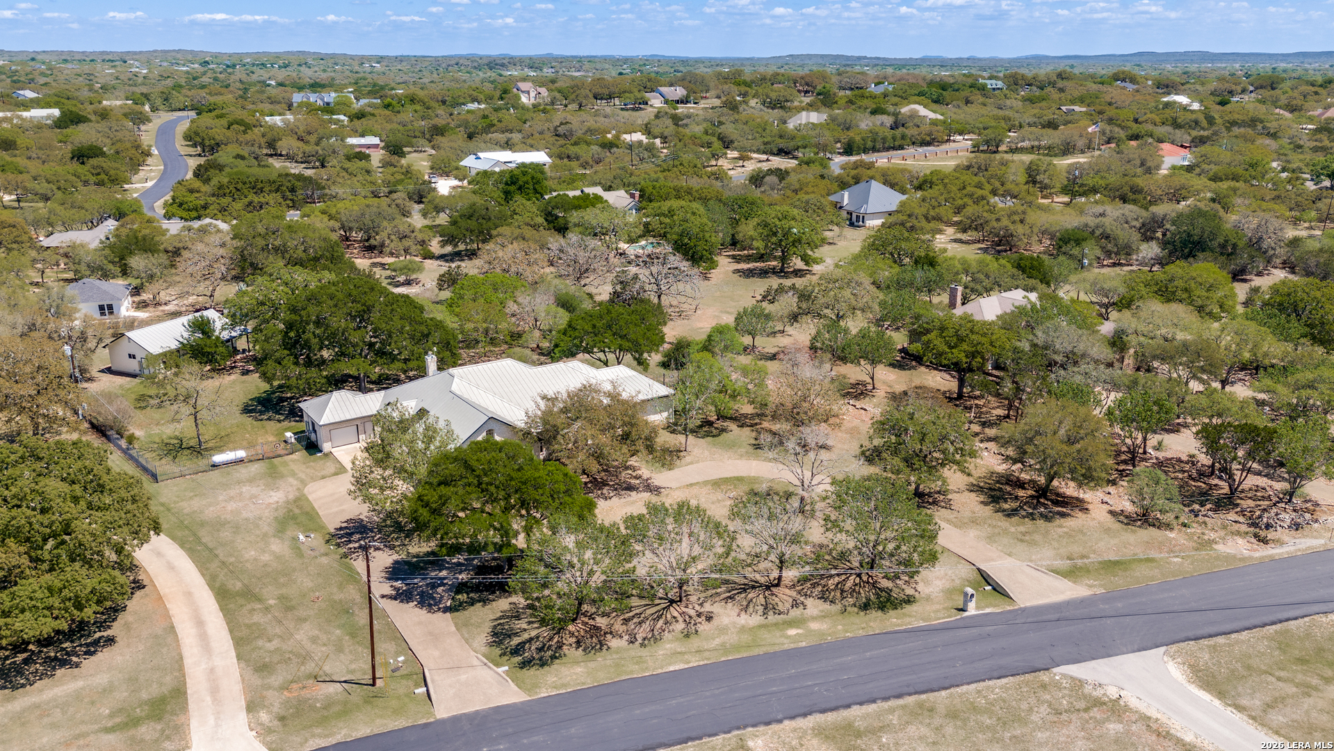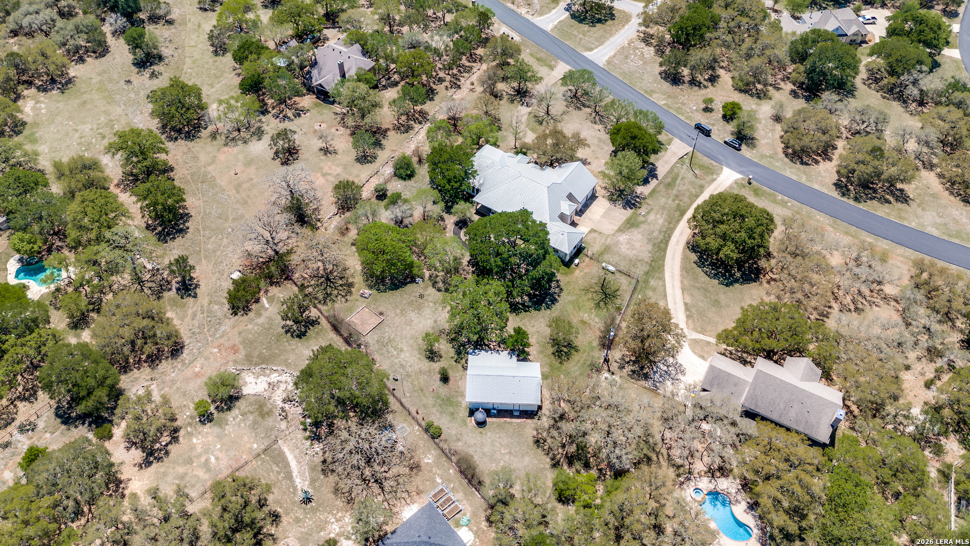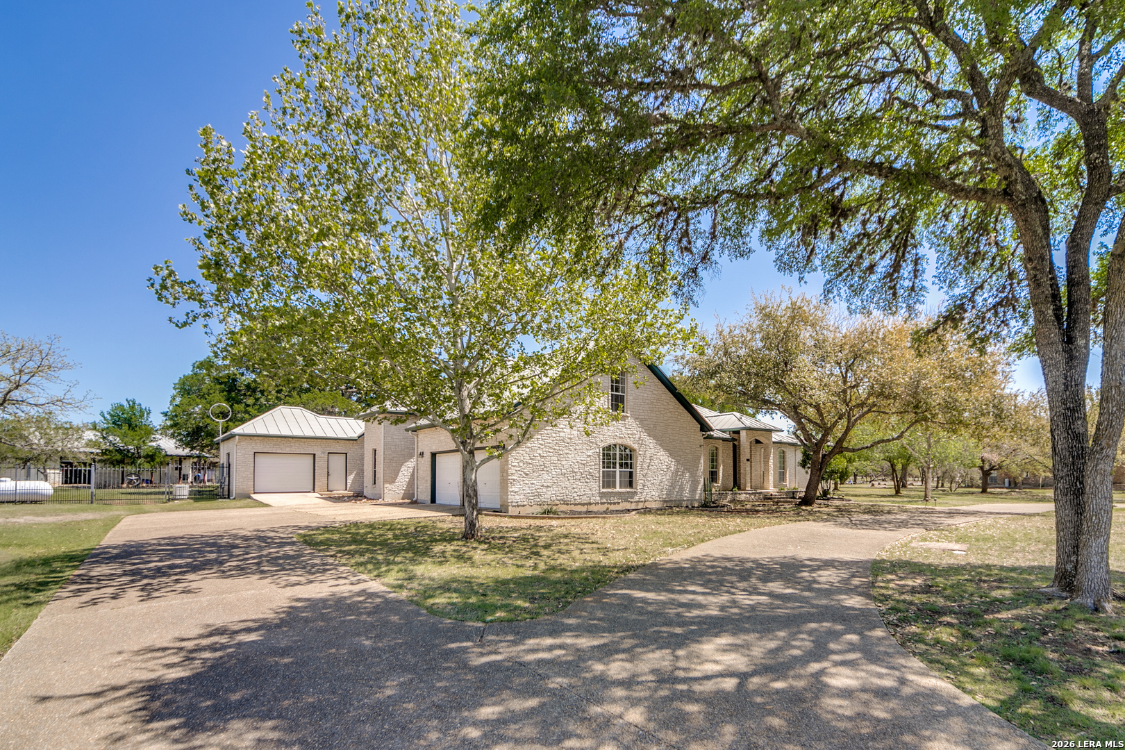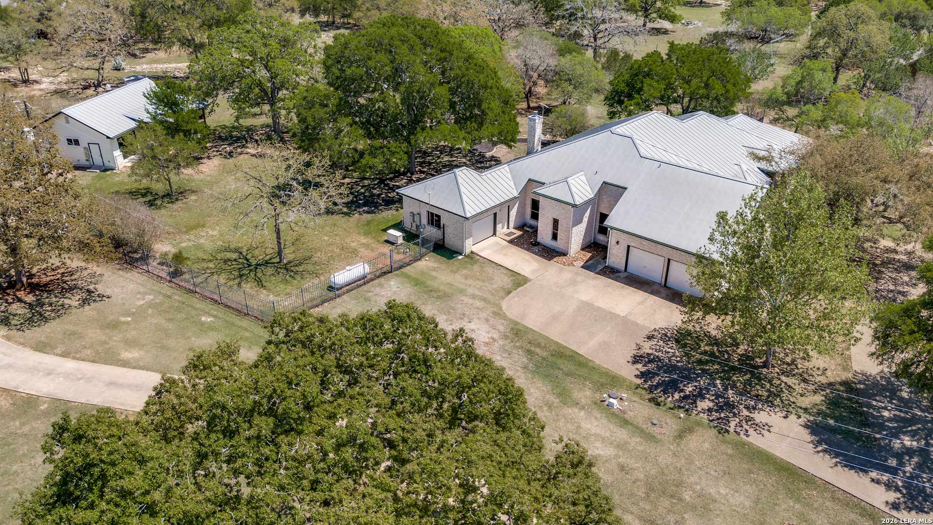 Nestled within the highly sought-after Fair Oaks Ranch, this stunning 1.6-acre property offers the perfect blend of space, comfort, and natural beauty. A welcoming circular drive and mature trees create a picturesque first impression, setting the tone for everything this exceptional home has to offer. As you step inside, you're greeted by a thoughtfully designed layout featuring a private office, an oversized formal dining room, and a cozy sitting room. These spaces seamlessly flow into the heart of the home, an expansive open-concept living area. The living room is anchored by a striking floor-to-ceiling stone fireplace, while the large kitchen is a true centerpiece, complete with a spacious island, abundant cabinetry, a walk-in pantry, and a separate breakfast area ideal for casual dining. The primary suite is a private retreat, offering a luxurious en suite bathroom with separate vanities, a large glass walk-in shower, and an expansive closet with built-in shelving. A secondary bedroom features its own en suite bathroom, while the third and fourth bedrooms are connected by a convenient Jack-and-Jill bath. All bedrooms are located on the main level, providing ease and accessibility. Upstairs, you'll find a versatile game room, perfect for entertainment or relaxation. Additional highlights include a dedicated laundry room and a charming sitting area just off the breakfast nook that leads to a covered patio. Step outside to enjoy breathtaking bluff views surrounded by mature trees, creating a serene and private backyard oasis. The property also includes a detached workshop/casita with a separate garage designed for a golf cart, along with an attached two-car garage and a third attached, air-conditioned garage space that can serve as a workshop or hobby area. For added peace of mind and convenience, the home is equipped with a propane-powered Generac whole-home generator, ensuring reliable backup power when needed. This home offers a rare opportunity to enjoy peaceful, spacious living with thoughtful design and exceptional amenities in one of the area's most desirable communities.
