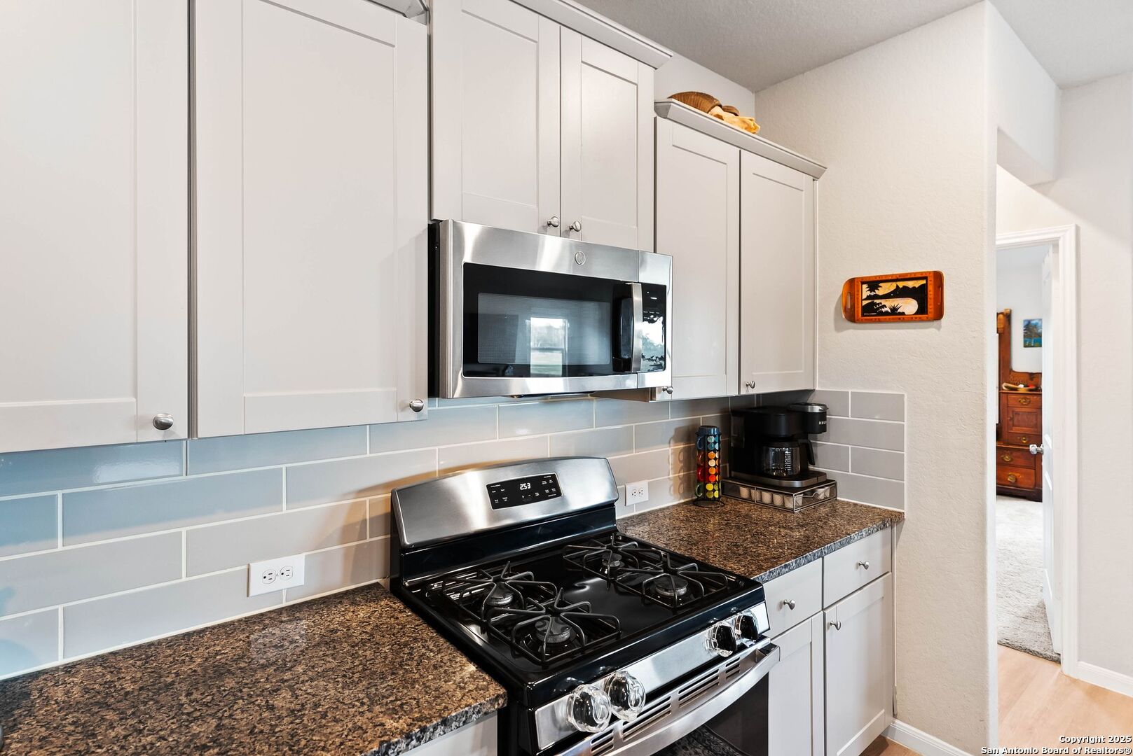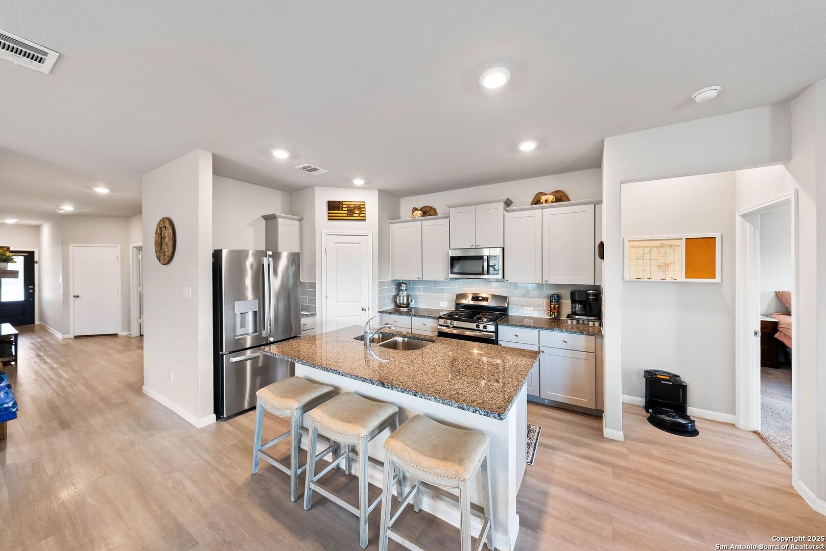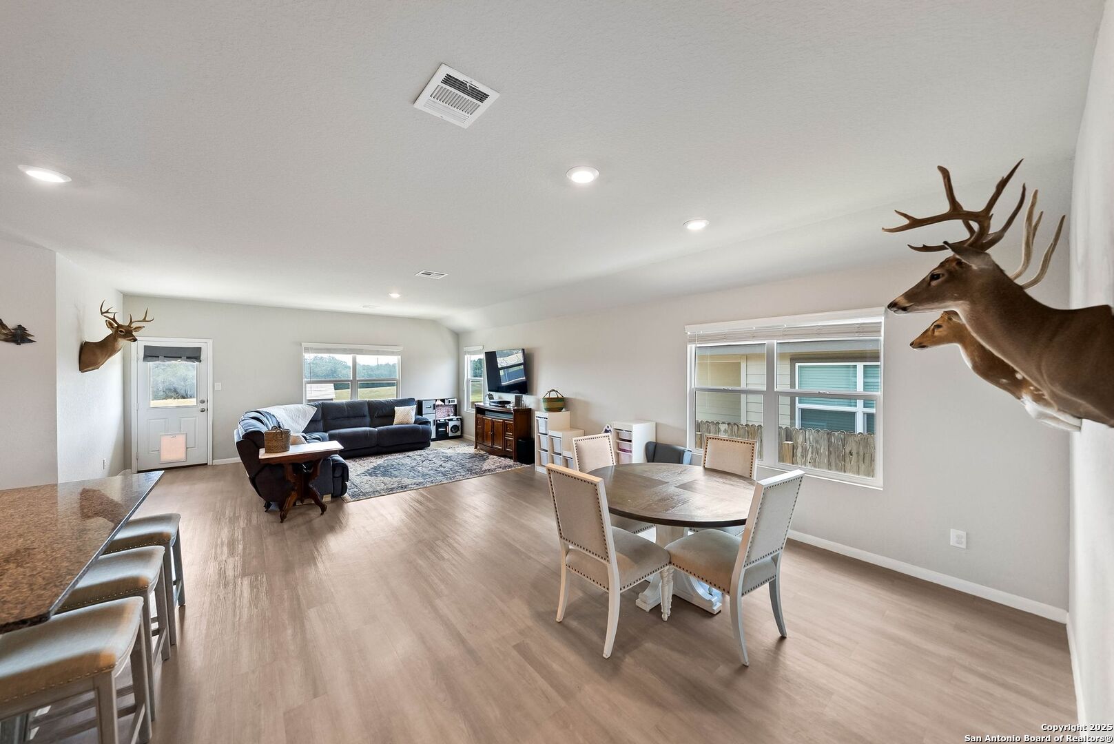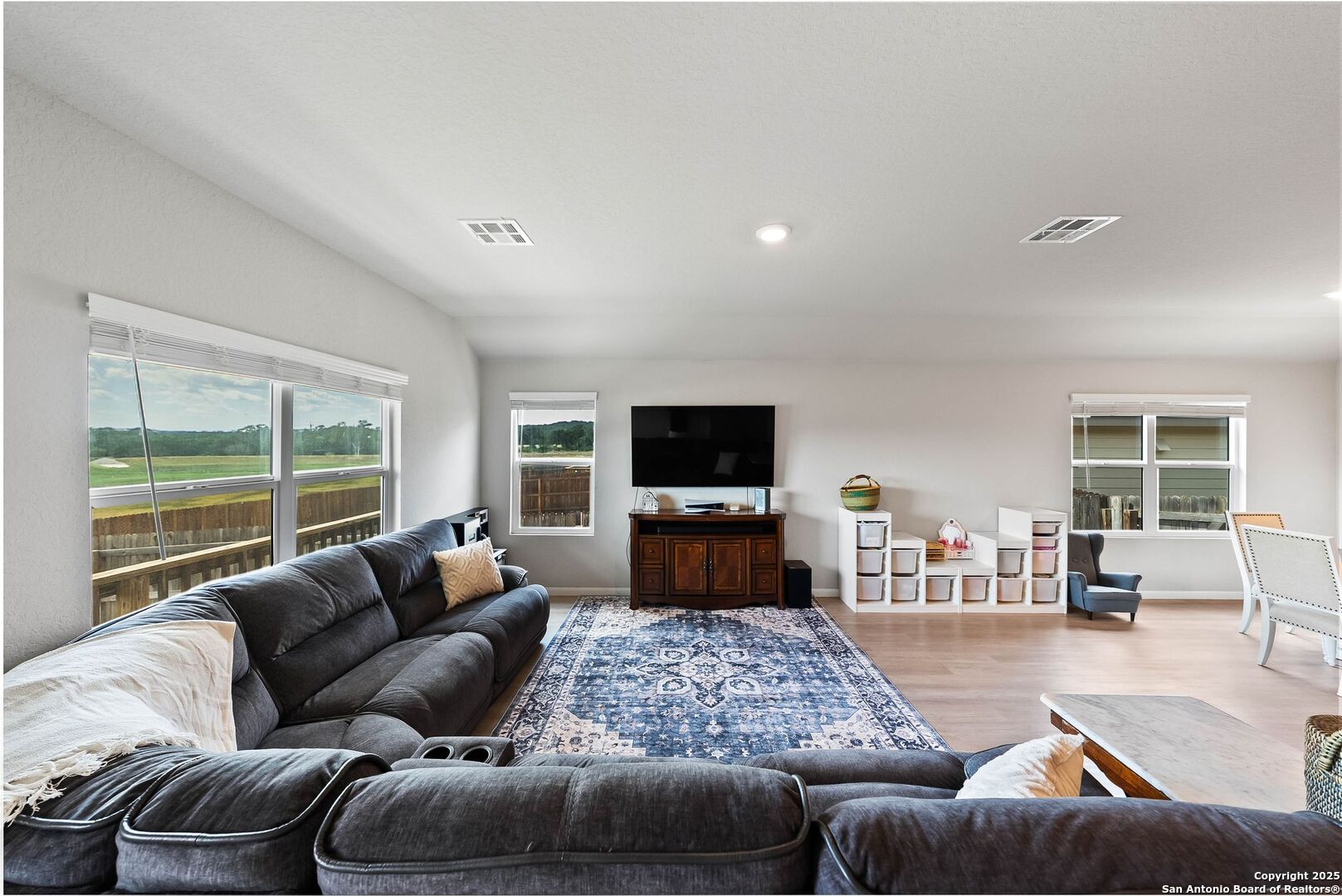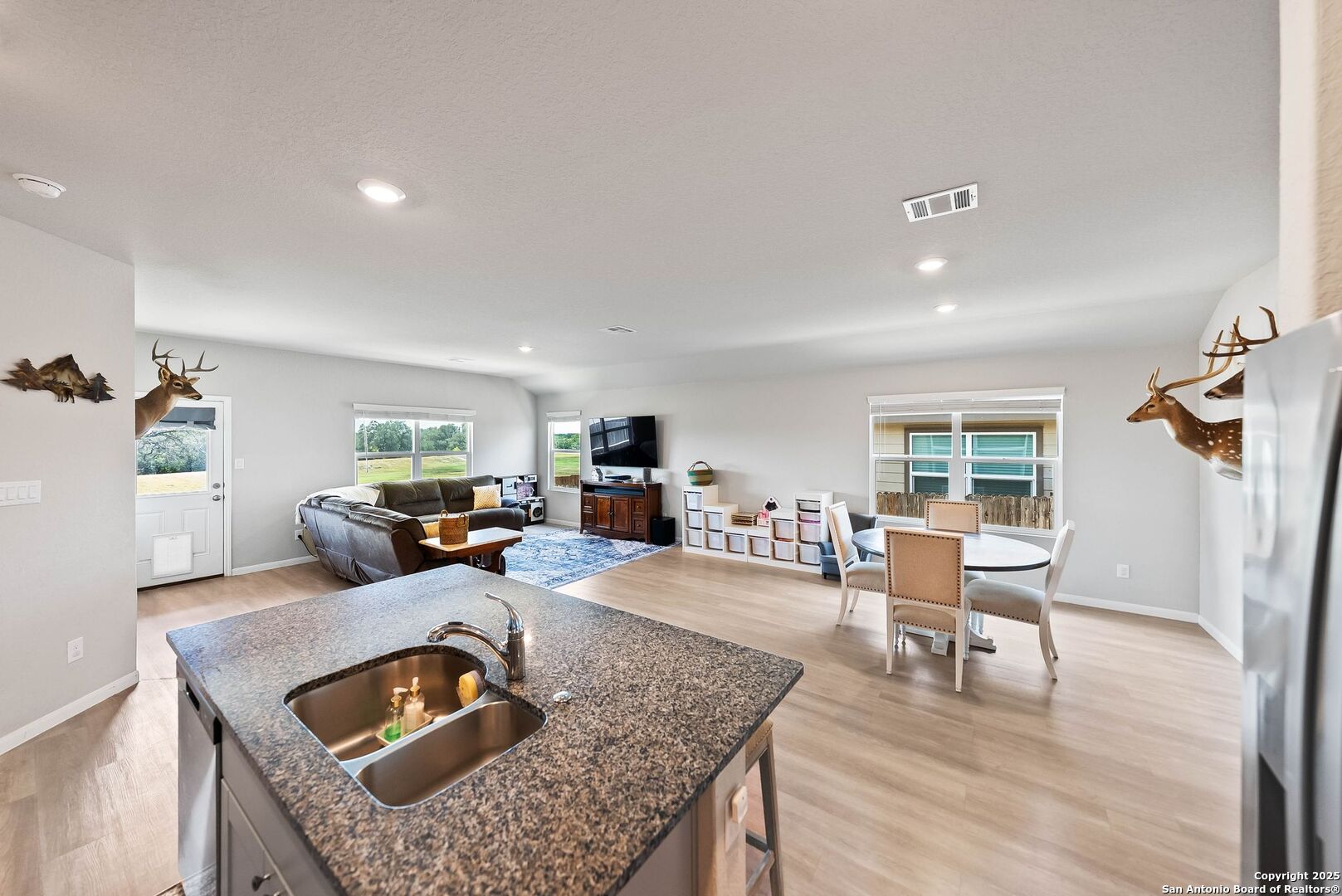 SPECIAL LENDER INCENTIVE AVAILABLE! The lender is offering up to 1% toward the buyer's closing costs, and the seller may also contribute with an acceptable offer. Welcome Home! This charming brick home with a two-car garage offers a thoughtfully designed open floorplan that flows seamlessly from room to room. With four bedrooms, there is space for everyone-whether you need a cozy guest room, a home office with fiber optic high-speed internet, or extra space for hobbies. The front bedroom features a beautiful built-in closet, making it both stylish and functional. At the heart of the home is the spacious kitchen, perfectly designed for entertaining and everyday living. It features granite countertops, a pantry, abundant cabinets, and a central island that makes both meal preparation and gathering a joy. The kitchen opens directly into the living and dining spaces, creating a warm and inviting atmosphere. Energy-efficient appliances are included, and the washer, dryer, and refrigerator are negotiable. From the living area, step outside to a covered patio with an upgraded 12x20 cement slab, ideal for backyard barbecues or peaceful evenings at home. The level lot backs to a greenbelt and includes a private gate for direct access, offering both beauty and privacy. A full sprinkler system makes yard maintenance easy and keeps your lawn looking its best year-round. The primary suite is located at the back of the home for added tranquility and features a spa-like bathroom with a double vanity, an oversized walk-in shower, and a generous walk-in closet. Additional touches such as blinds, a water softener, a programmable thermostat, a Ring camera, and a fully decked attic for additional storage make this home as functional as it is beautiful. Living here means more than just a home-it means enjoying the resort-style lifestyle of the highly desirable Hidden Trails community, served by top-rated Comal ISD schools. Residents can relax at the infinity pool, swim laps in the Junior Olympic-sized pool, or let little ones splash in the children's play area. The neighborhood also offers a modern clubhouse, a 24/7 fitness center, yoga classes, and miles of scenic walking and biking trails. Families will love the multiple playgrounds, including one with a zip line, while others can enjoy basketball courts, barbecue areas, community events with live music and food trucks, and even a catch-and-release fishing pond. Hidden Trails is also perfectly located just off Highway 281, placing you minutes from HEB, Walmart, Starbucks, restaurants, and medical facilities. The San Antonio Airport is only 30 minutes away, while the beautiful Canyon Lake is just a 20-minute drive. This home truly offers flow, comfort, and a lifestyle you will love. Don't wait-schedule your private showing today and see for yourself why this is the perfect place for your home.