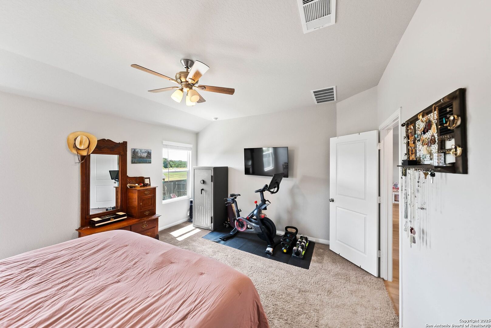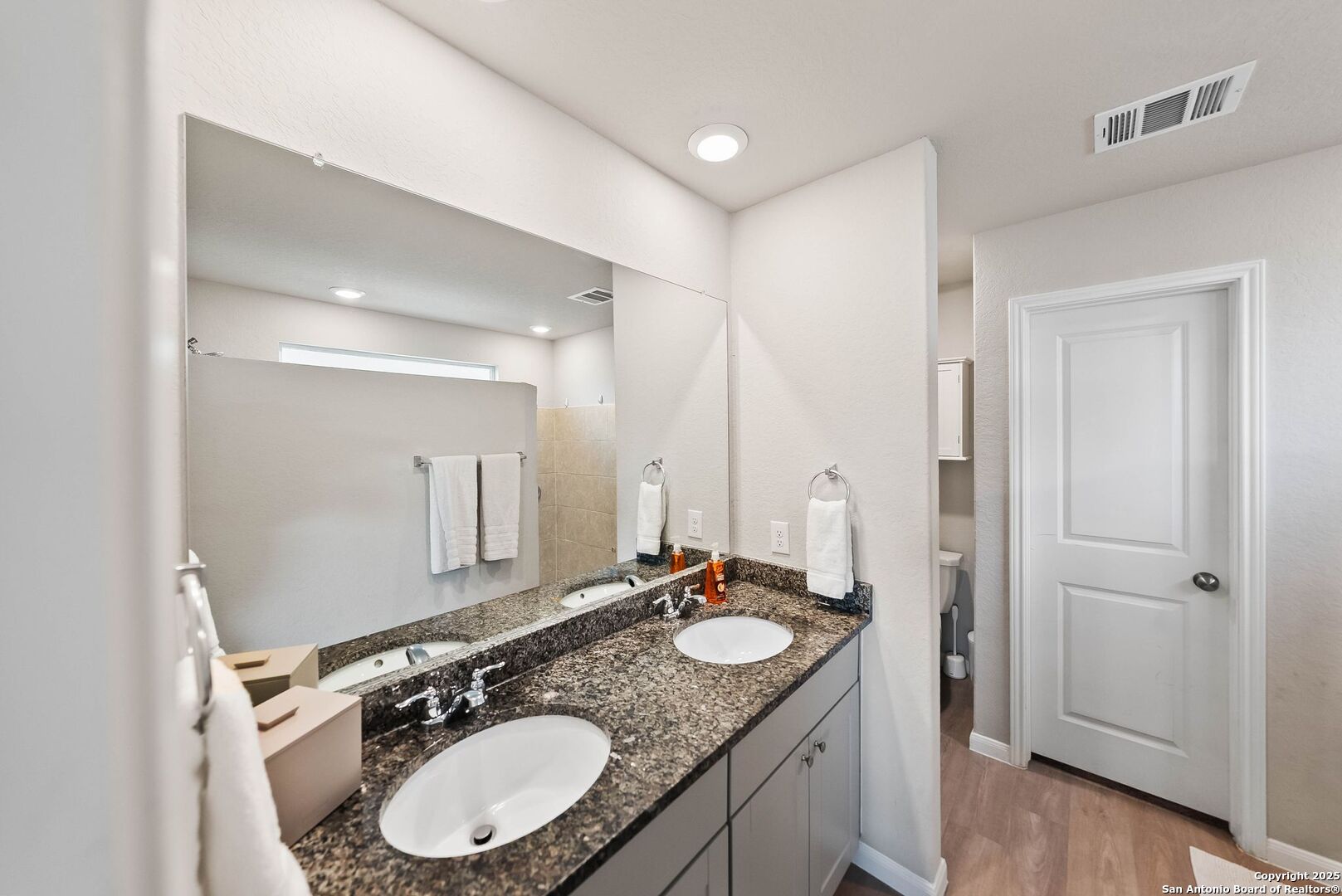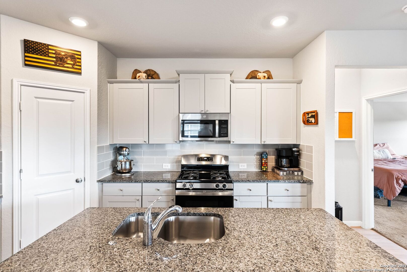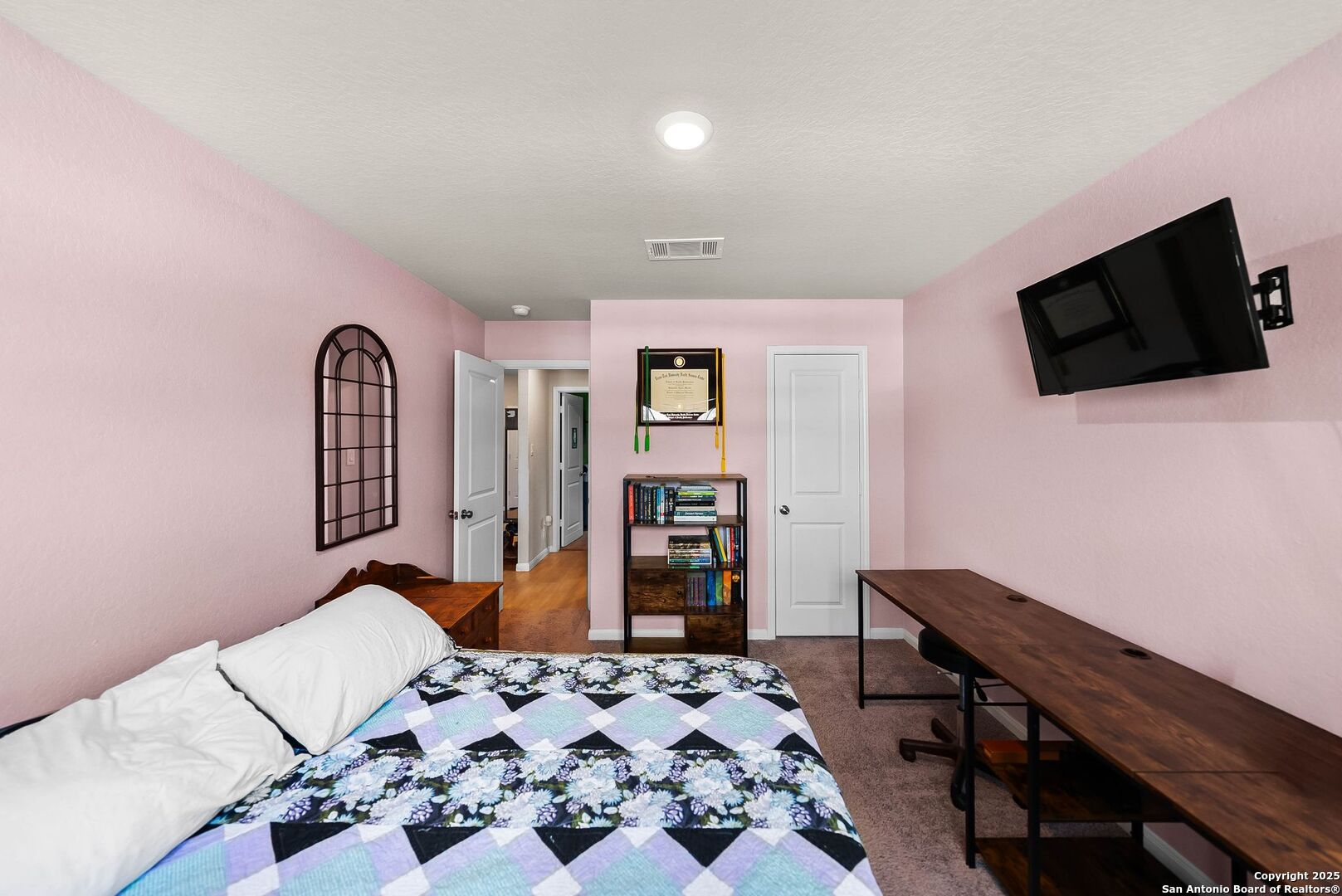 SPECIAL LENDER INCENTIVE AVAILABLE! The lender is offering up to 1% toward the buyer's closing costs, and the seller may also contribute with an acceptable offer. Welcome Home! This charming brick home with a two-car garage offers a thoughtfully designed open floorplan that flows seamlessly from room to room. With four bedrooms, there is space for everyone-whether you need a cozy guest room, a home office with fiber optic high-speed internet, or extra space for hobbies. The front bedroom features a beautiful built-in closet, making it both stylish and functional. At the heart of the home is the spacious kitchen, perfectly designed for entertaining and everyday living. It features granite countertops, a pantry, abundant cabinets, and a central island that makes both meal preparation and gathering a joy. The kitchen opens directly into the living and dining spaces, creating a warm and inviting atmosphere. Energy-efficient appliances are included, and the washer, dryer, and refrigerator are negotiable. From the living area, step outside to a covered patio with an upgraded 12x20 cement slab, ideal for backyard barbecues or peaceful evenings at home. The level lot backs to a greenbelt and includes a private gate for direct access, offering both beauty and privacy. A full sprinkler system makes yard maintenance easy and keeps your lawn looking its best year-round. The primary suite is located at the back of the home for added tranquility and features a spa-like bathroom with a double vanity, an oversized walk-in shower, and a generous walk-in closet. Additional touches such as blinds, a water softener, a programmable thermostat, a Ring camera, and a fully decked attic for additional storage make this home as functional as it is beautiful. Living here means more than just a home-it means enjoying the resort-style lifestyle of the highly desirable Hidden Trails community, served by top-rated Comal ISD schools. Residents can relax at the infinity pool, swim laps in the Junior Olympic-sized pool, or let little ones splash in the children's play area. The neighborhood also offers a modern clubhouse, a 24/7 fitness center, yoga classes, and miles of scenic walking and biking trails. Families will love the multiple playgrounds, including one with a zip line, while others can enjoy basketball courts, barbecue areas, community events with live music and food trucks, and even a catch-and-release fishing pond. Hidden Trails is also perfectly located just off Highway 281, placing you minutes from HEB, Walmart, Starbucks, restaurants, and medical facilities. The San Antonio Airport is only 30 minutes away, while the beautiful Canyon Lake is just a 20-minute drive. This home truly offers flow, comfort, and a lifestyle you will love. Don't wait-schedule your private showing today and see for yourself why this is the perfect place for your home.
