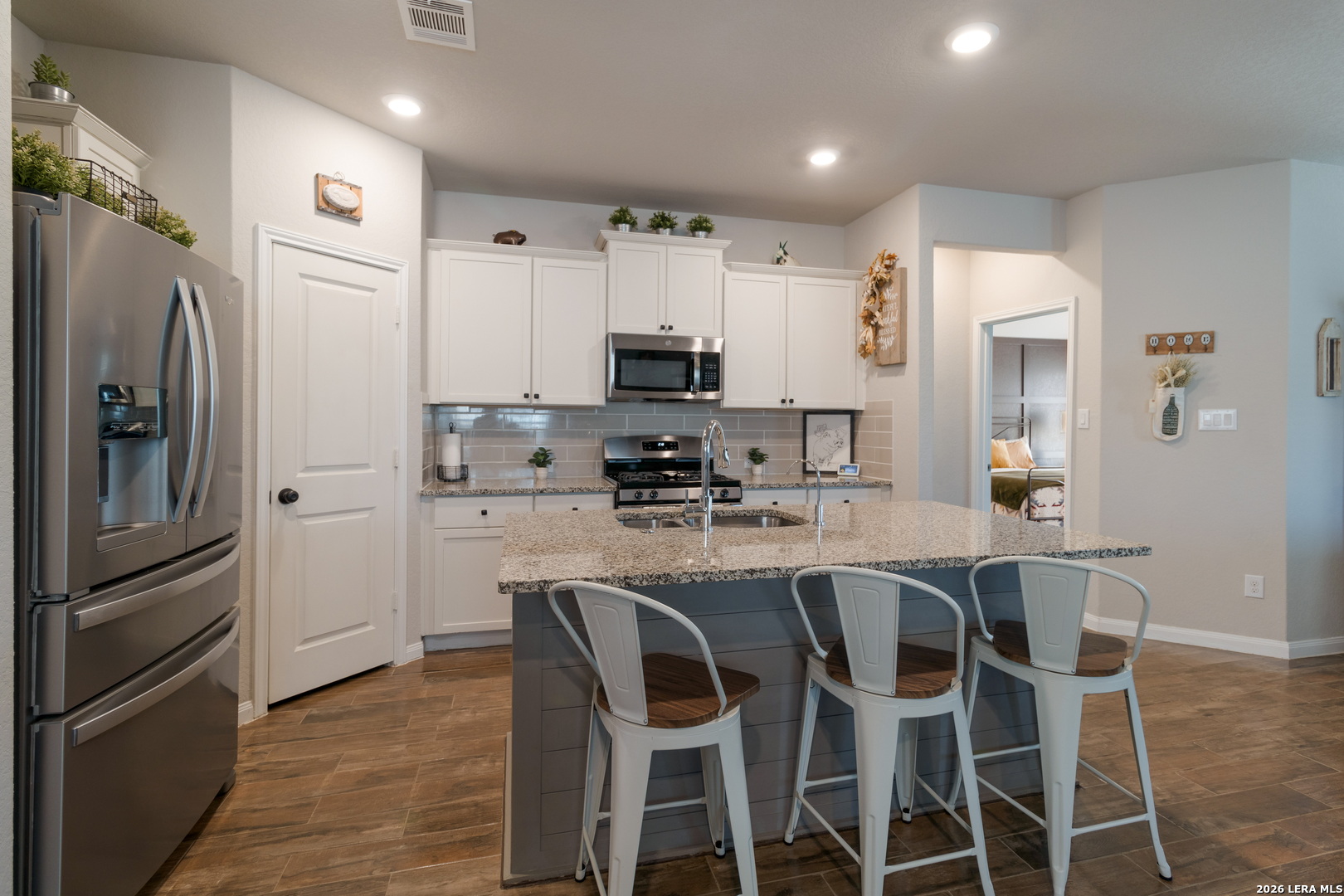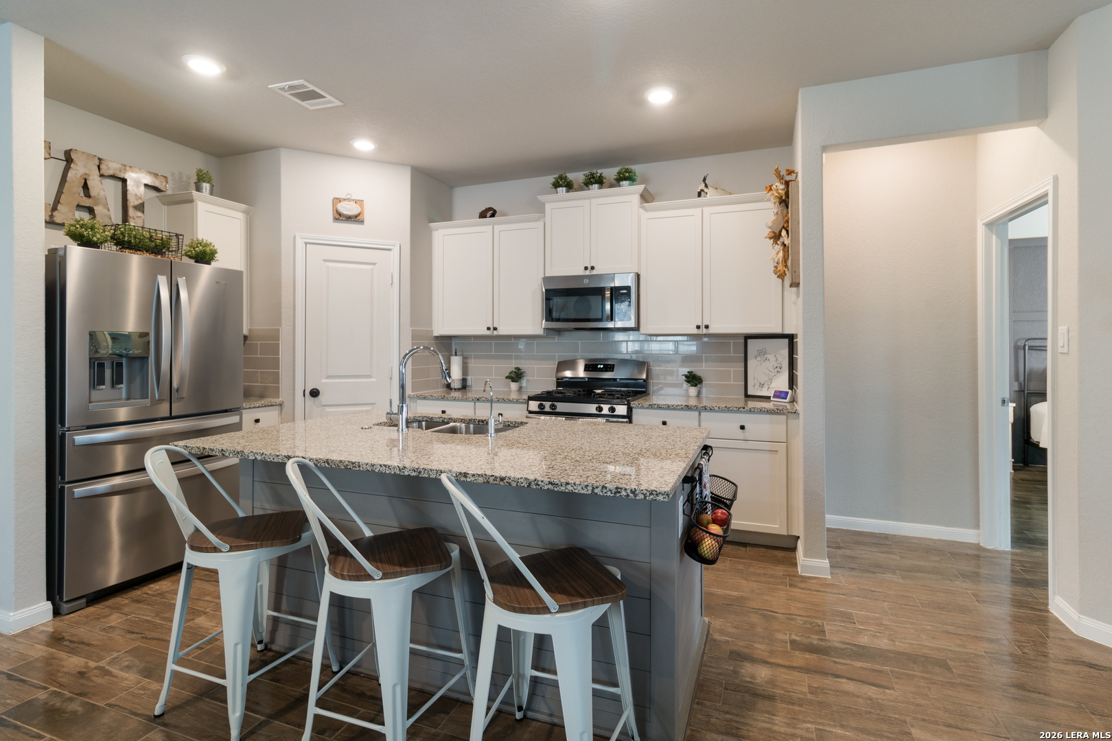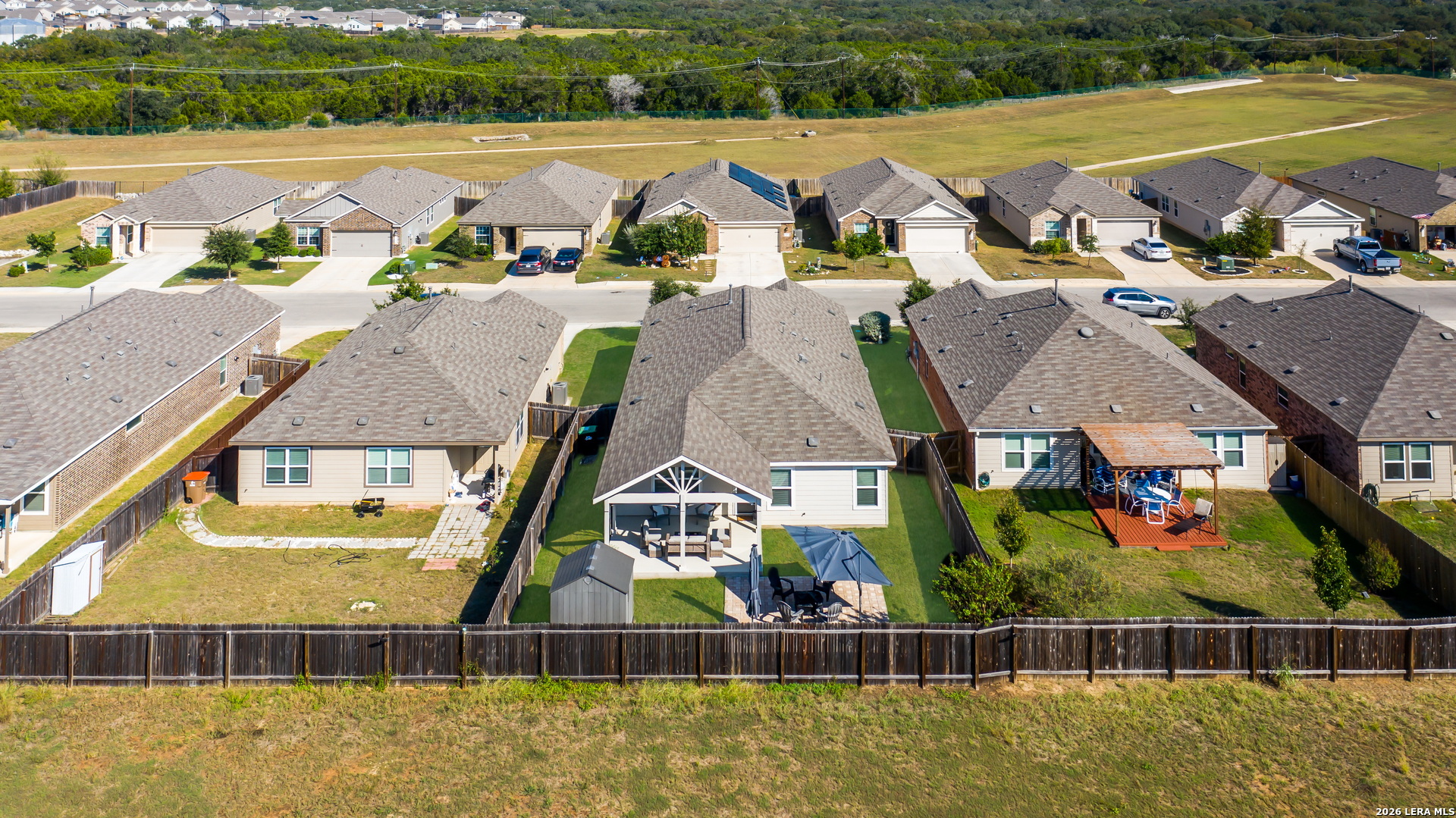 Welcome home! This beautifully upgraded four-bedroom, three-bath brick home with a two-car garage offers an open-concept floor plan designed for modern living and effortless flow. At the heart of the home, the spacious kitchen features granite countertops, upgraded cabinetry, a large central island, and a walk-in pantry-perfect for cooking and entertaining. The living and dining areas open to a covered back patio with a seamless roof extension that matches the home, creating an ideal space for outdoor relaxation or gatherings. Enjoy over $60,000 in upgrades, including a water softener with a purified drinking system, extended patio, upgraded flooring, premium cabinetry, a professionally installed garage screen, and a backyard storage shed. The private primary suite is tucked away at the back of the home for added tranquility and features a completely remodeled primary bathroom with an oversized walk-in shower, dual vanities, and a spacious walk-in closet. **Community & Location:** Located in the desirable Hidden Trails community, residents enjoy resort-style amenities including an infinity-edge pool, fitness center, clubhouse, playgrounds, and scenic hiking and biking trails-all within top-rated Comal ISD. Conveniently situated near HWY 281 with easy access to H-E-B, Starbucks, restaurants, and medical facilities. Don't miss your chance to see this stunning home before it's gone!