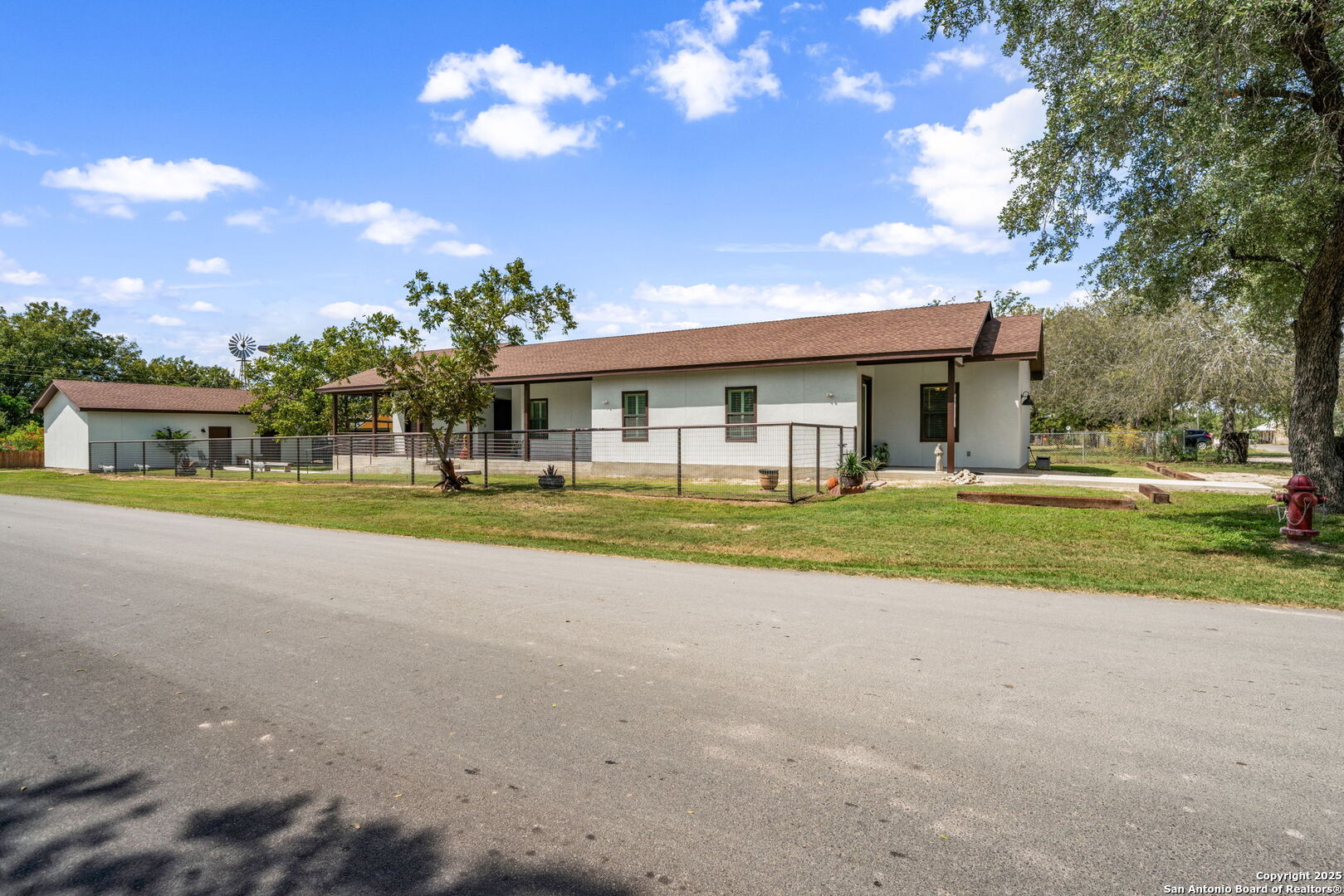 Discover the charm of small-town living in historic Brackettville, Texas, home to Fort Clark Springs and known for its rich heritage and welcoming community. This thoughtfully designed single-story home offers 1,596 sq. ft. of living space, plus a 470 sq. ft. heated and cooled studio, 507 sq. ft. of porches, and plenty of storage with a workshop, garage, and additional carport. Step inside to find 10-foot ceilings, 8-foot doors, and 36-inch doorways, giving the home a spacious and accessible flow. A ramp and a handicap-accessible third bathroom make the property ideal for those who value comfort and ease of mobility. The custom walk-in pantry with Elfa shelving adds both function and organization to the heart of the home. Enjoy the flexibility of the studio space-perfect for hobbies, a home office, or guest quarters-while the multiple outdoor areas provide room to relax and entertain. Located in Brackettville, you'll experience a blend of history and small-town charm, with convenient access to outdoor recreation, hunting, and the unique character that makes this community so special.