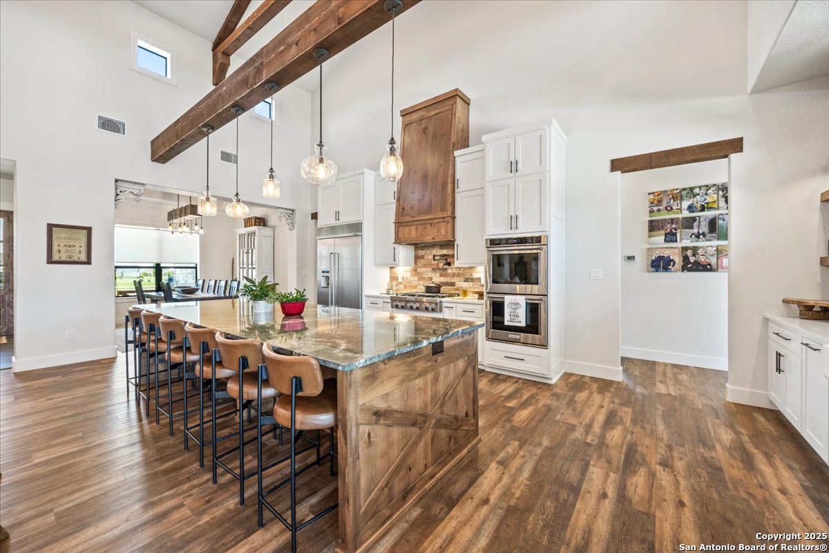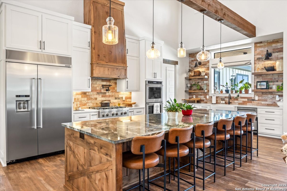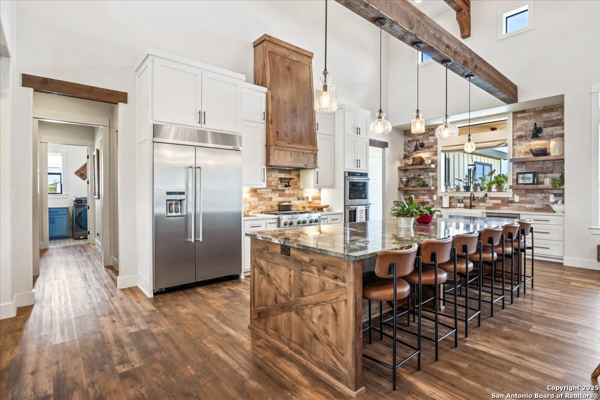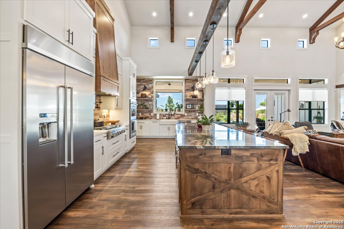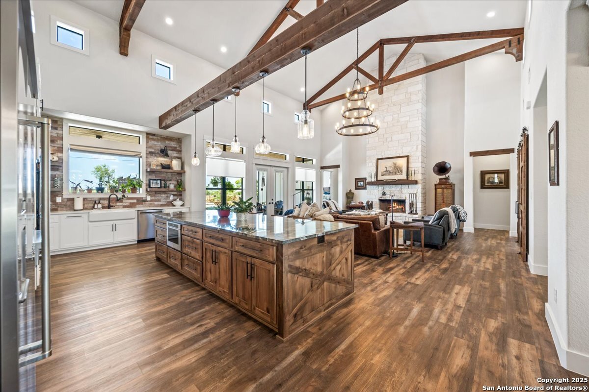 This original custom home welcomes you the moment you arrive. From the charming front porch with its inviting hanging swing to the elegant double doors, you'll instantly feel at home. Step inside this stunning family retreat and your eyes are immediately drawn to the backyard oasis-featuring a custom gunite pool complete with heated spa, expansive sun shelf, waterfall, and jumping rock. The pool ranges from 3'5" to 5'5", offering the perfect blend of relaxation and recreation. Designed with exceptional attention to detail, this home truly lacks nothing. The chef's kitchen showcases a massive 12' x 4.5' granite island, double ovens, JennAir drawer microwave, farmhouse sink, soft-close Knotty Alder custom cabinetry, built-in side-by-side stainless refrigerator and freezer, 6-burner gas cooktop with pot filler, and a designer vent hood. An impressive coffee bar with built-in ice maker and a spacious walk-in pantry complete the space. The living room features a dramatic floor-to-ceiling rock fireplace and soaring 25-foot custom-beamed ceiling, flowing seamlessly into a private study with custom sliding barn doors. The relaxing owner's retreat offers a spa-inspired bath with a walk-through shower, soaking tub, and large walk-in closet. Bedrooms two and three feature a Jack-and-Jill layout with walk-in closets and designer accent walls. The fourth bedroom is a private suite with its own full bath. A second living area or retreat includes a wood-burning fireplace and direct access to the covered patio and pool area-perfect for entertaining. Situated on nearly two beautifully maintained acres with full sprinkler and garden irrigation systems, the property also includes a fenced garden with six raised irrigated beds and an 8' x 12' shed. The 40' x 22' garage/workshop offers two roll-up doors and electricity. More than 24 irrigated trees-including palms, pecans, oaks, desert willows, magnolias, and Mexican sycamores-enhance the landscape. The backyard is cross-fenced into four separate areas, and a buried propane tank services both cooking and pool heating. This extraordinary property blends luxury, comfort, and functionality-inside and out.This original custom home welcomes you as soon as you pull into the driveway. As you walk up to the porch with it's inviting hanging swing & elegant double doors you will know you are home! As you enter this drop dead gorgeous family home..your eyes will lead you out to the custom gunite pool in the back w/ it's heated hot tub, large sun shelf, waterfall & jumping rock. Pool goes from 3'5'-5'5. This exquisite home lacks nothing...the kitchen has a 12x4.5 granite island, double ovens, Jenn Air drawer microwave, farmhouse sink, soft close Knotty Alder custom cabinets, side by side built in stainless refrigerator/freezer, gas 6-burner cook top w/pot filler & designer kitchen vent hood. Awesome Coffee Bar area w/built in ice maker & large pantry area. The living room w/it's floor to ceiling rock fireplace, custom beamed 25 ft. ceiling leads you into the private study/office w/custom sliding barn doors. Relaxing Owner's Retreat has a large bath spa area w/it's spa like walk through shower and soaking tub. Large walk-in closet. Bedrooms 2 & 3 have a jack-n-jill set up w/walk in closets & designer walls. The 4th. bedroom is a private suite w/it's own private bathroom. Second living/retreat area has door leading out to the covered patio/pool area & has it's own wood burning fireplace. Almost 2 acres of beautiful grounds and all covered by a sprinkler system and garden irrigation. Fenced garden area has 6 raised beds w/irrigation and a 8 x 12 garden shed. the 40x22 garage/workshop has 2 roll up doors & electricity. 24 plus irrigated trees have been planted to include palms, pecans, oaks, dessert willows, magnolias, mexican sycamores & more. Back yard is cross fenced with four different areas. Buried propane tank for cooking and pool.