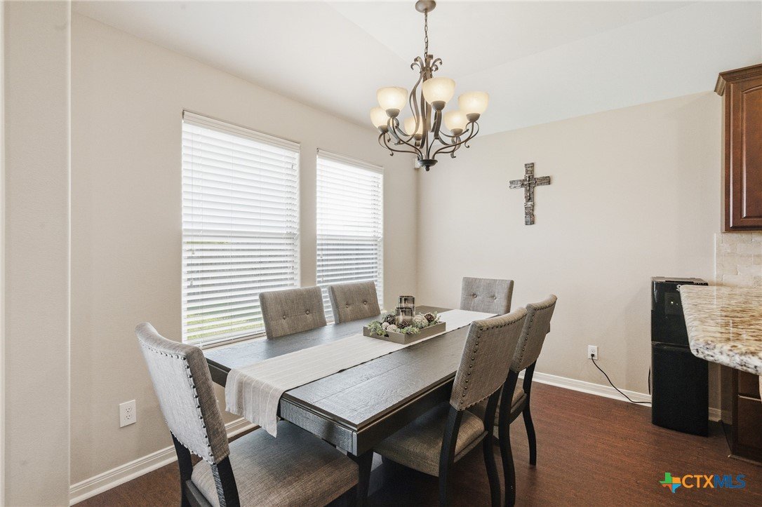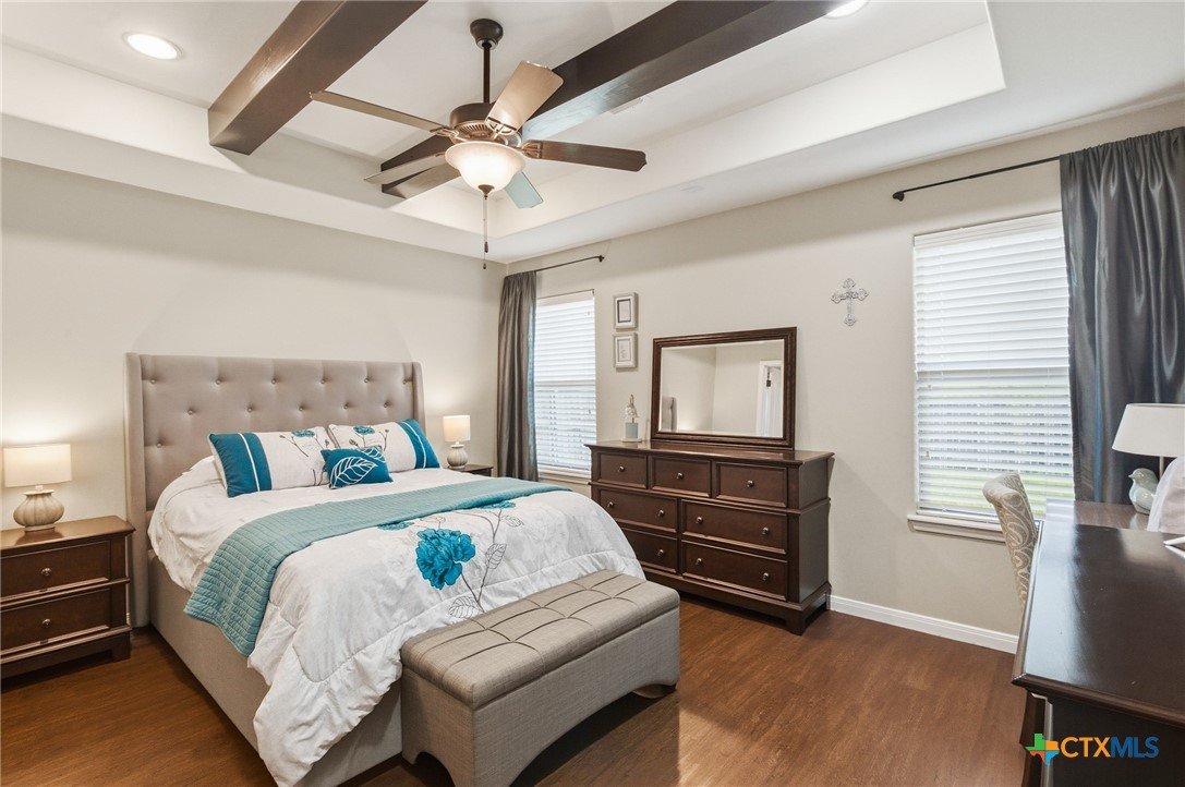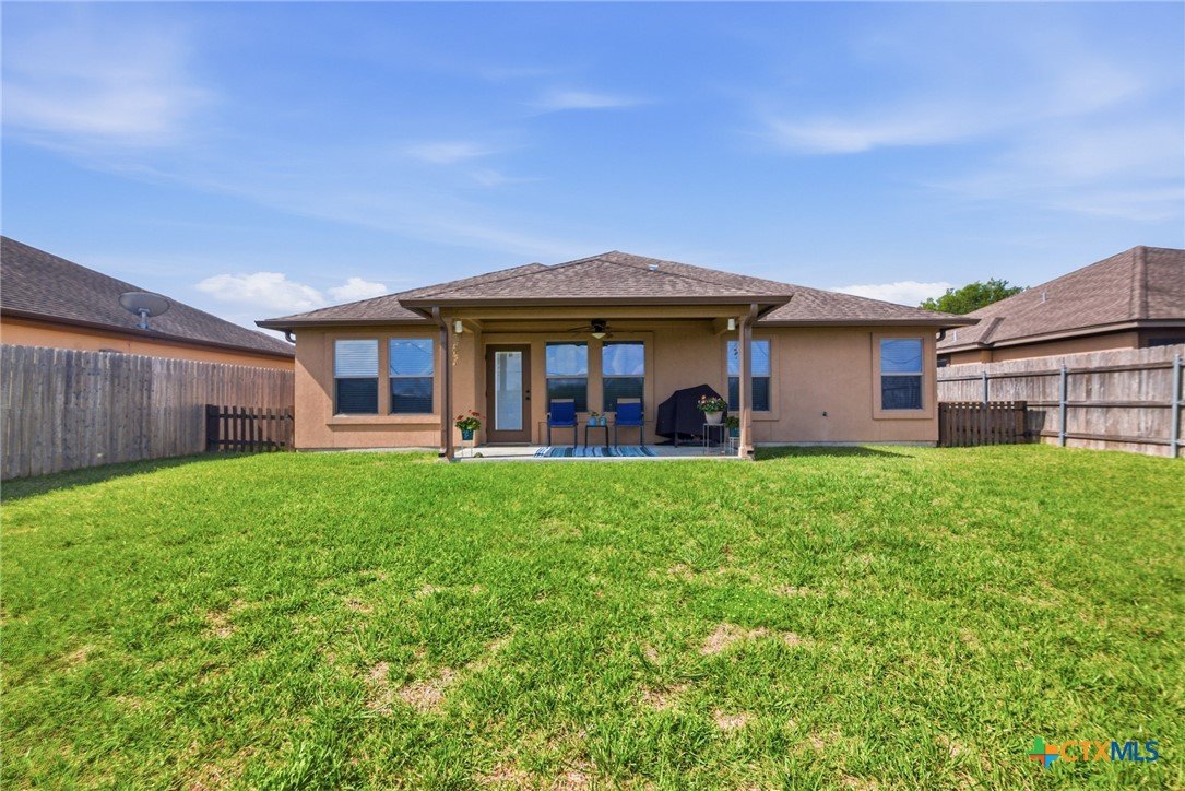 This charming 3 bedroom, 2 bath home in the Tuscany neighborhood exudes Mediterranean inspiration. Upon entering, you are greeted by a spacious entryway that leads to a delightful open floor plan featuring vaulted ceilings with a wooden beam in the living room, a spacious dining area, and a lovely kitchen complete with a granite and stone breakfast bar, pantry, all upgraded appliances, and bonus bar area for your morning coffee or wine. The primary bedroom is a true retreat, showcasing wood beamed ceiling , walk-in closet, and a bathroom with granite countertops, double sinks, and walk-in shower. Perfect for hosting gatherings, the backyard offers a covered patio with a wood privacy fence, no rear neighbors that provides a serene and private setting for outdoor enjoyment.