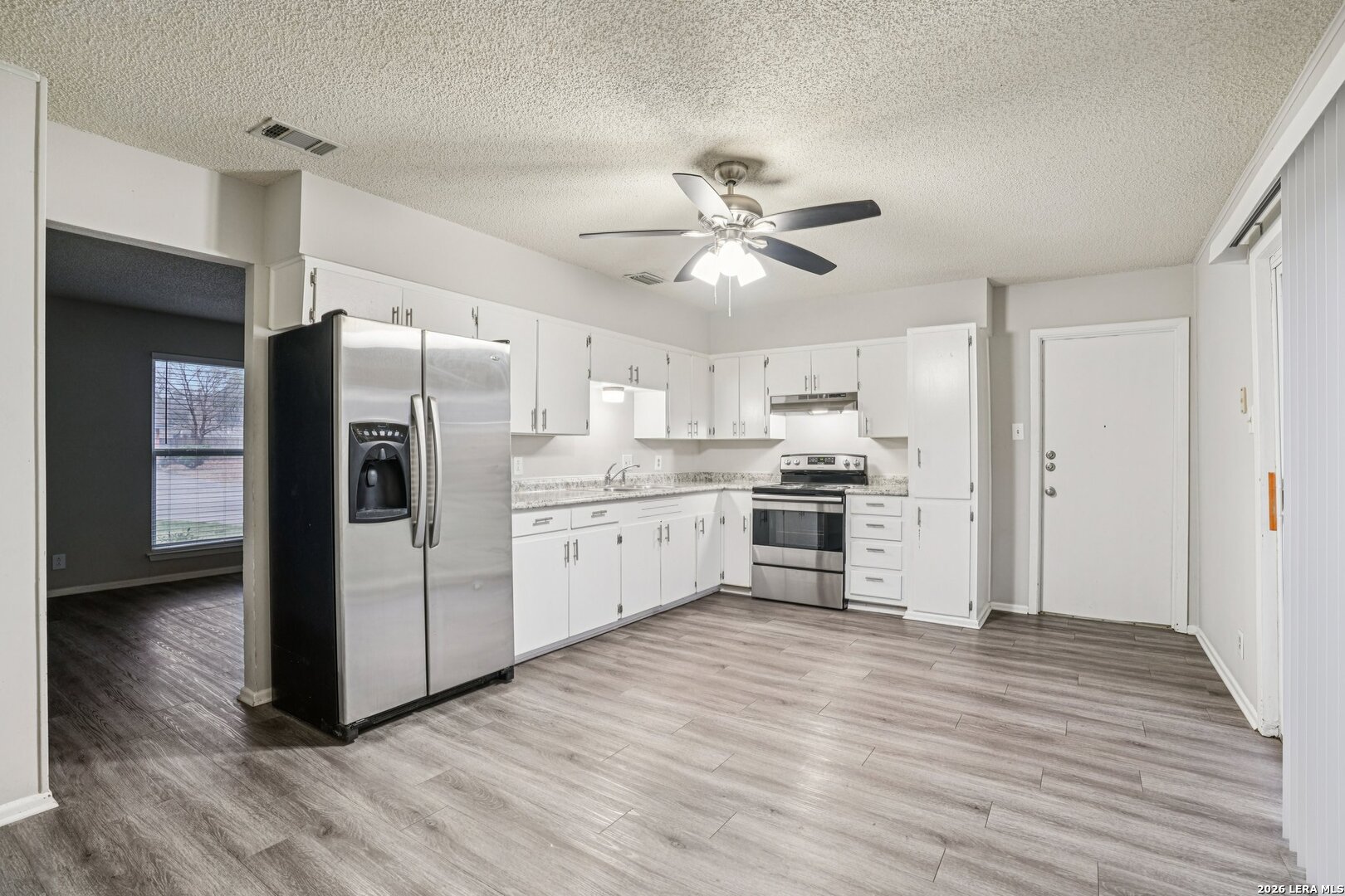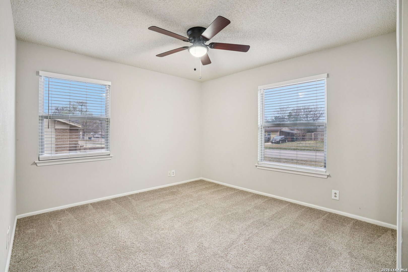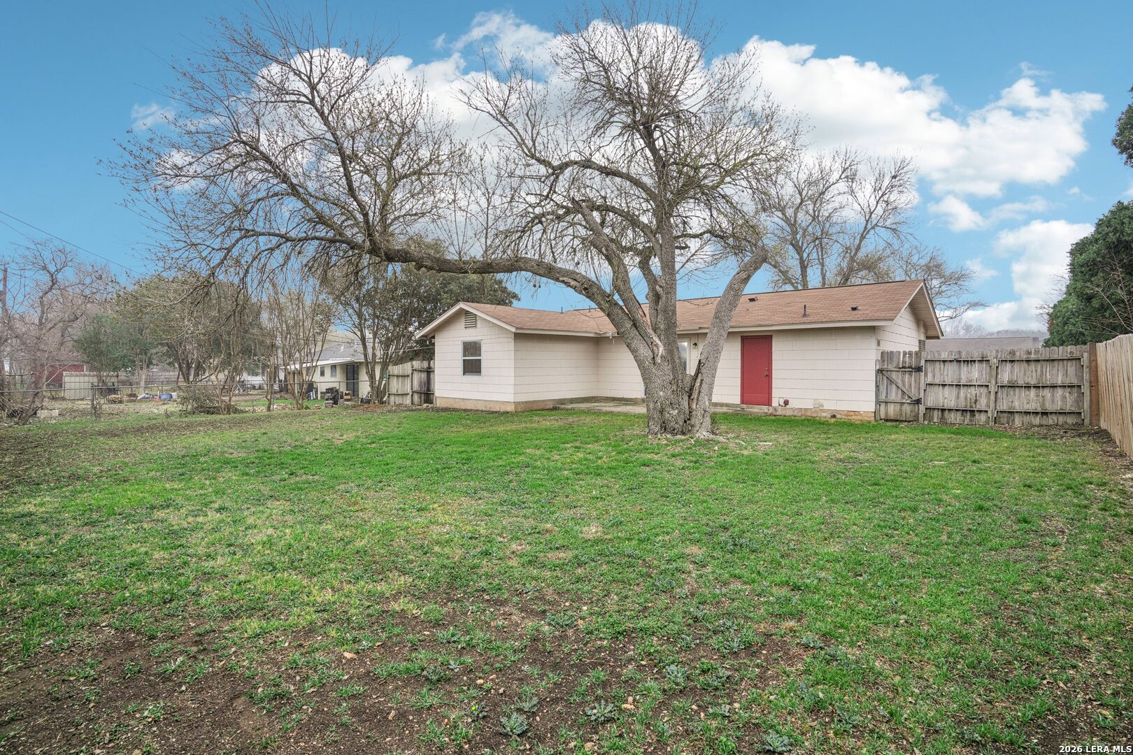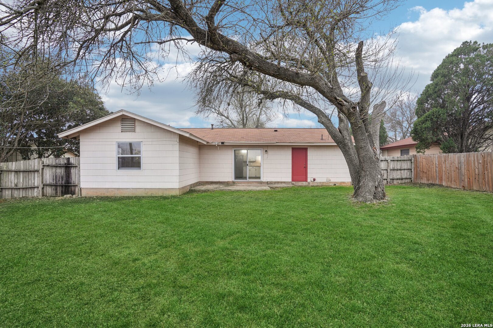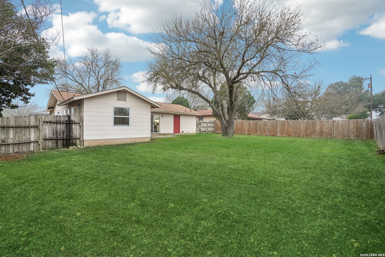 Single-story brick home * Fenced backyard * 1-car garage * Central Universal City location 3-bedroom, 2-bath home with 1,164 sq ft in Coronado Village. Open living and dining area with updated vinyl plank flooring and fresh interior paint. Kitchen features new hard surface countertops, new range/oven and vent hood, dishwasher, and washer connection. Split primary bedroom with en-suite bath (shower only, single vanity). Secondary bedrooms share full bath with tub/shower combo. One-car attached garage with driveway parking. Large, level backyard with privacy fence and mature shade tree. Slab foundation, composition roof, central air conditioning and natural gas heat. No HOA. Convenient access to Universal Blvd, Loop 1604, and I-35. Approximately 3 mi to Randolph AFB and 2 mi to The Forum at Olympia Parkway shopping and dining. Includes floor plan and virtual staging photos.