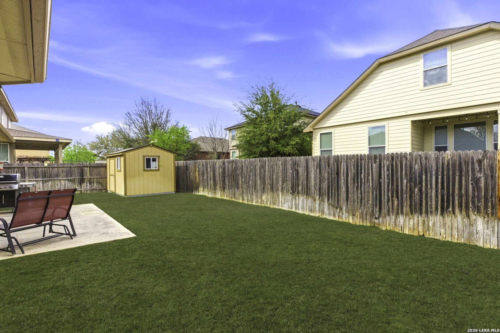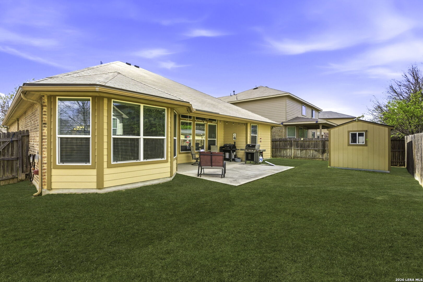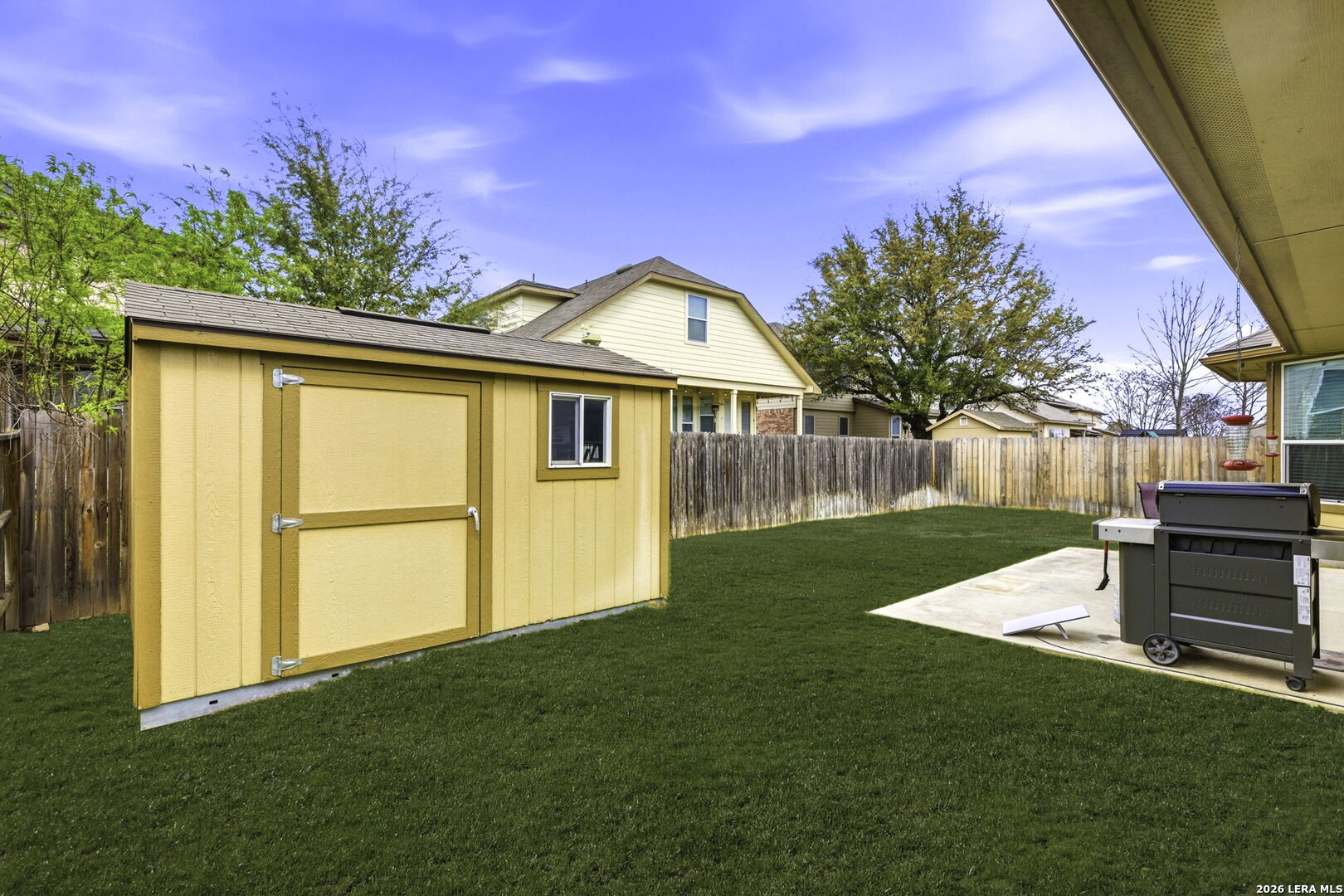 Get here fast - the first showings may wrap this one up! This beautifully maintained home offers an exceptional floor plan, thoughtful details throughout, and impressive curb appeal. Located on a quiet cul-de-sac, the property features 3 sides rock/masonry, mature landscaping, and a full sprinkler system. Step inside to an open living and kitchen layout with elevated ceilings that immediately delivers the wow factor. The kitchen includes granite countertops, undermount sink, 42" upper cabinets, stainless steel appliances, and a spacious walk-in pantry, and the convenience of a whole-home water softener. The well-spaced primary suite features elevated and tray ceilings and leads to a well-appointed bath with dual vanities, a large garden tub, deep walk-in shower, and generous closet. Secondary bedrooms are nicely sized with elevated ceilings, walk-in closets, and a convenient Jack and Jill bath with separate vanities. The 4th bedroom offers true flexibility - currently used as an office, but complete with a closet for full bedroom functionality or additional storage. A central vacuum system adds another layer of everyday convenience and cleanliness. Out back, enjoy a covered and extended patio ideal for outdoor entertaining, along with a storage shed for extra space and organization. This home checks all the boxes for comfort, style, and practicality - a standout you won't want to miss.